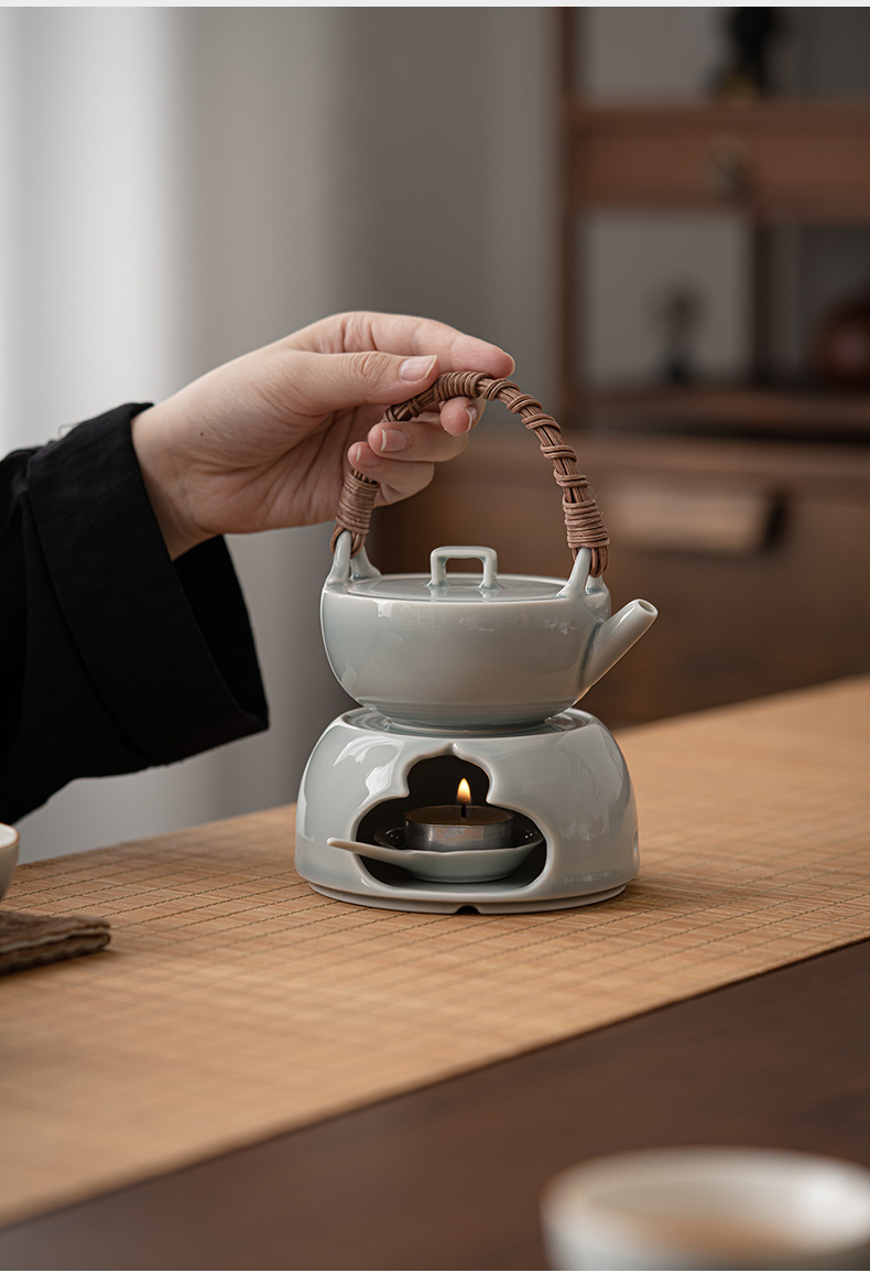 冰灰釉日式温茶炉陶瓷暖茶炉套装家用煮茶烤茶炉提梁壶防烫侧把壶