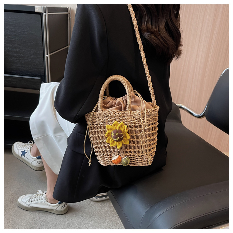 厂家直销手工编织沙滩包2024新款潮时尚斜挎包女ins出行草编包女