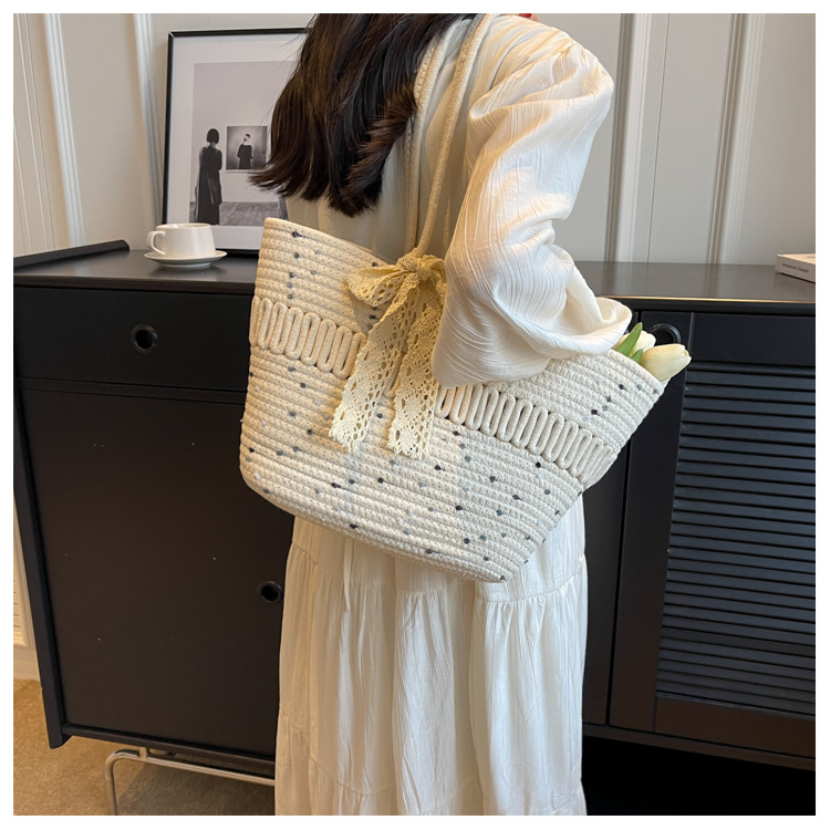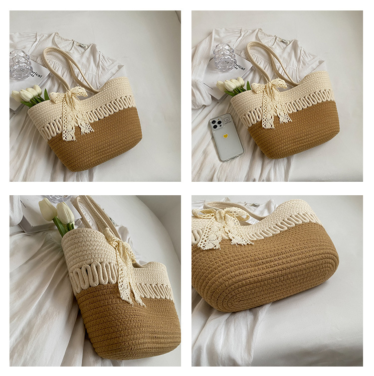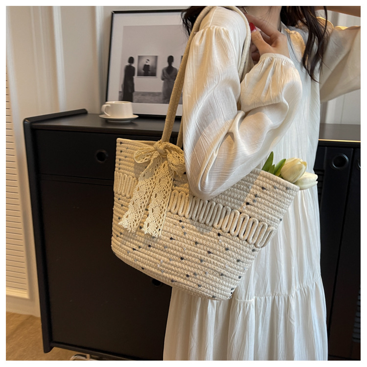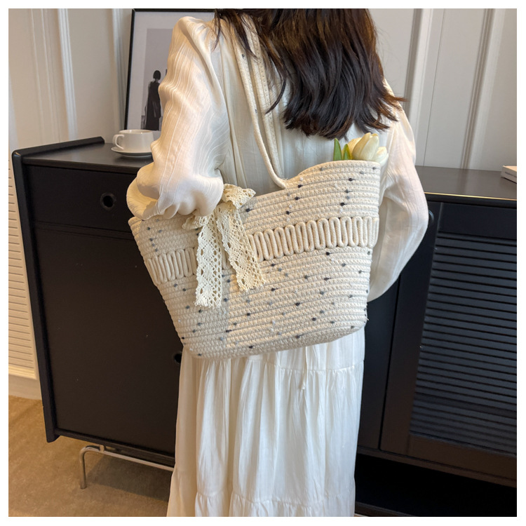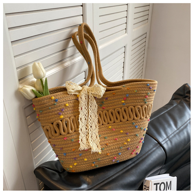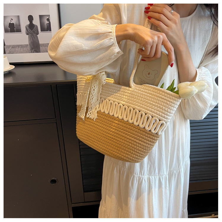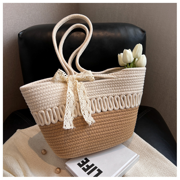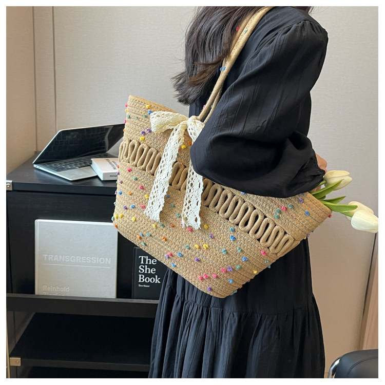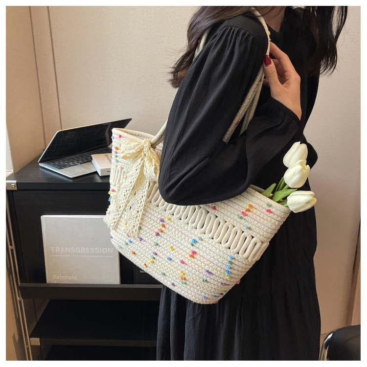 大容量沙滩包包2024时尚百搭通勤托特包小众编织手提洋气单肩大包
