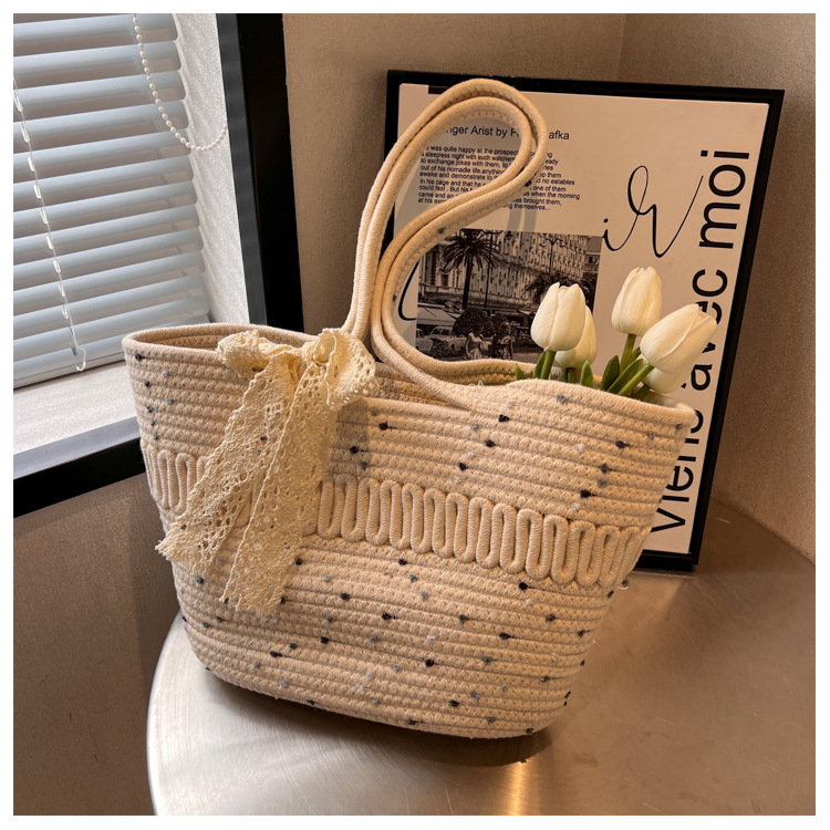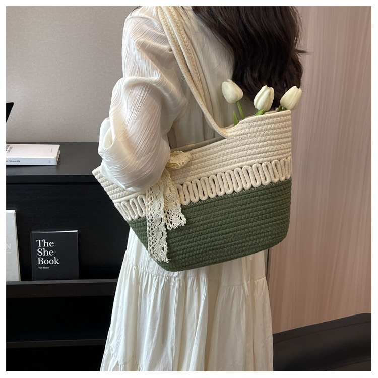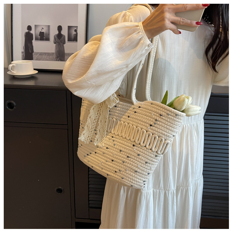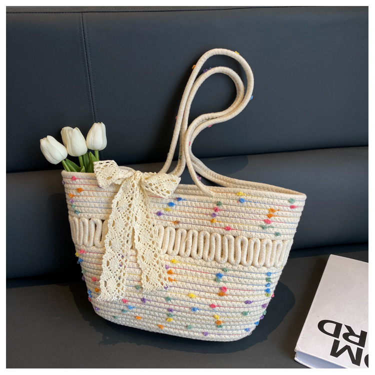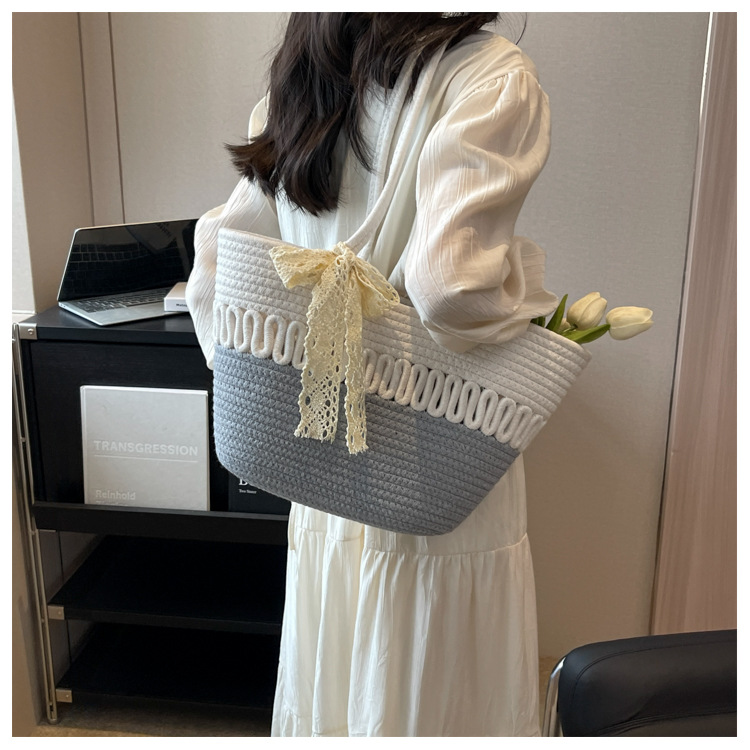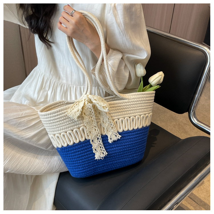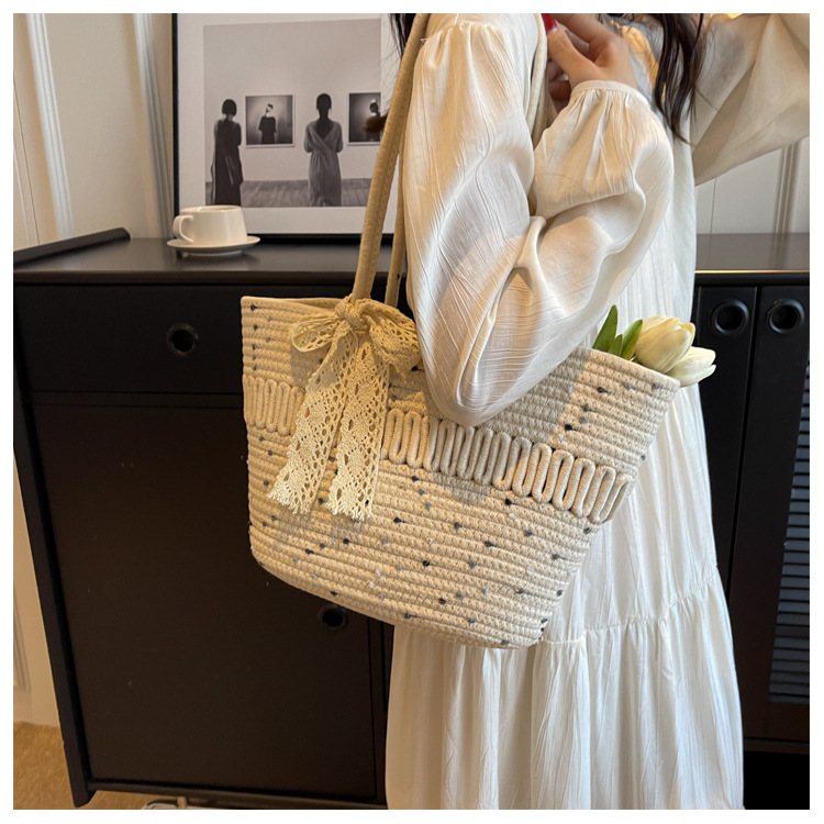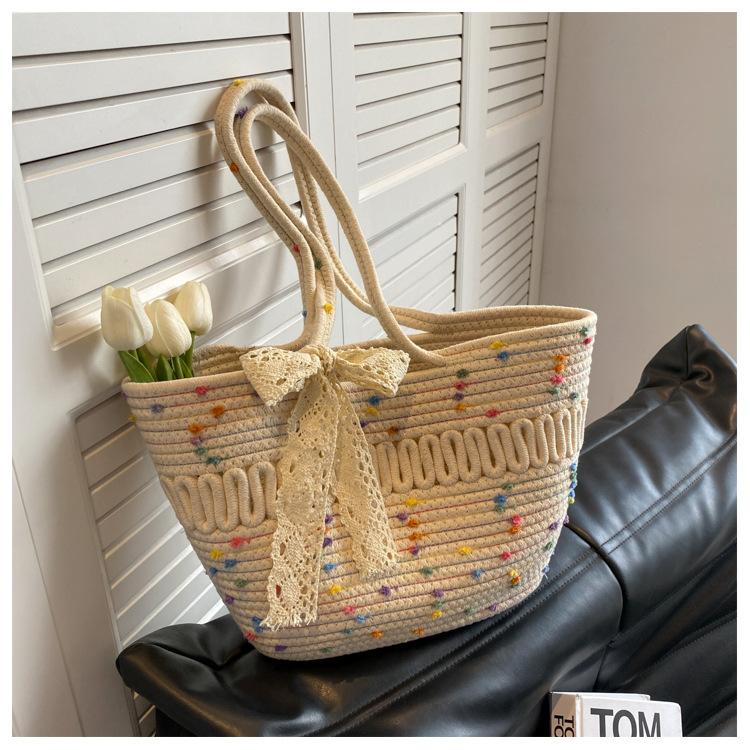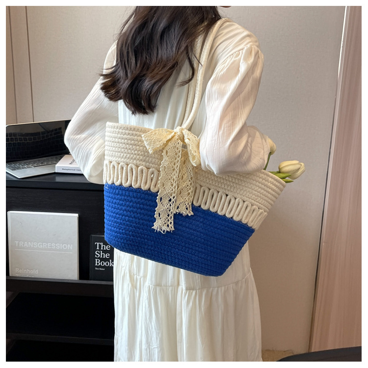 大容量沙滩包包2024时尚百搭通勤托特包小众编织手提洋气单肩大包