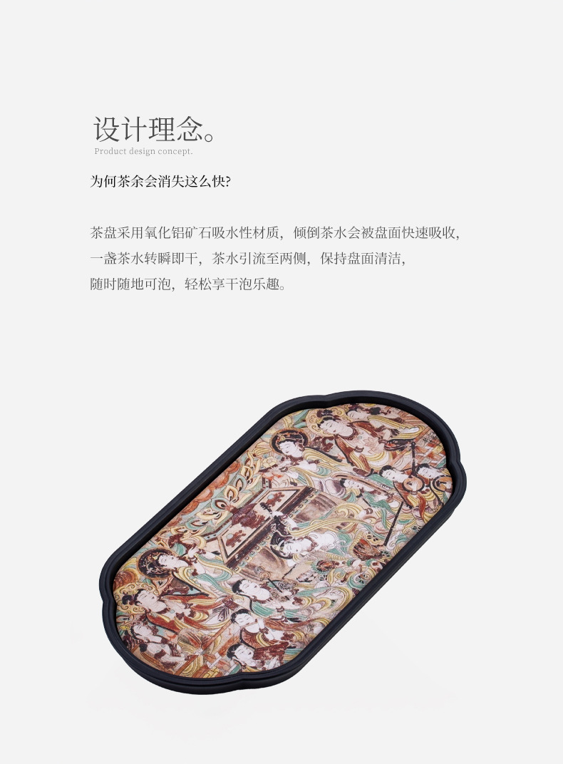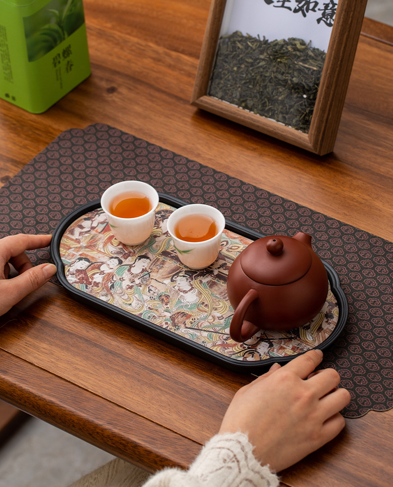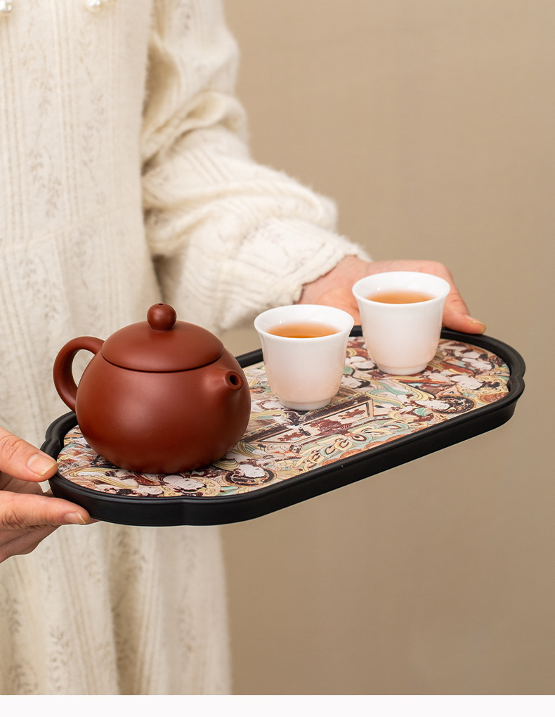 干泡茶台小型家用茶具隔热茶桌壶承吸水海棠托盘国潮文创千里江山