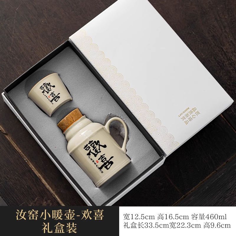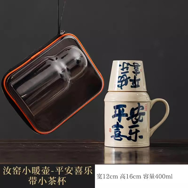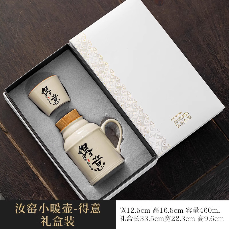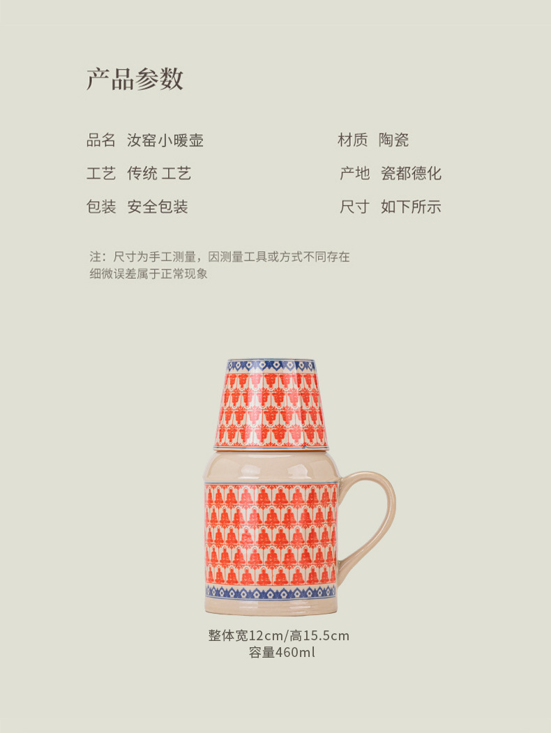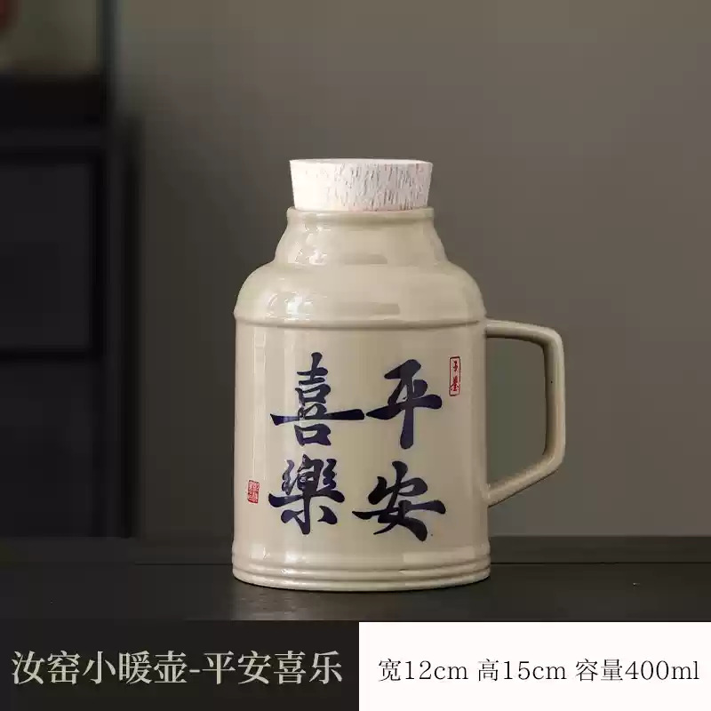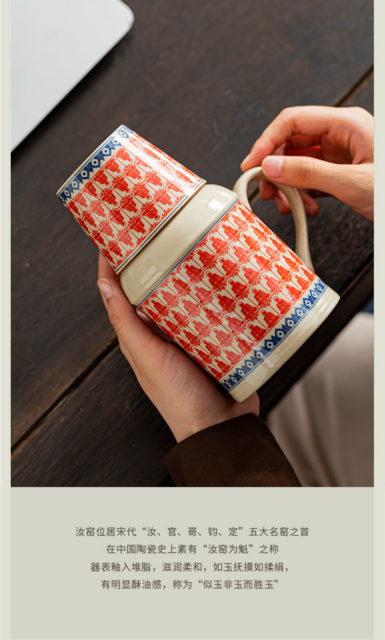 汝窑万花小暖壶家用带盖马克杯大容量陶瓷暖手瓶办公室泡茶壶茶杯
