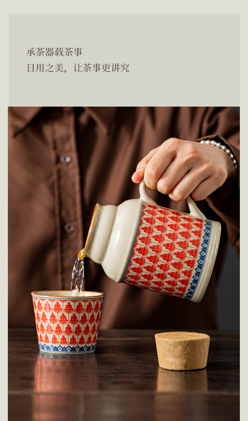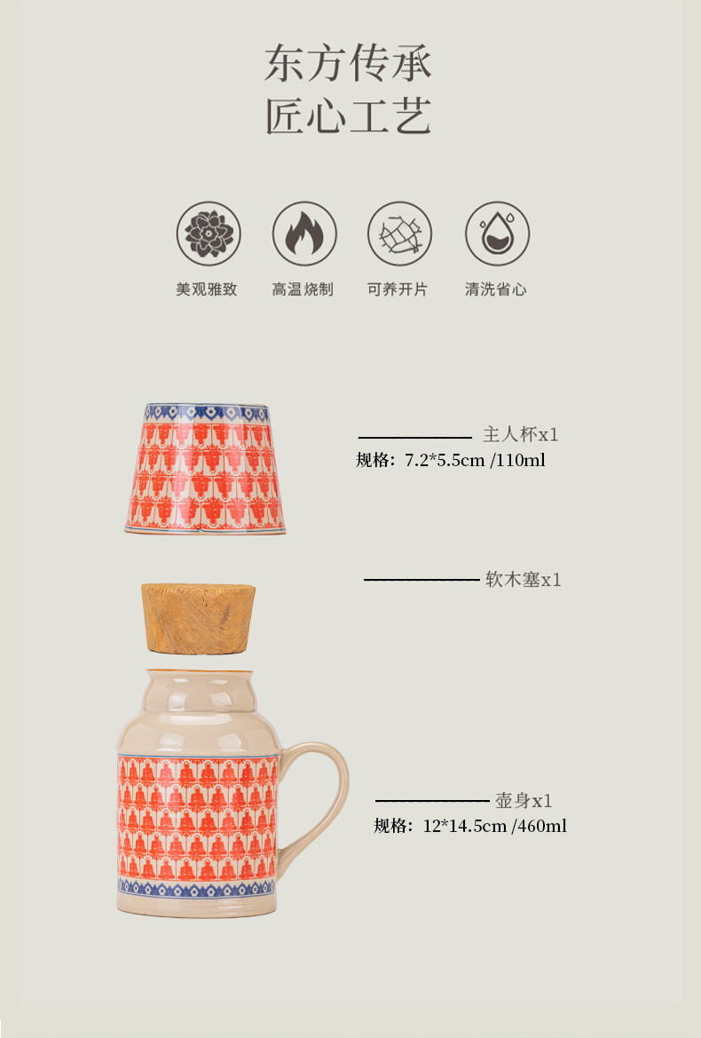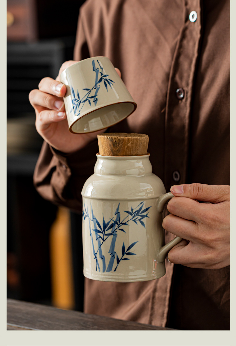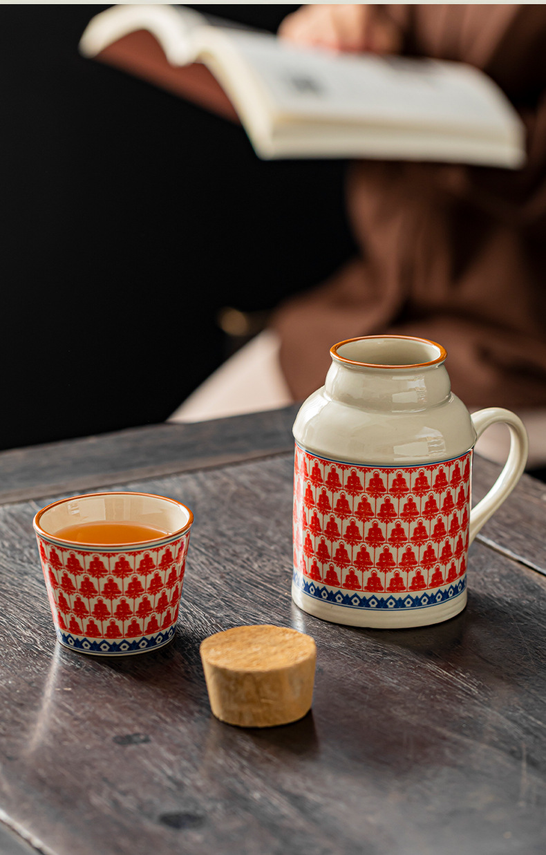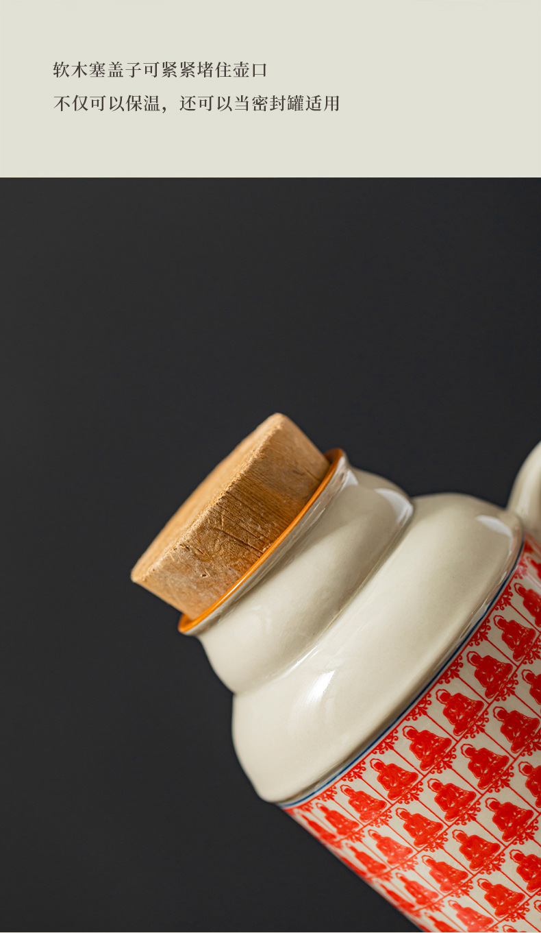 汝窑万花小暖壶家用带盖马克杯大容量陶瓷暖手瓶办公室泡茶壶茶杯