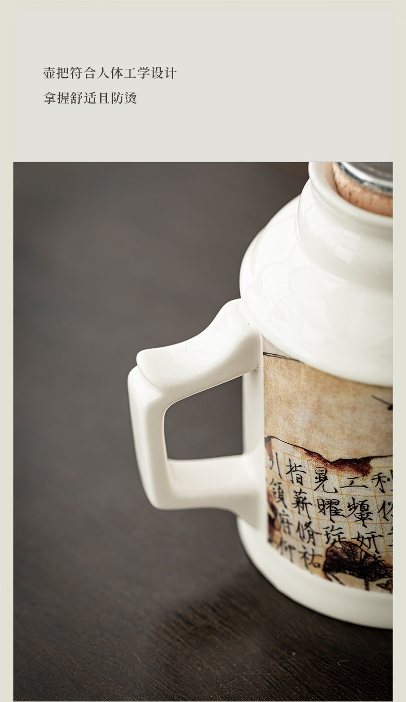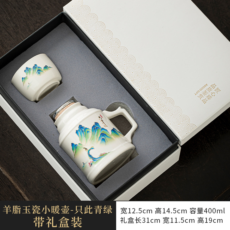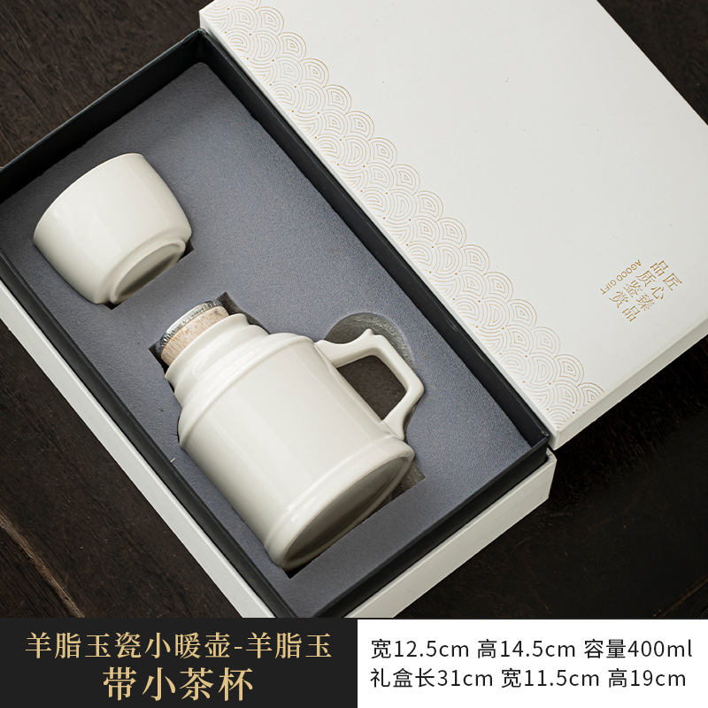 羊脂玉白瓷小暖壶水杯马克杯带盖家用焖泡茶杯大容量创意陶瓷