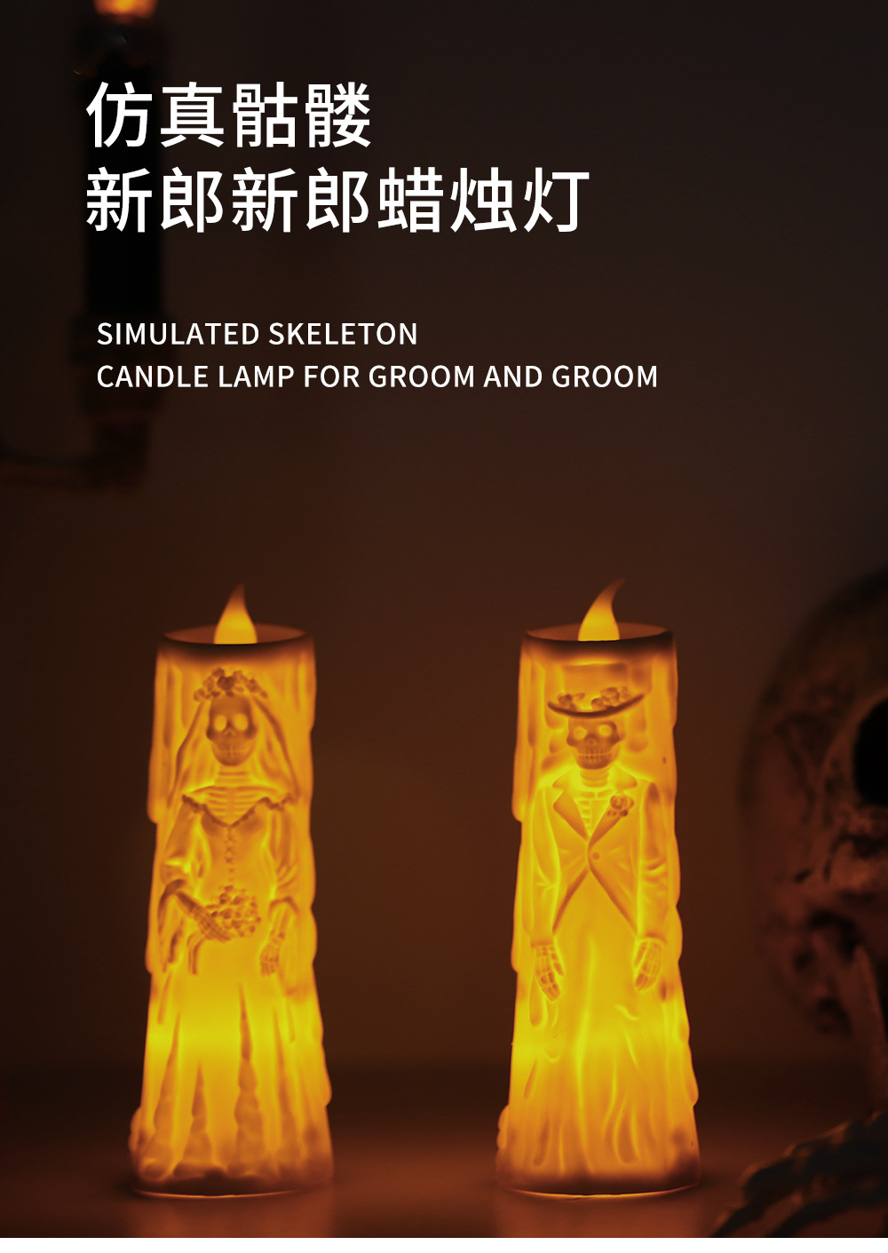 万圣节骷髅灯LED发光蜡烛恐怖装饰布置道具鬼新郎新娘情侣灯摆件