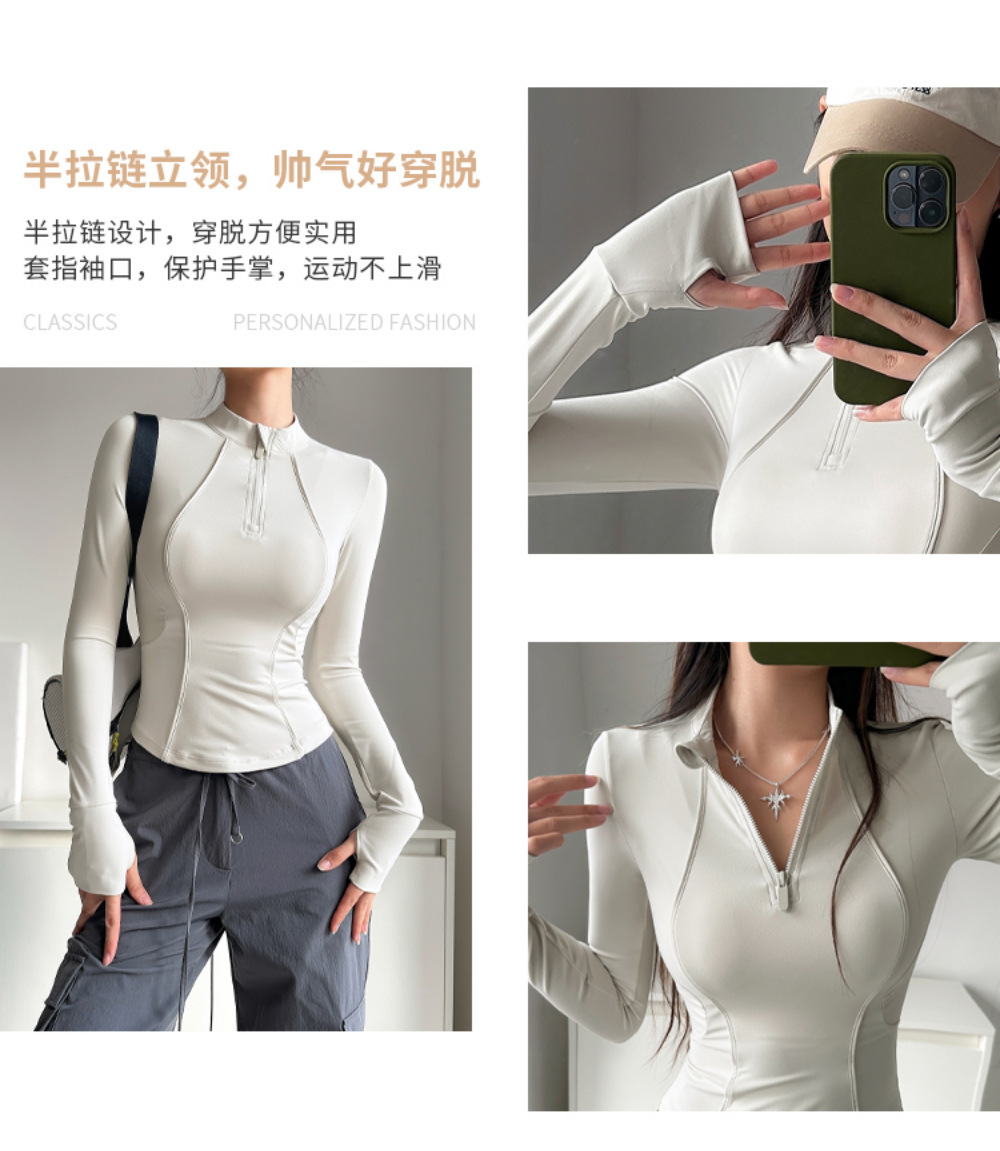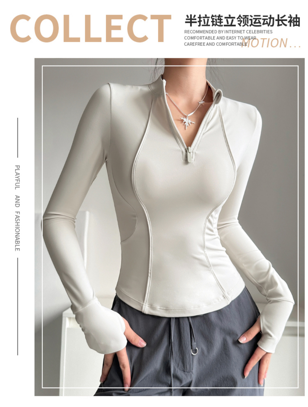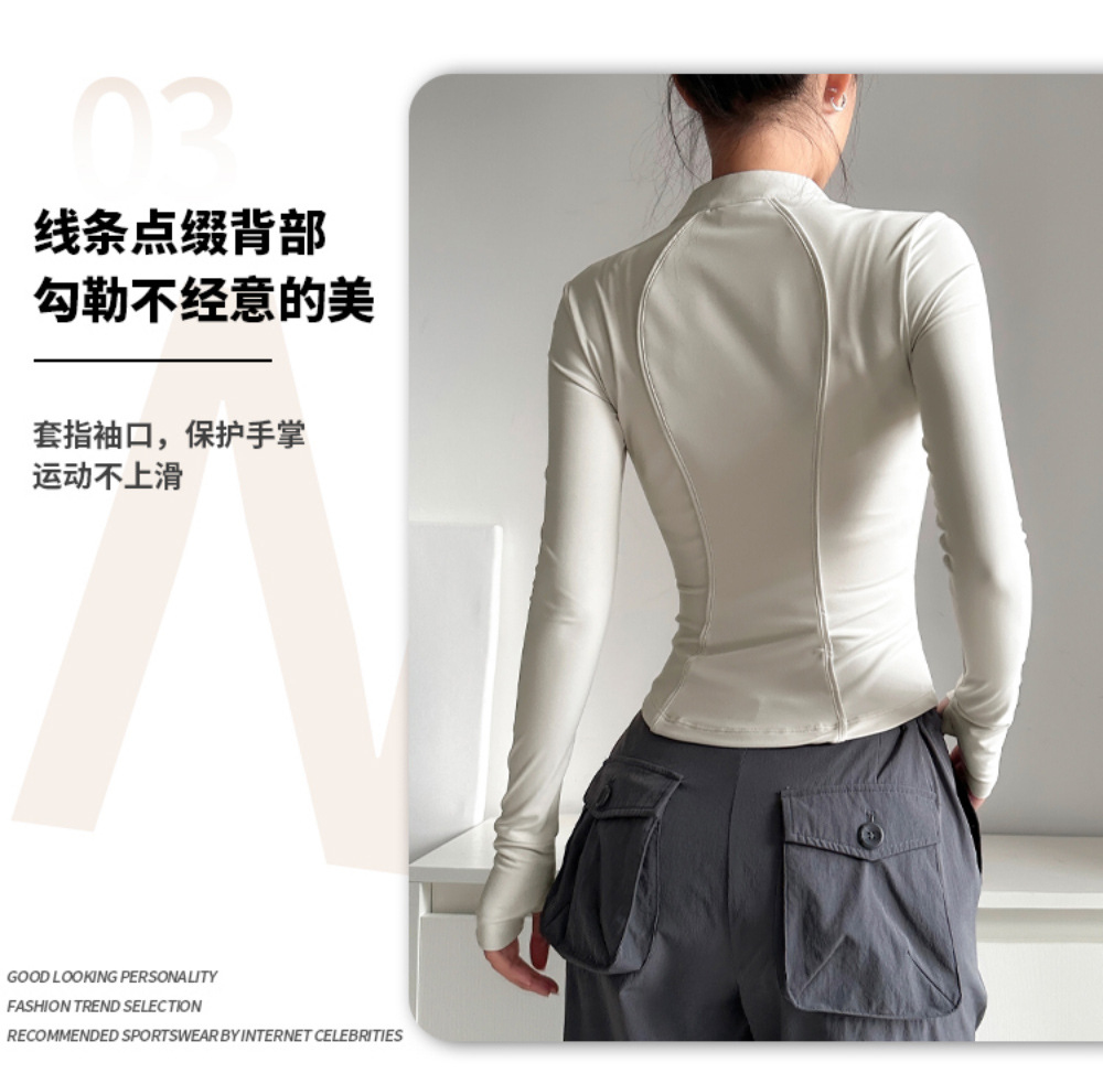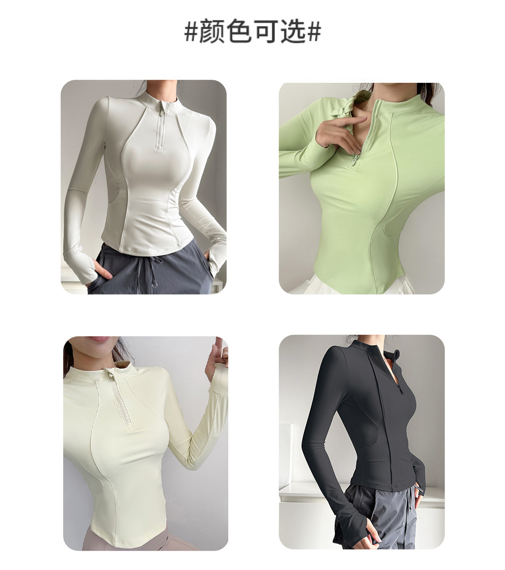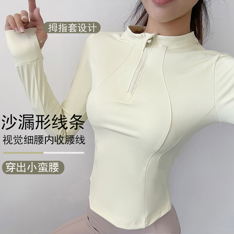 瑜伽服上衣女春秋半拉链紧身收腰运动长袖T恤显瘦速干训练健身衣
