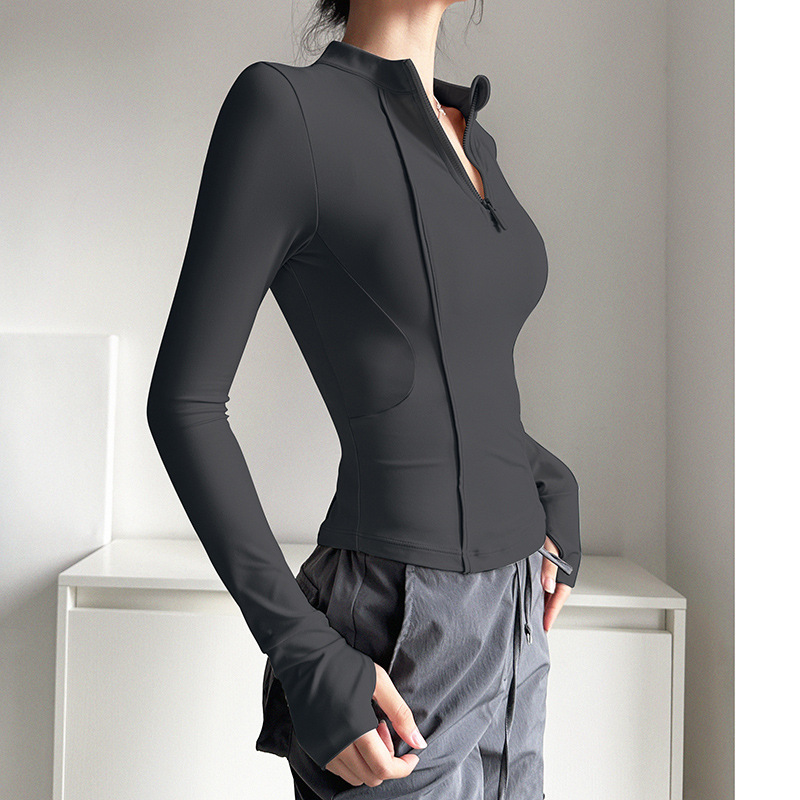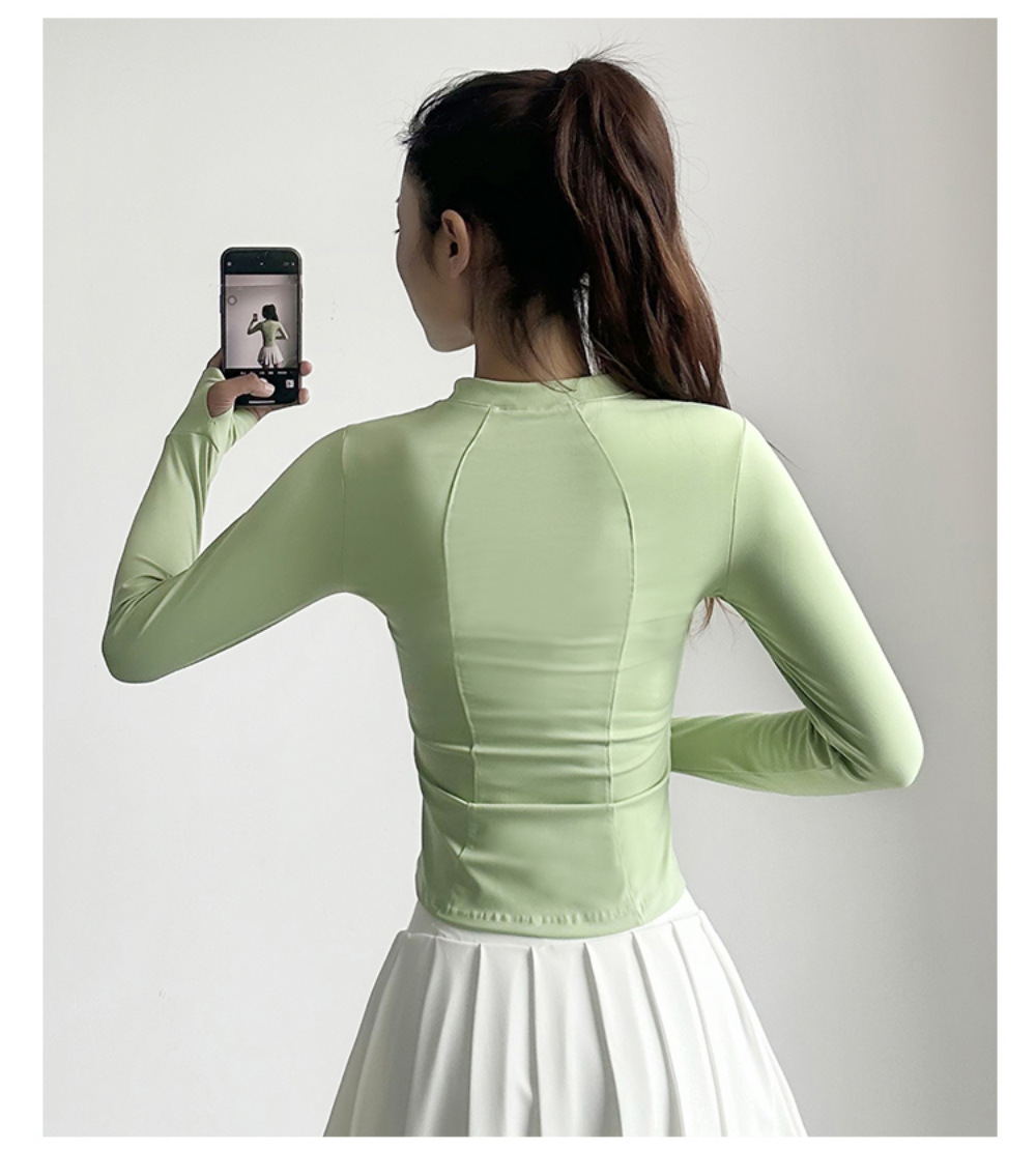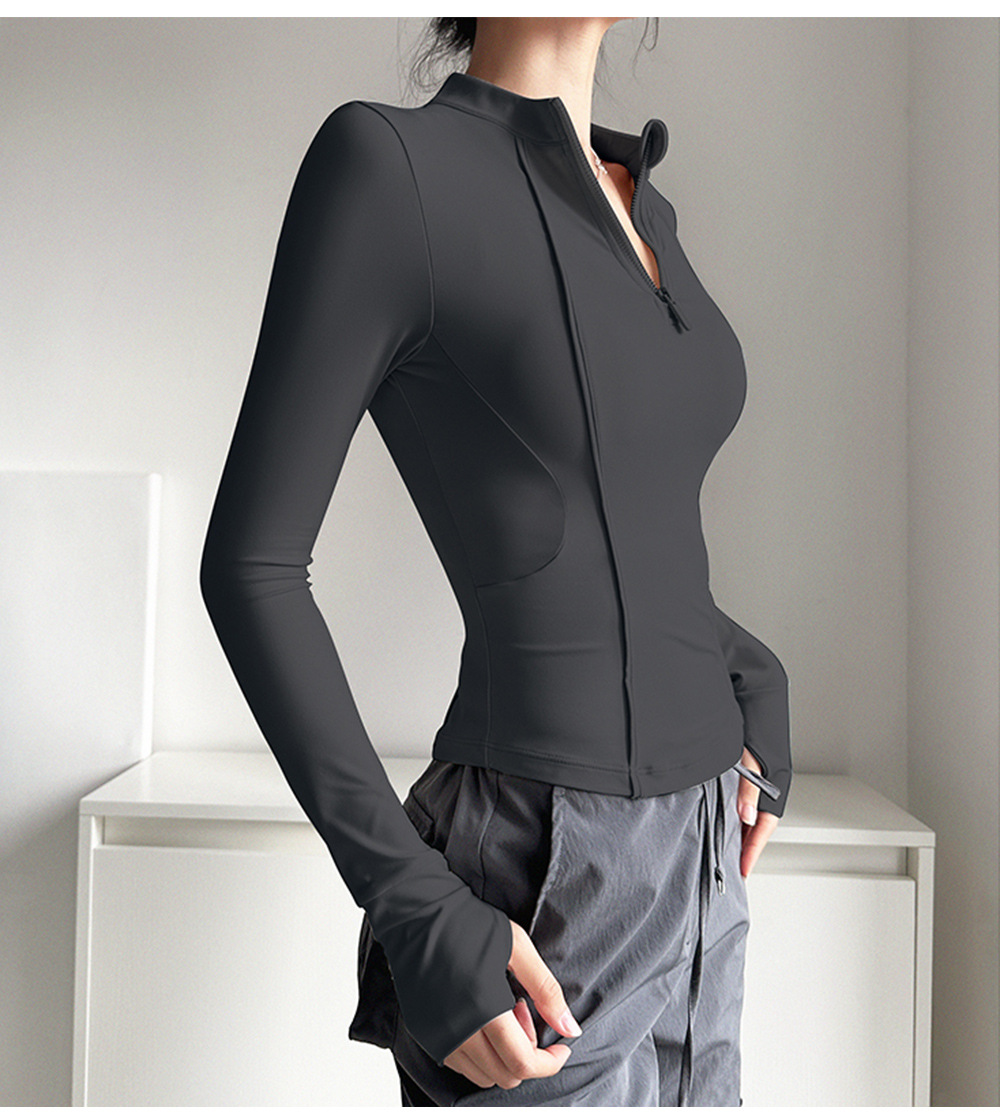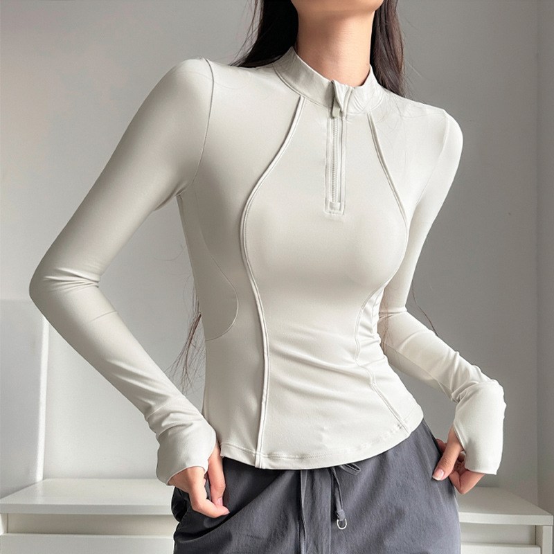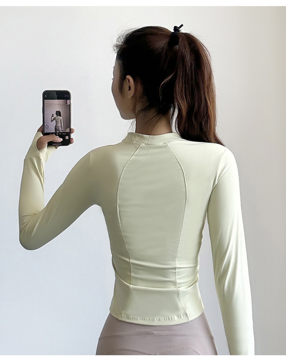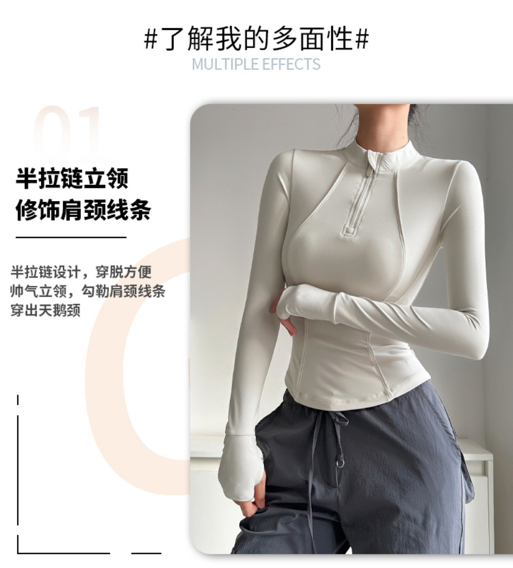 瑜伽服上衣女春秋半拉链紧身收腰运动长袖T恤显瘦速干训练健身衣