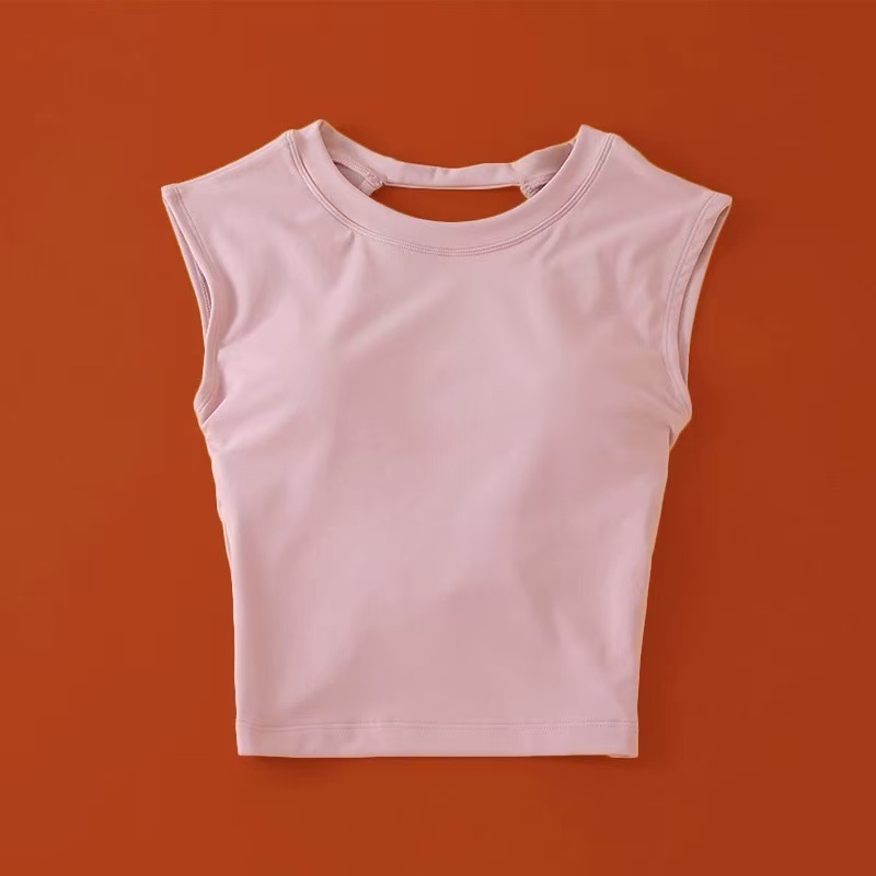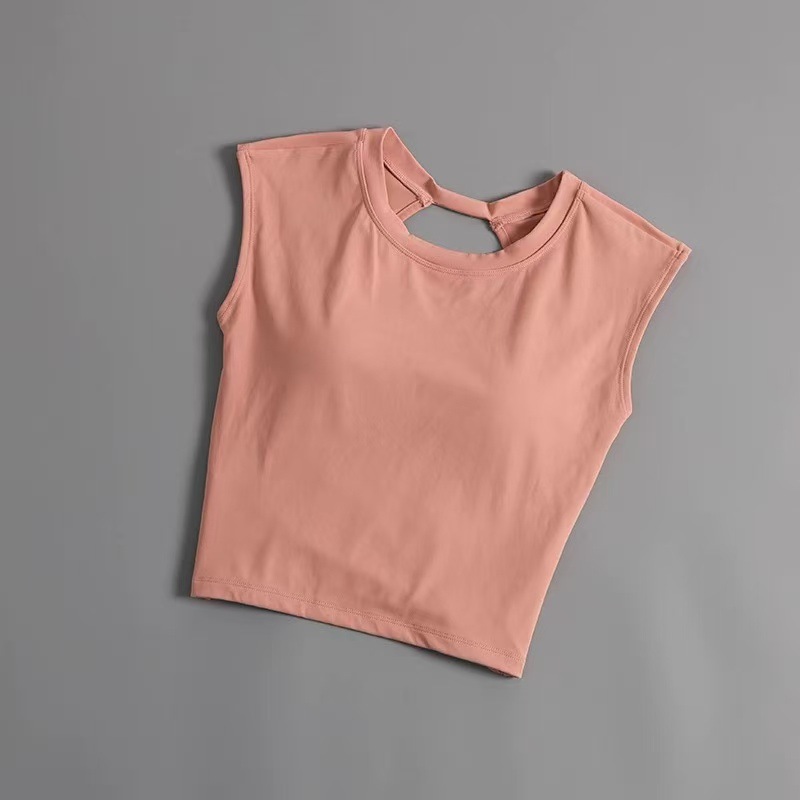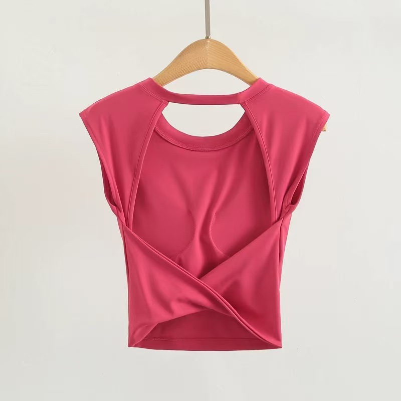 瑜伽上衣带胸垫瑜伽背心速干短袖T恤运动户外美背普拉提瑜伽服女