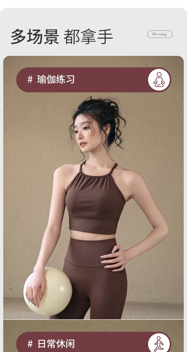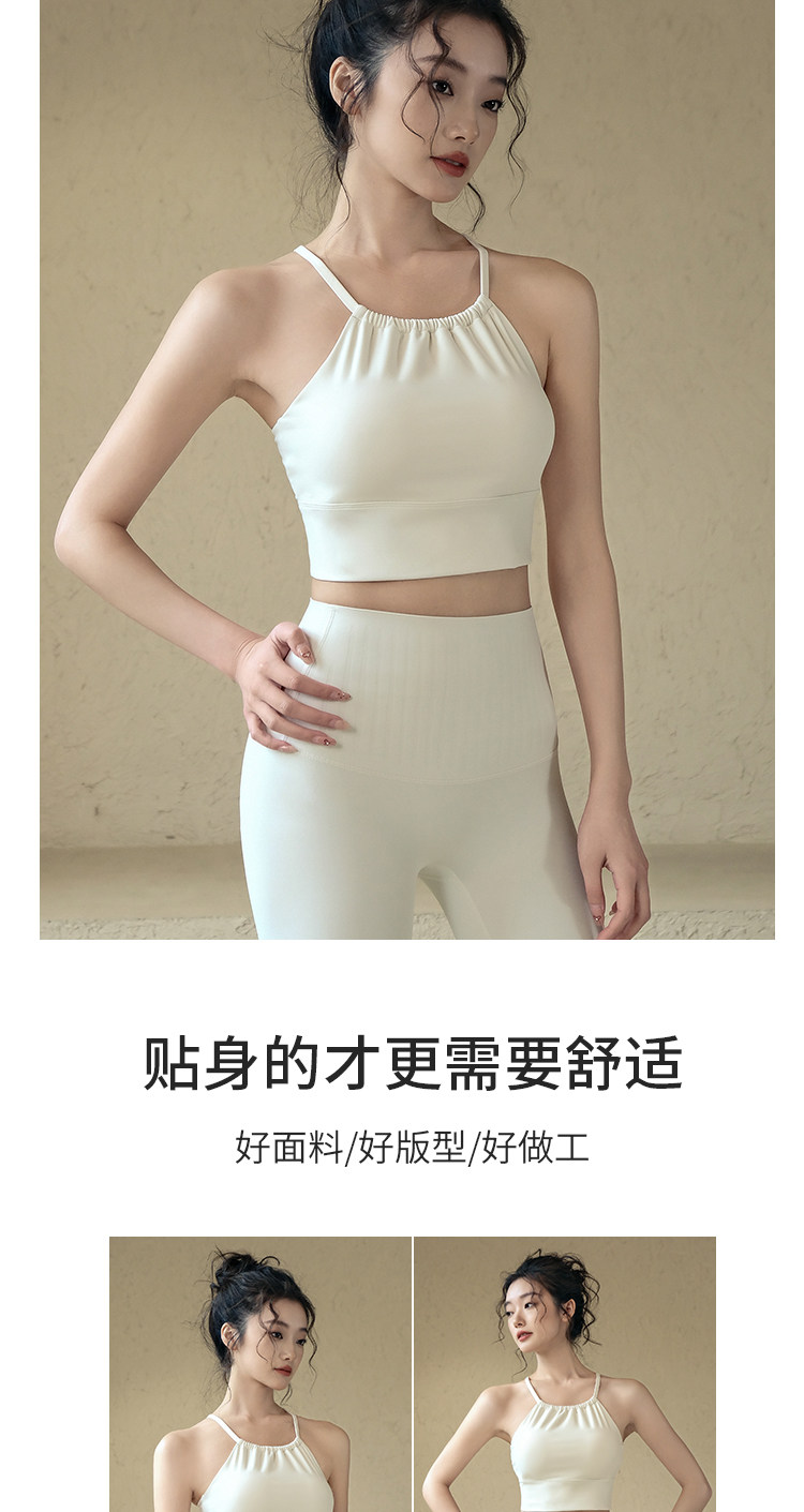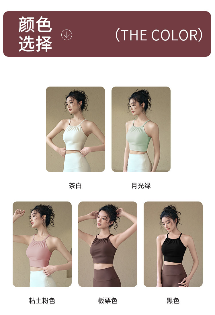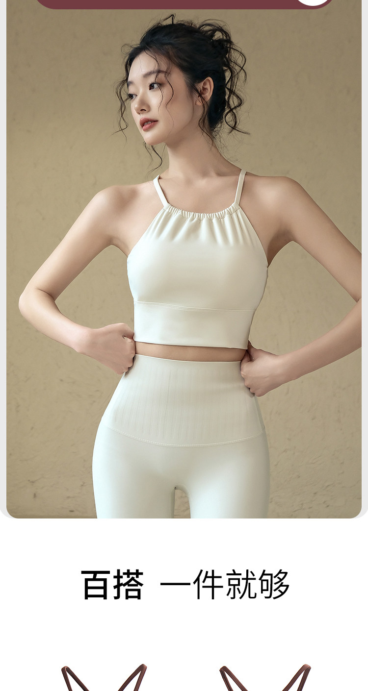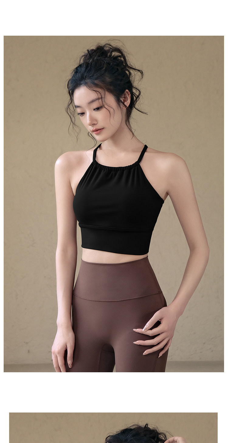 前领褶皱运动内衣女夏带胸垫美背健身服上衣挂脖吊带瑜伽文胸背心