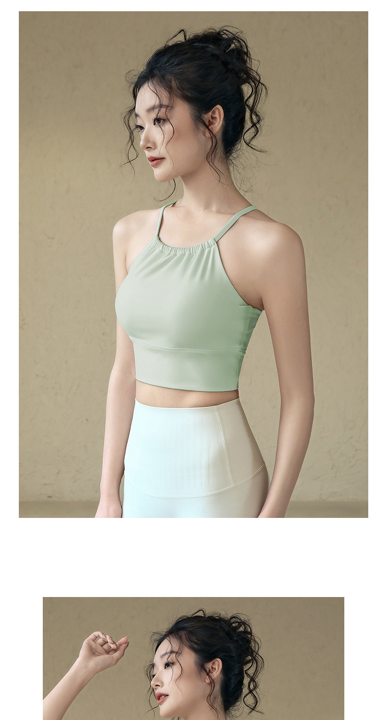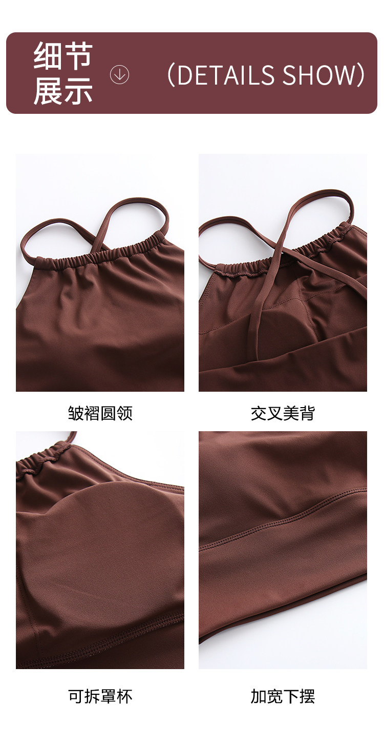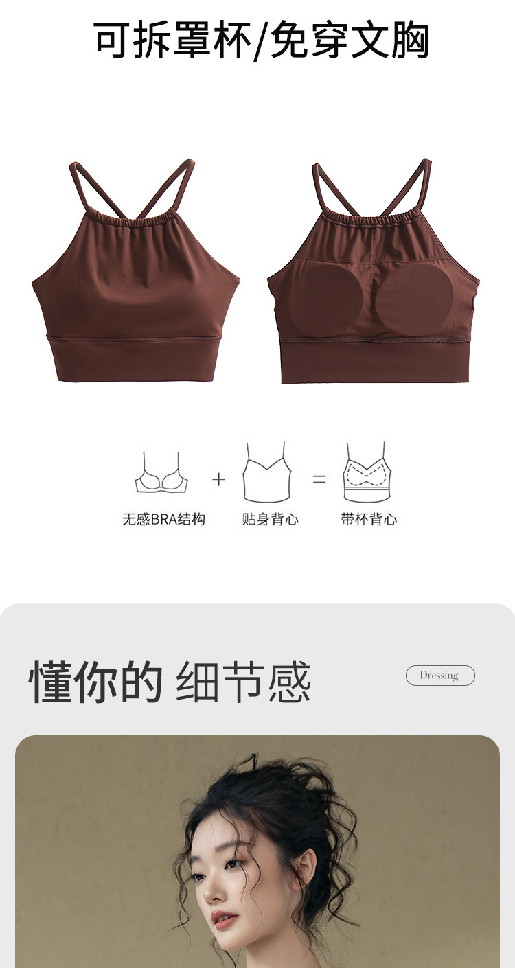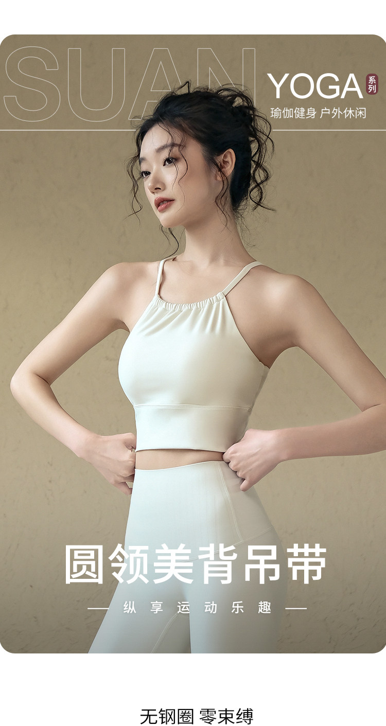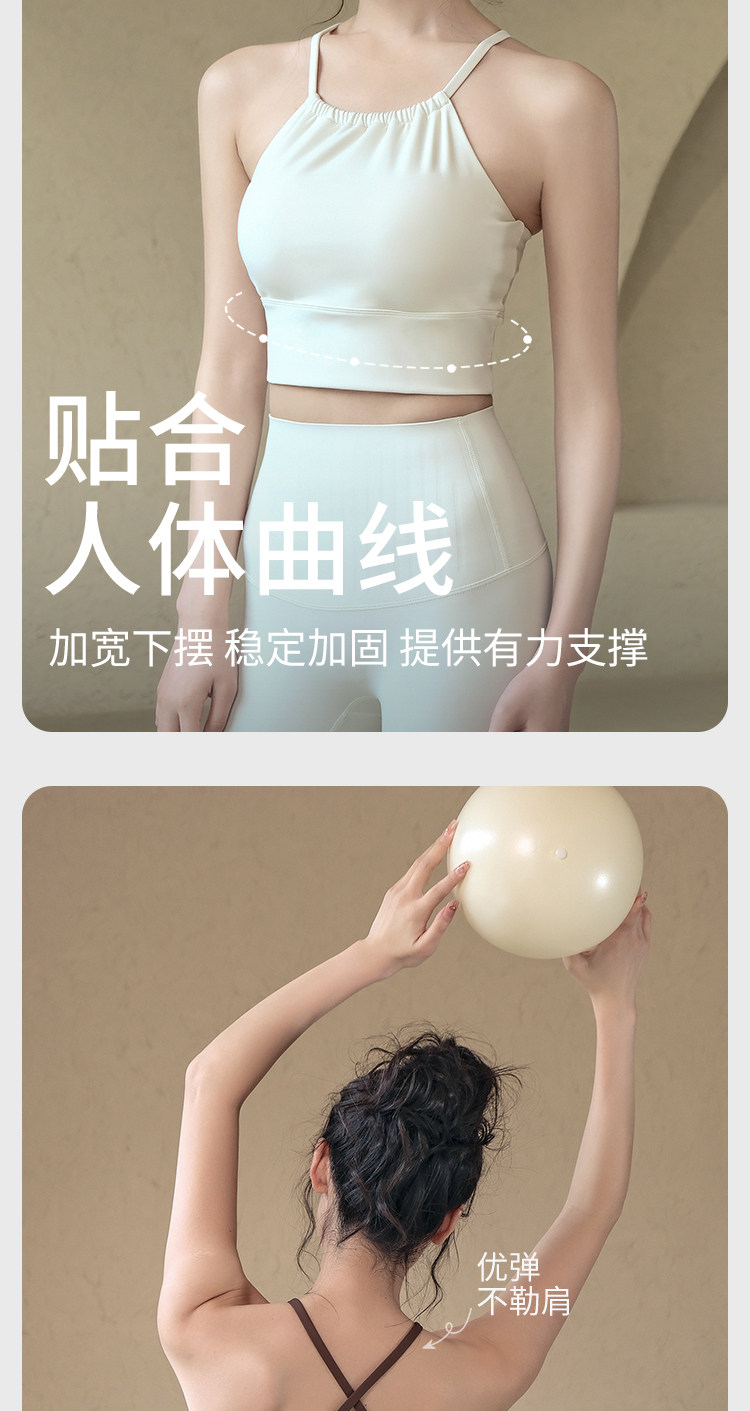 前领褶皱运动内衣女夏带胸垫美背健身服上衣挂脖吊带瑜伽文胸背心