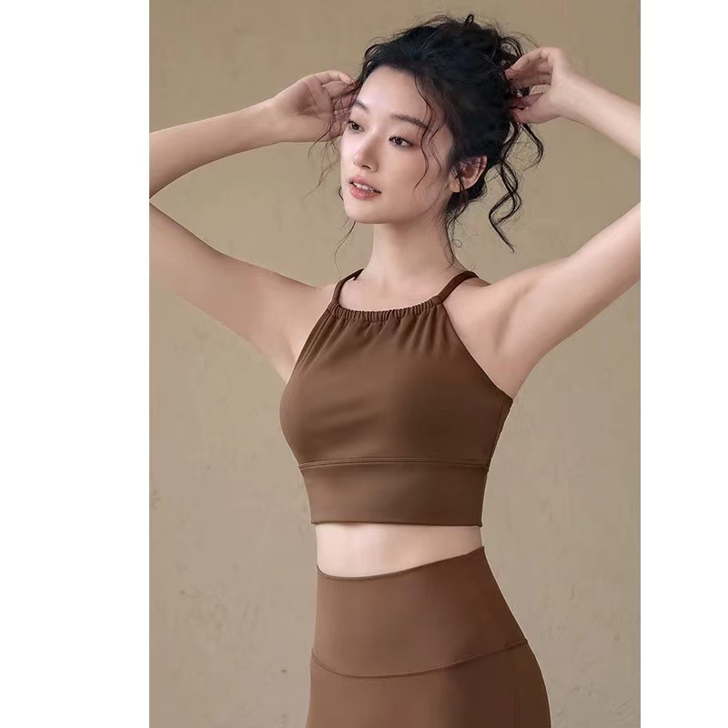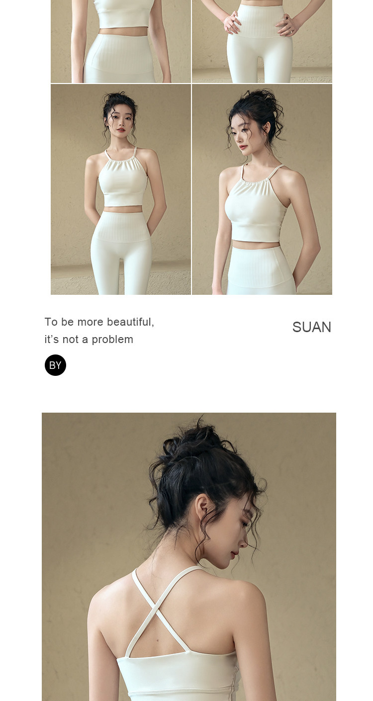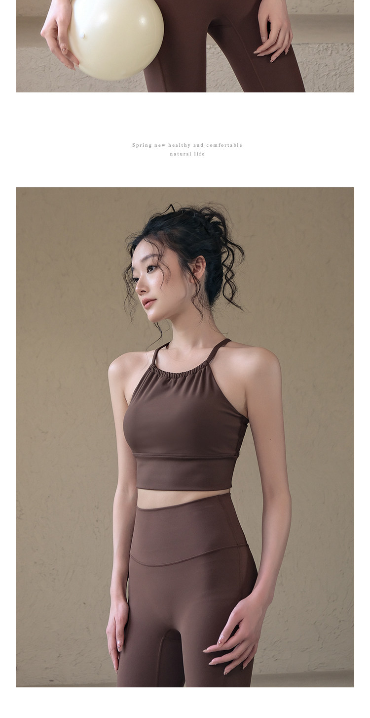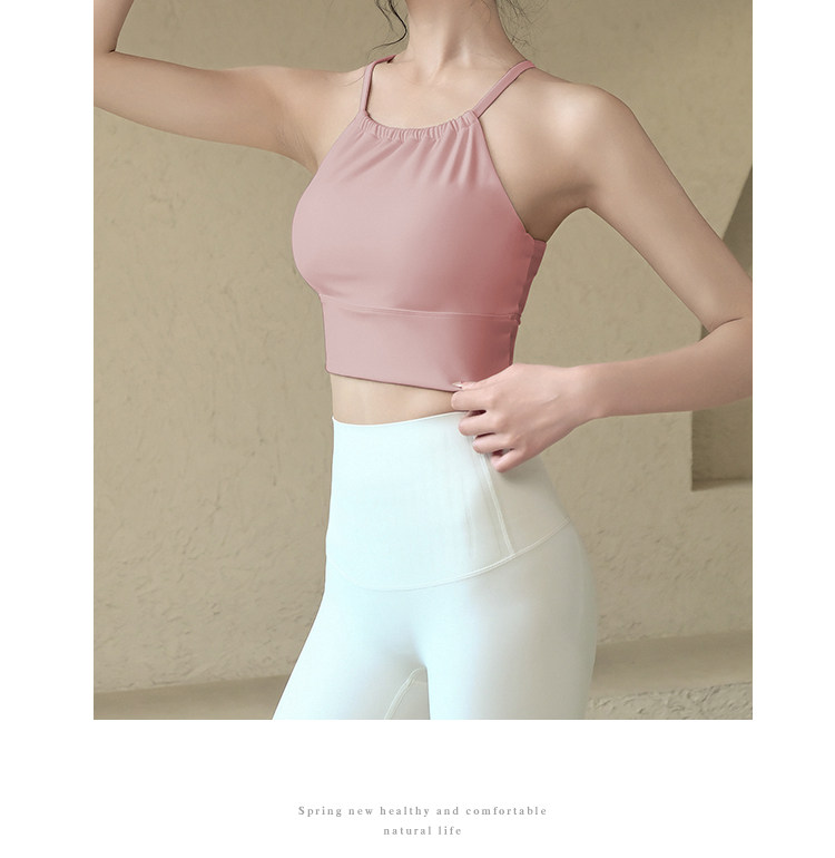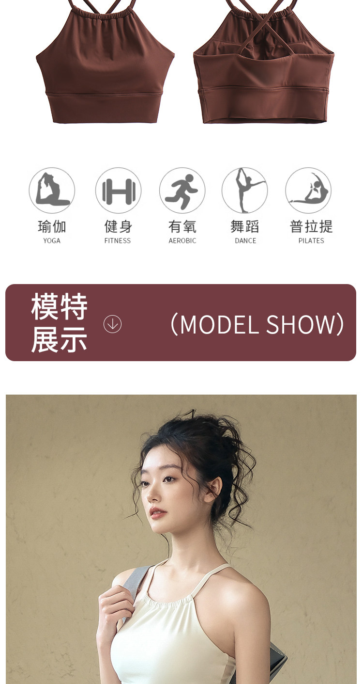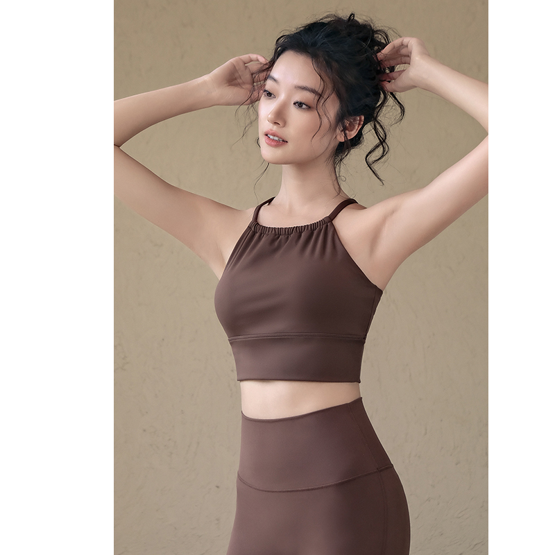 前领褶皱运动内衣女夏带胸垫美背健身服上衣挂脖吊带瑜伽文胸背心