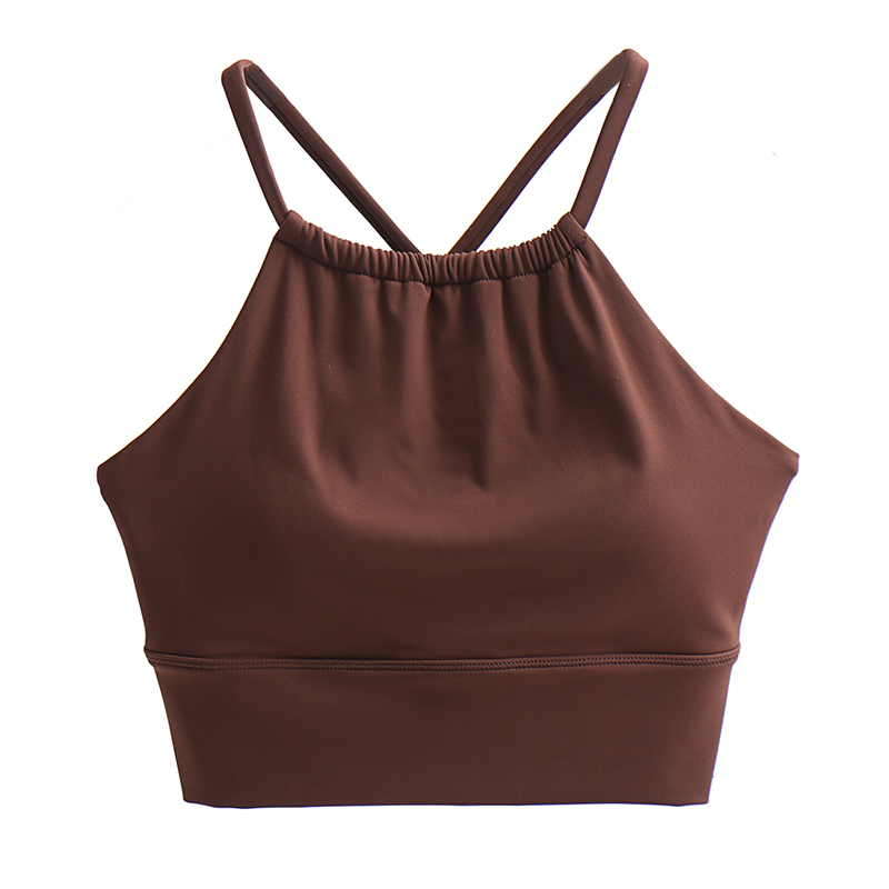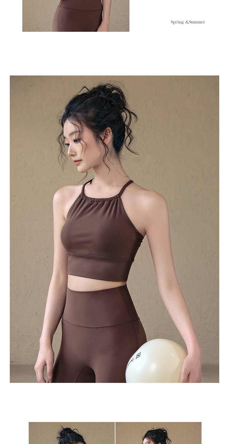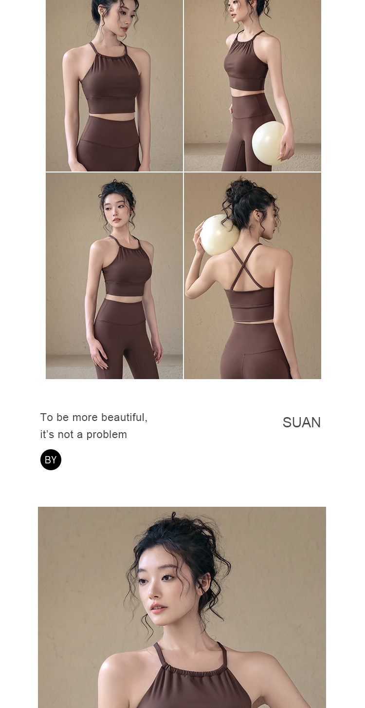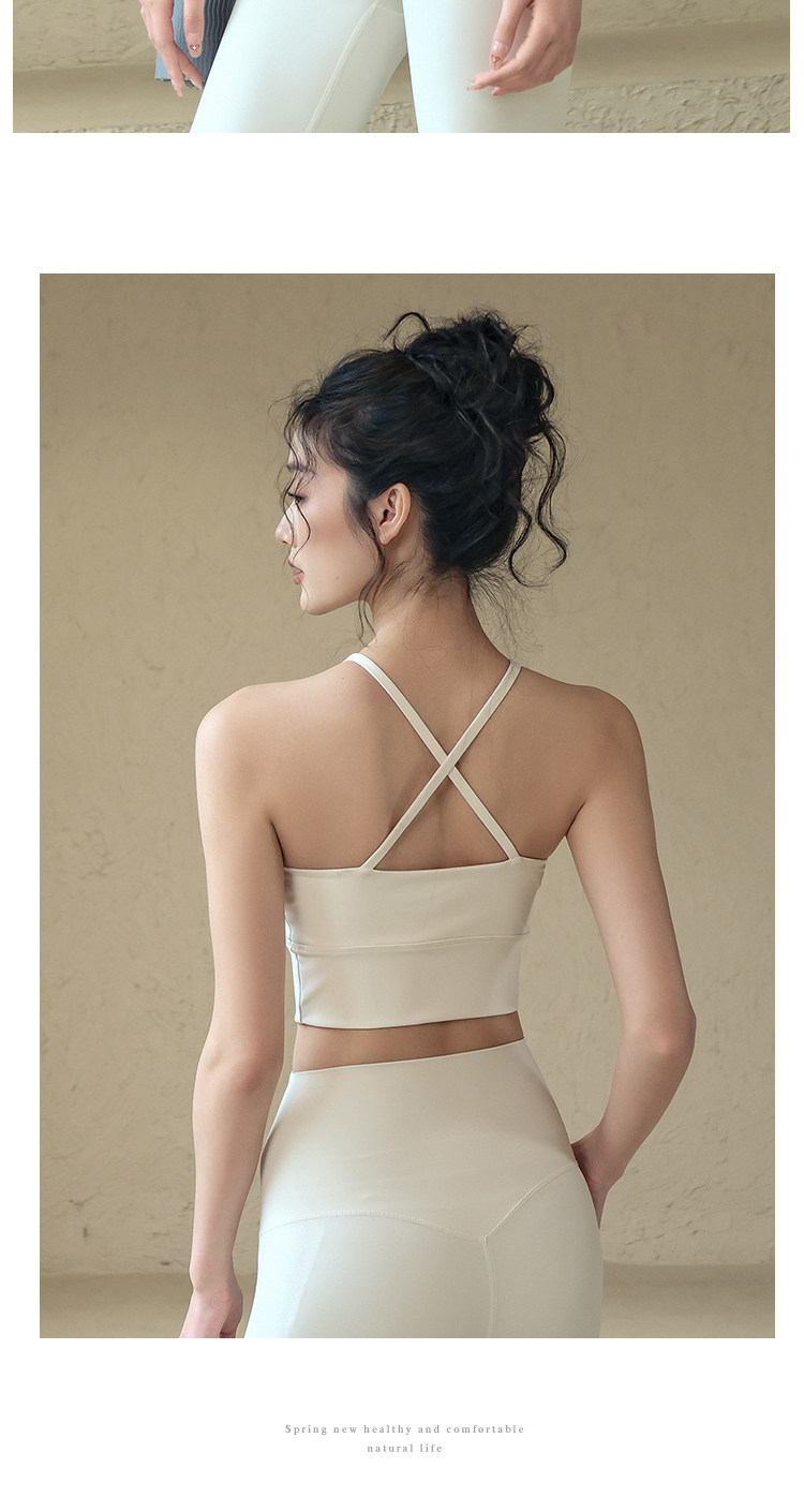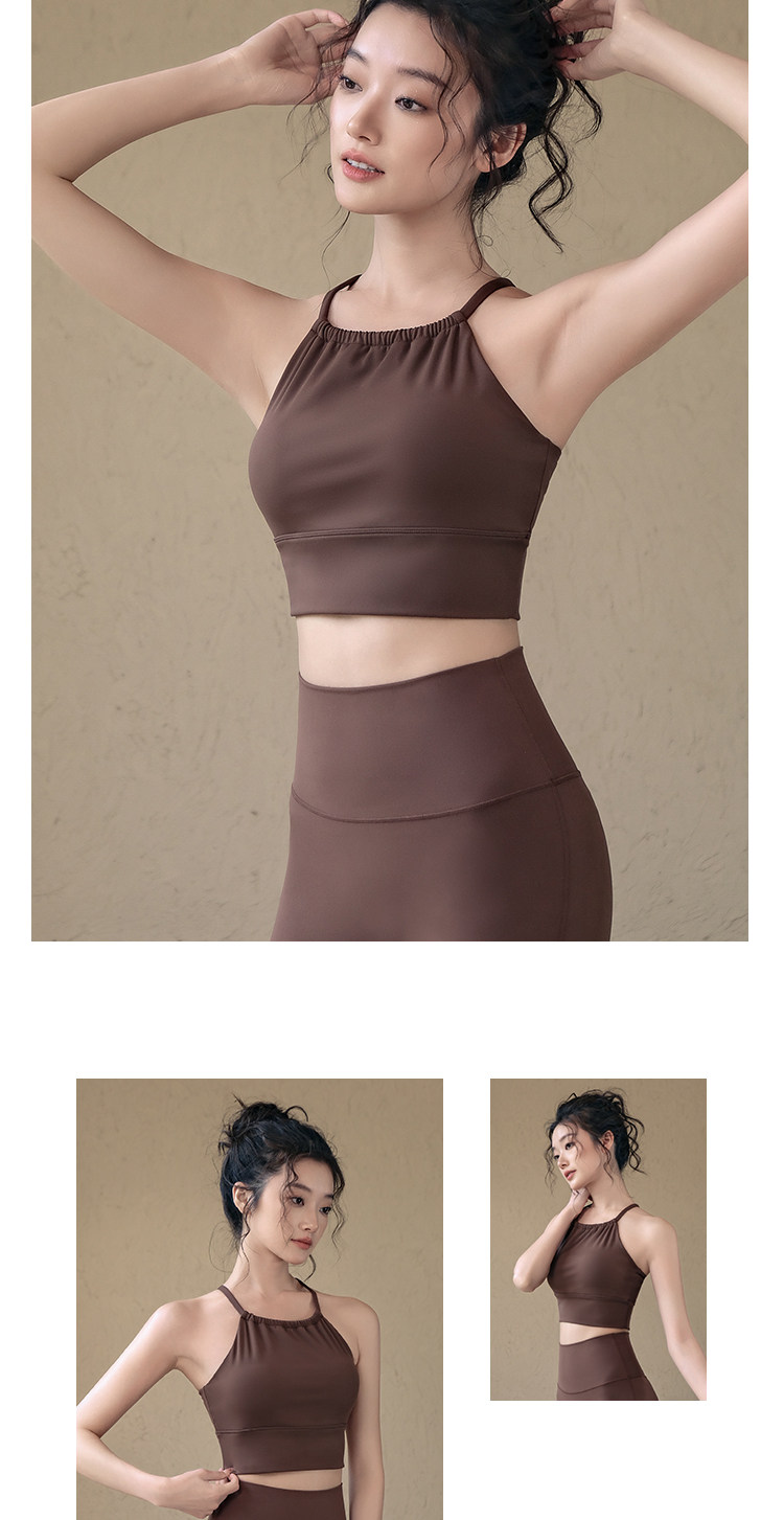 前领褶皱运动内衣女夏带胸垫美背健身服上衣挂脖吊带瑜伽文胸背心