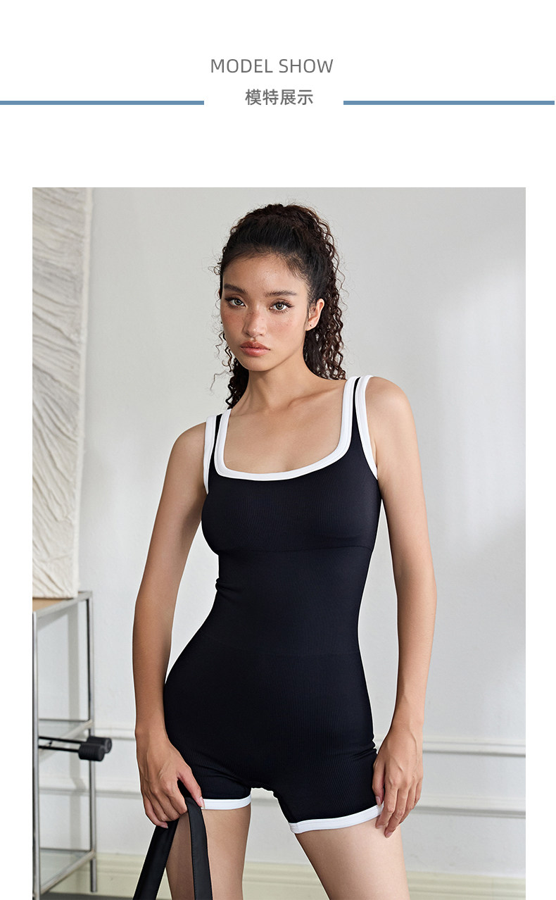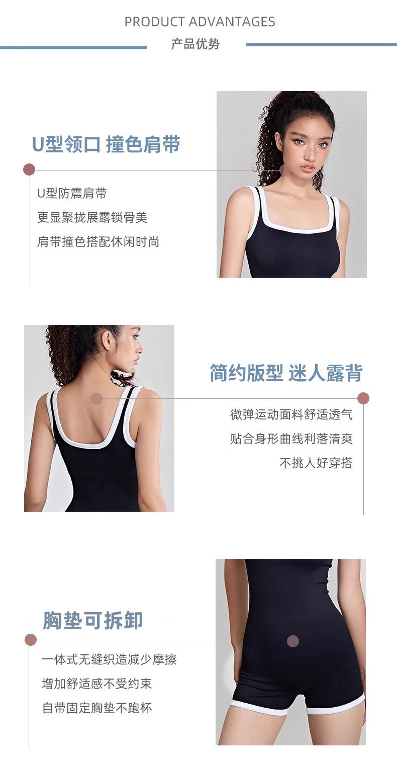 美式高级感连体衣无缝显瘦带胸垫方领美背无袖健身衣修身运动短裤