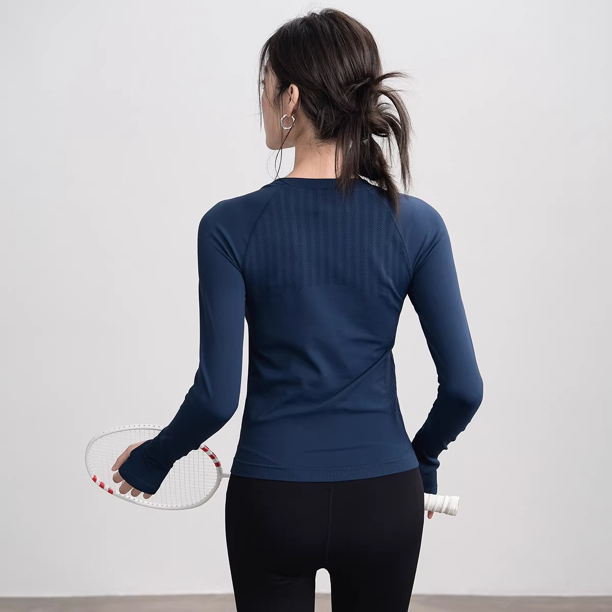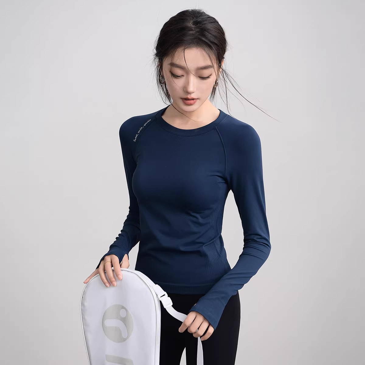 运动上衣女秋冬款修身圆领速干瑜伽服专业透气跑步训练健身服长袖