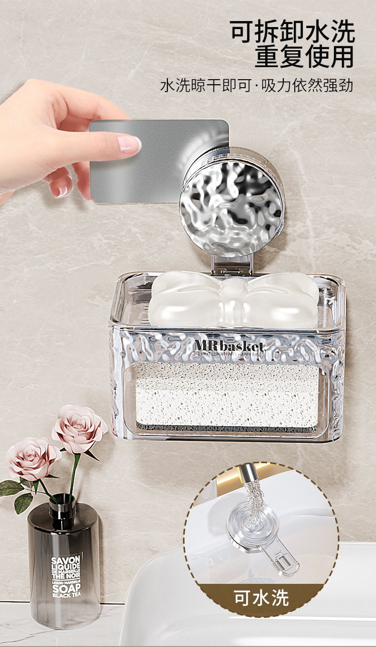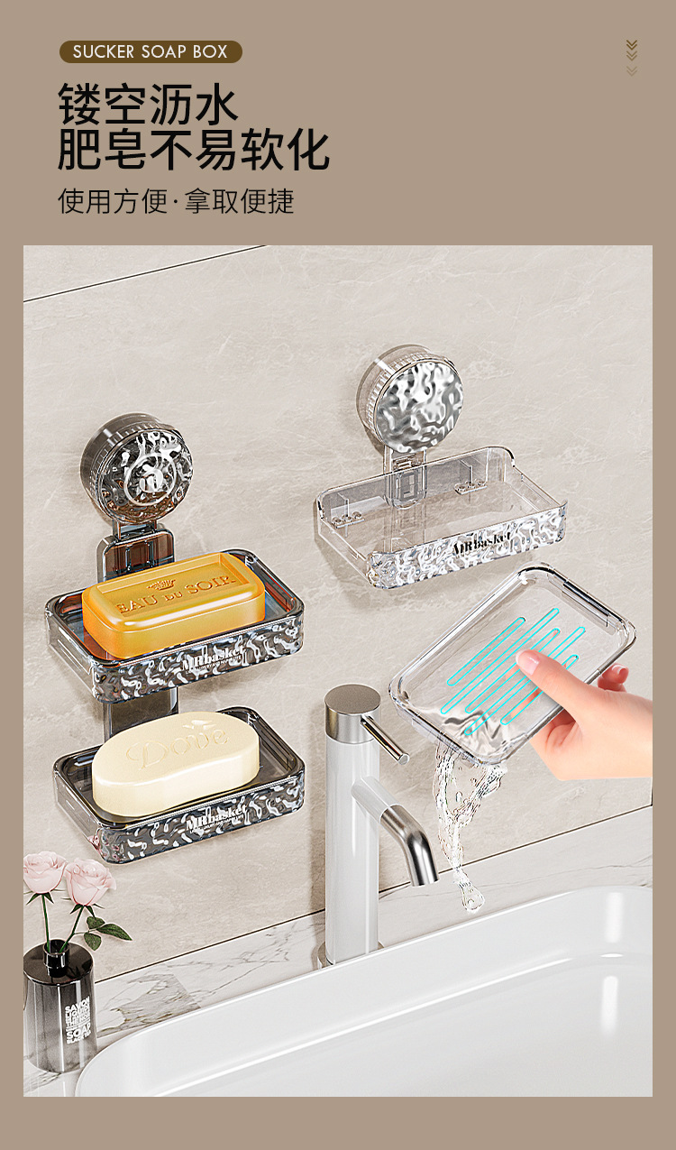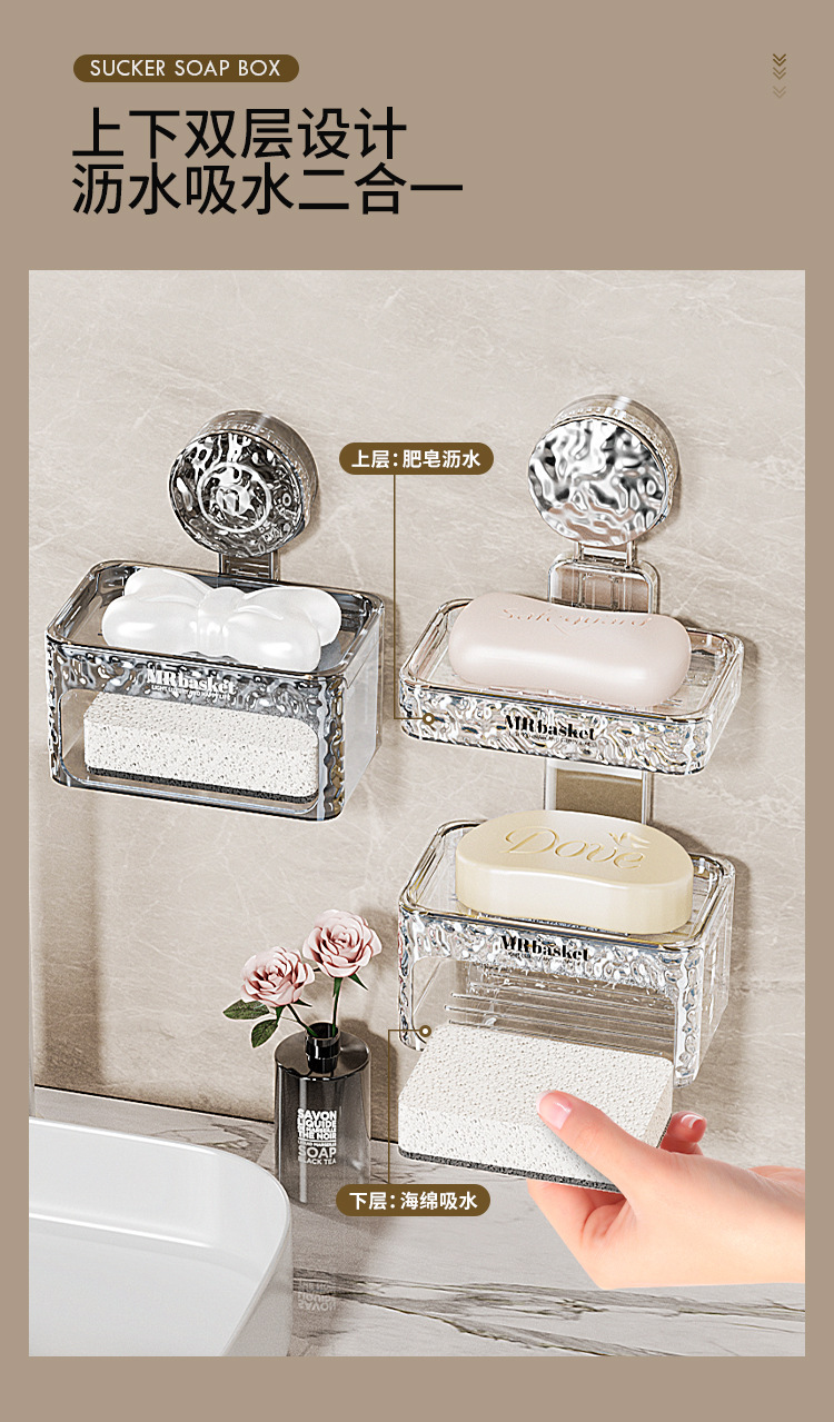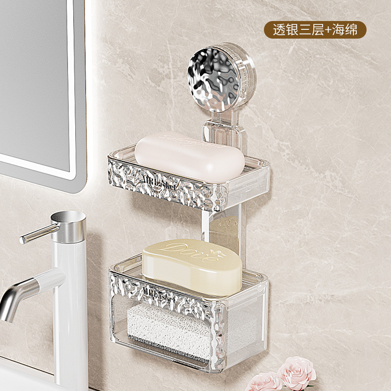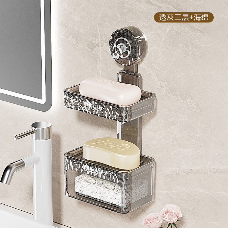 吸盘肥皂盒壁挂加厚免打孔家用卫生间双层香皂盒沥水海绵垫置物架