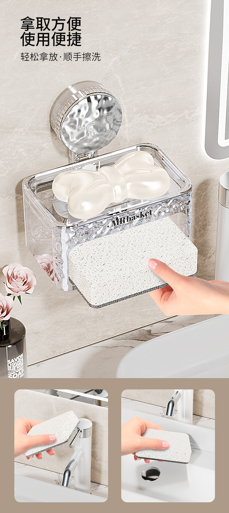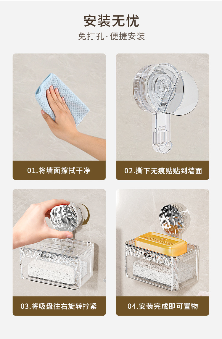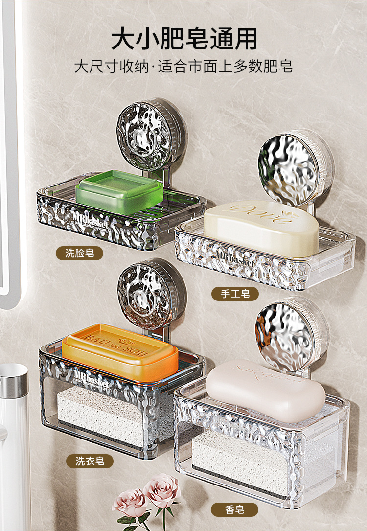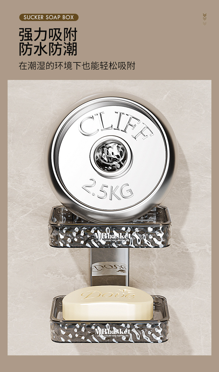吸盘肥皂盒壁挂加厚免打孔家用卫生间双层香皂盒沥水海绵垫置物架