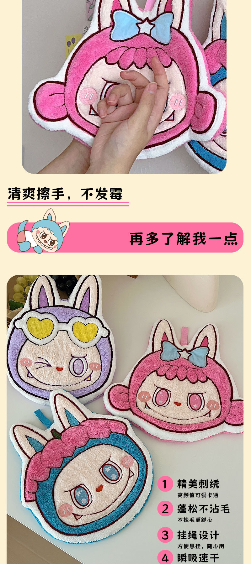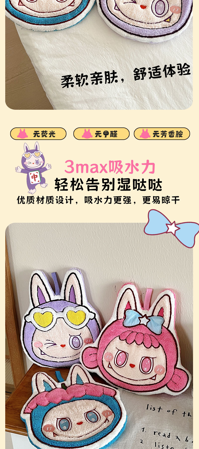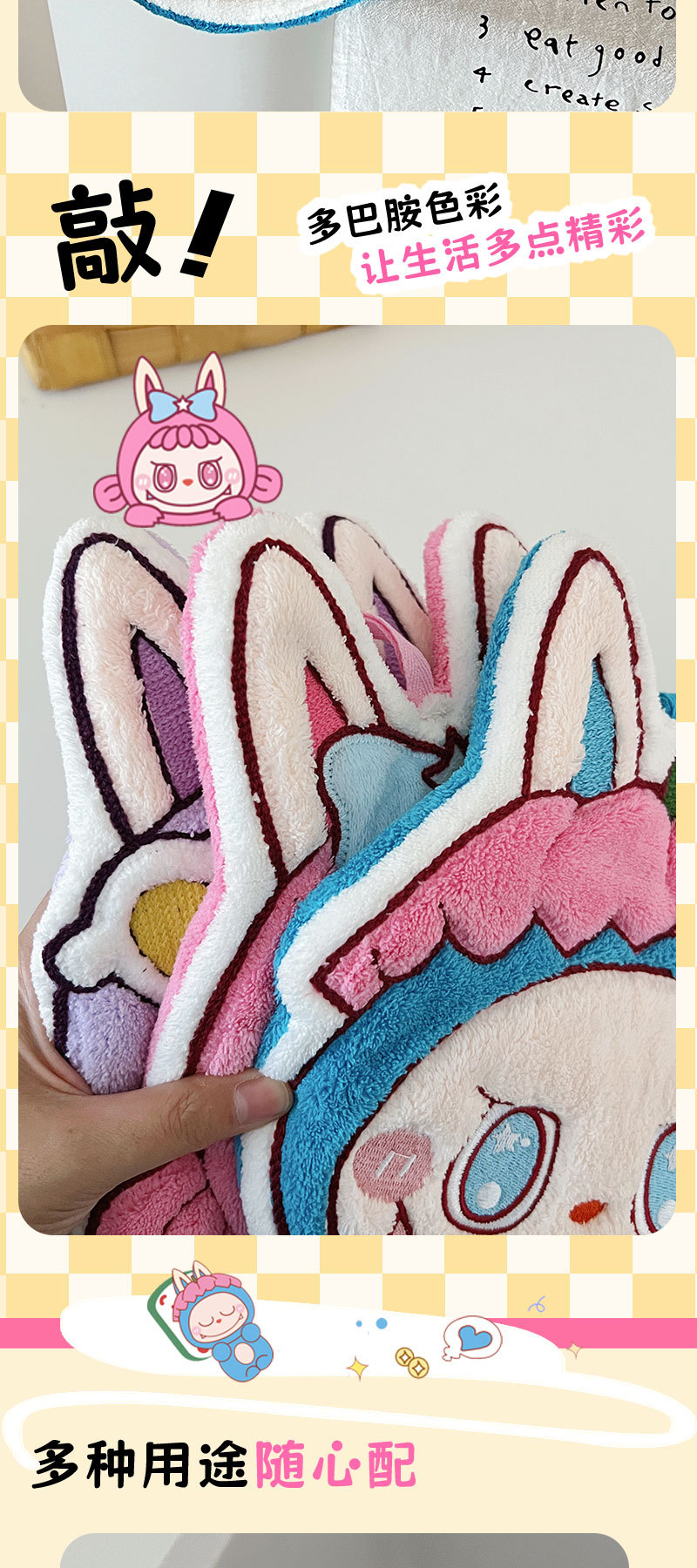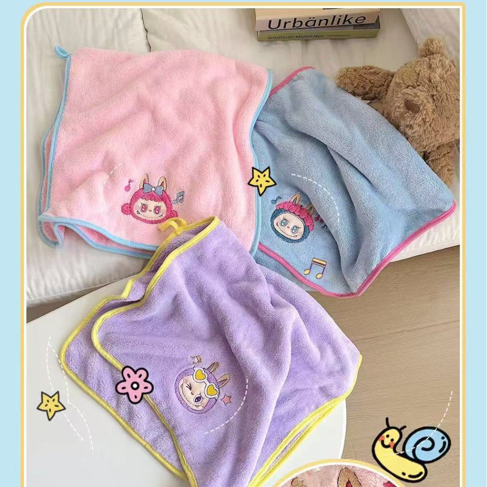 拉布布擦手巾珊瑚绒比纯棉吸水速干浴巾洗澡擦头发干发帽毛巾套装