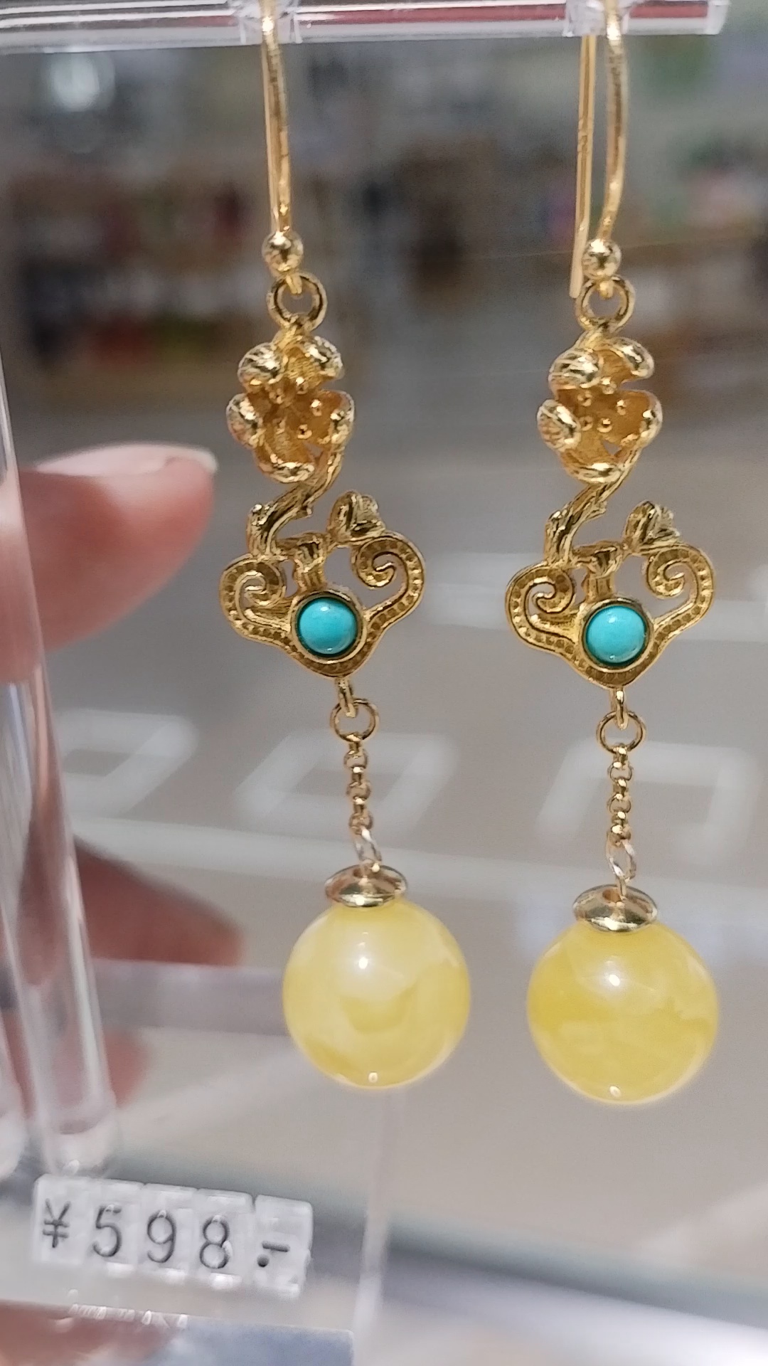俄罗斯波罗的海天然蜜蜡耳饰银嵌工艺#温润如玉#色泽明亮