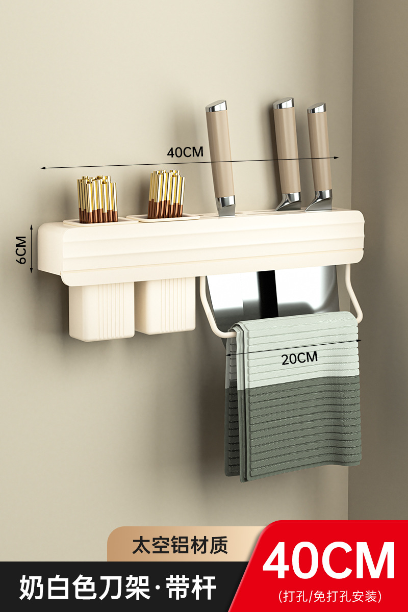 奶油风厨房置物架免打孔壁挂刀架调味料家用多功能砧板墙上收纳架