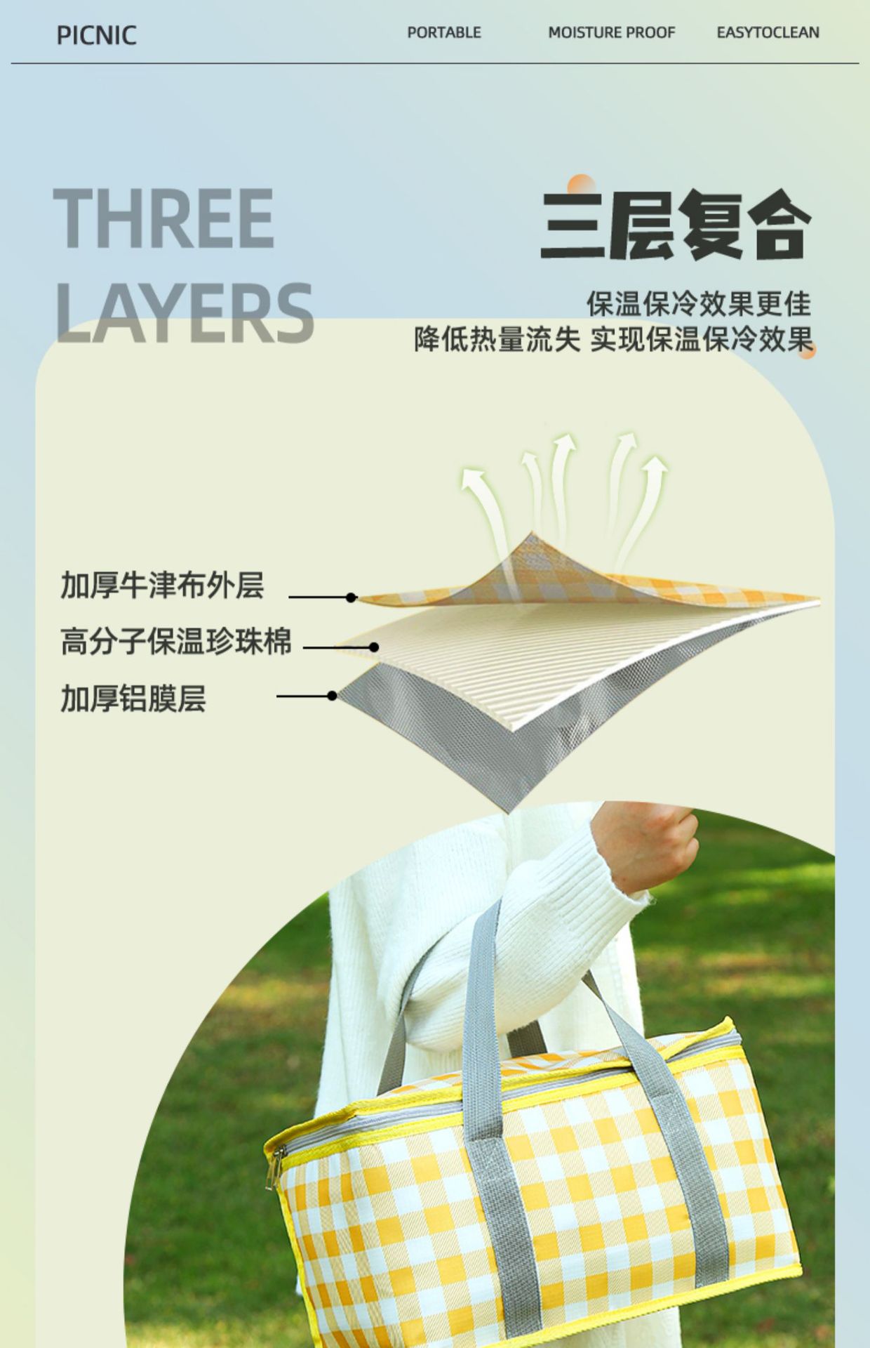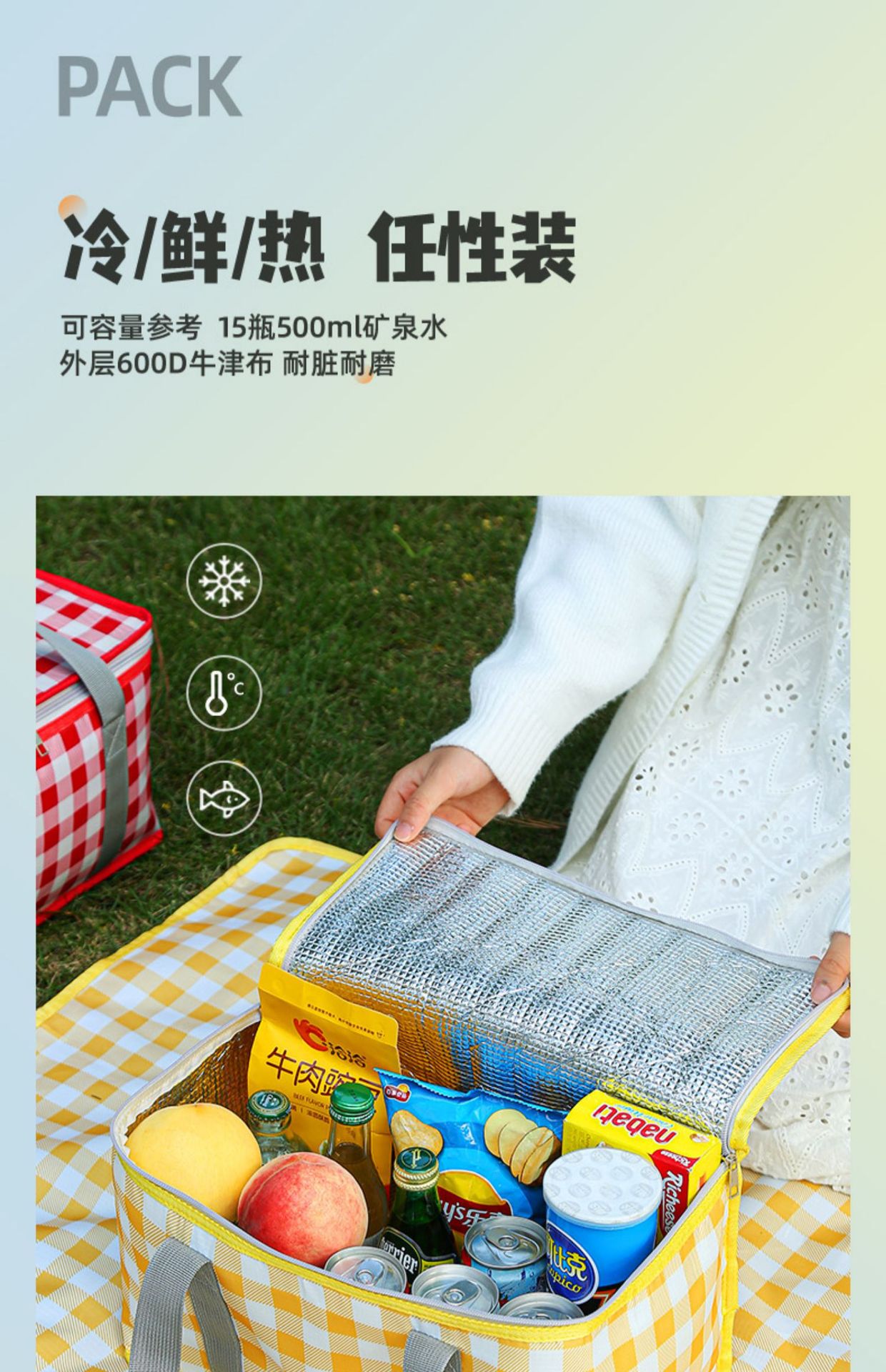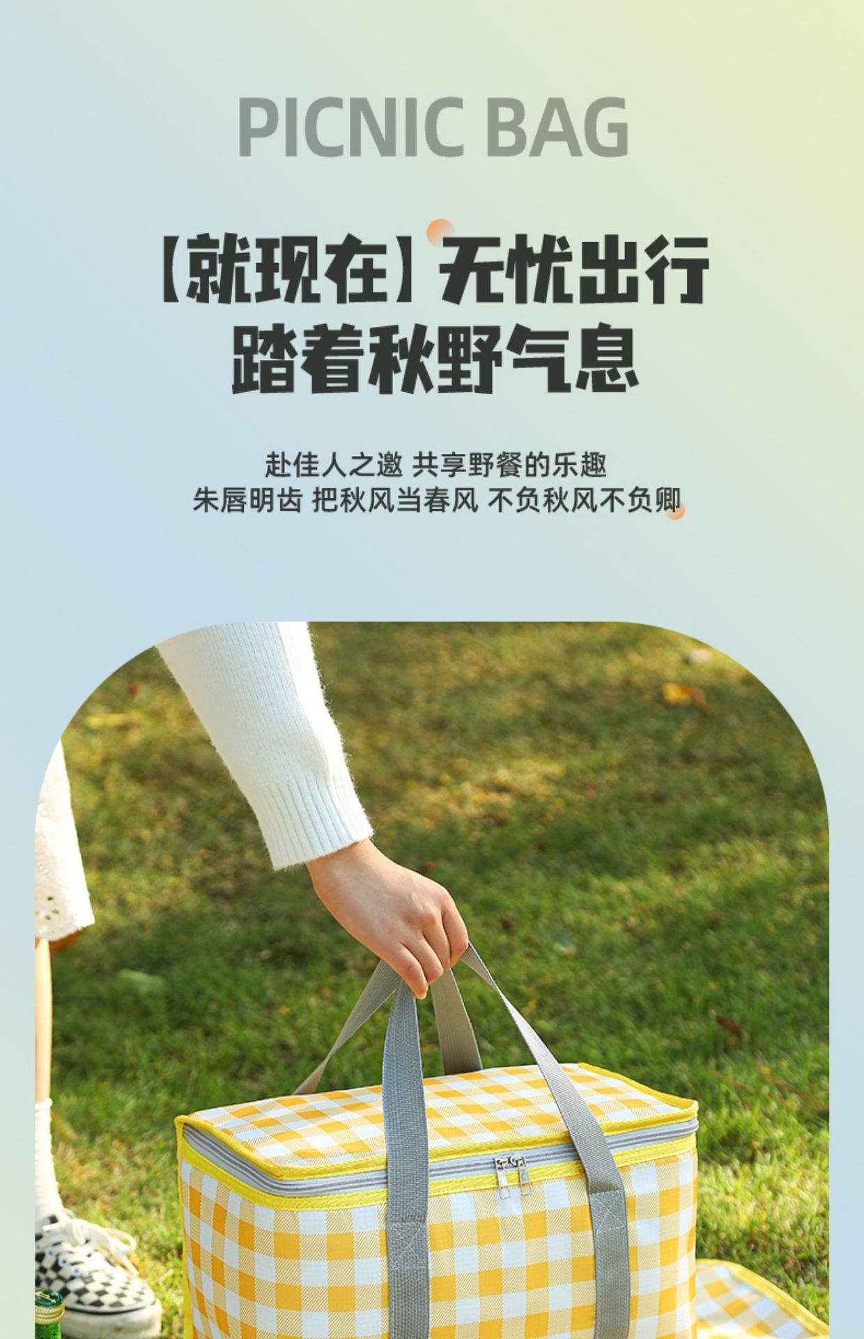 XH野餐篮郊游户外野炊保温露营可折叠加厚手提篮野餐网红收纳篮子