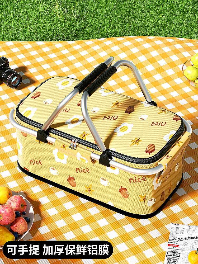 野餐篮郊游户外野炊保温露营可折叠加厚手提提篮野餐网红收纳篮子