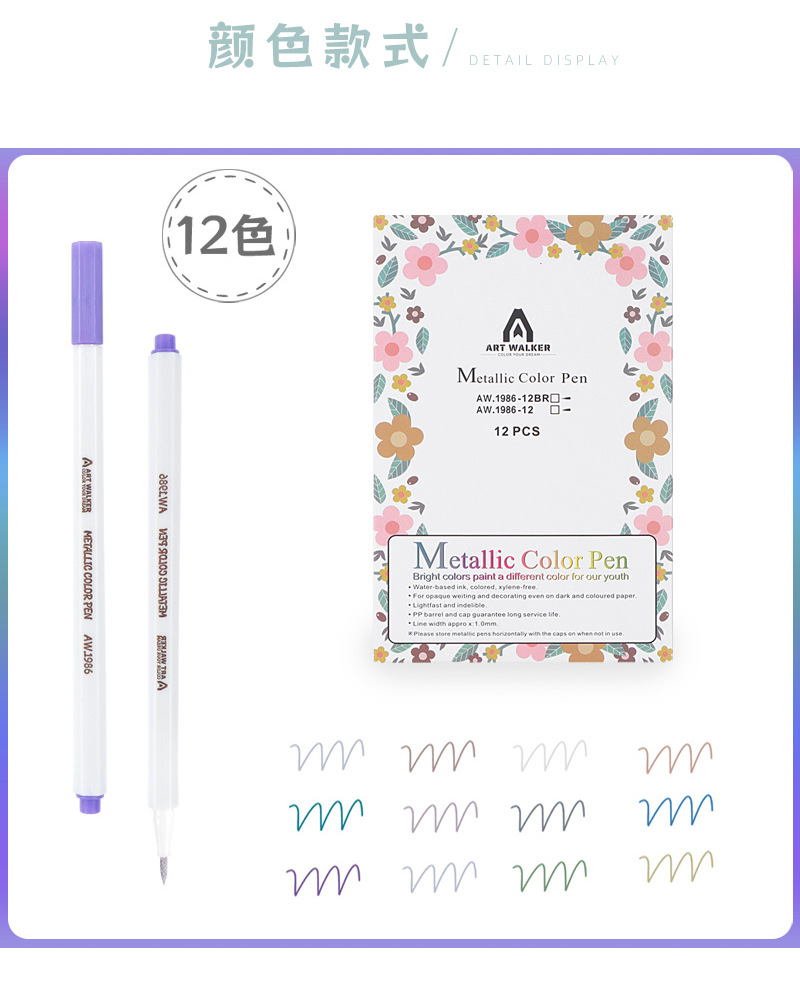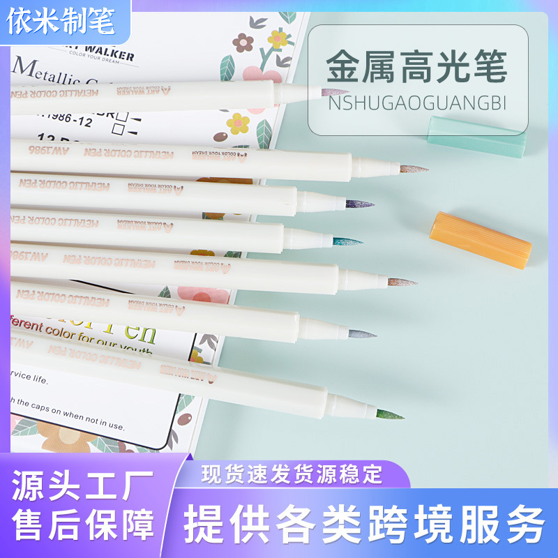 跨境热销软头金属笔彩色硬头水性记号笔丙烯马克笔涂鸦彩笔批发