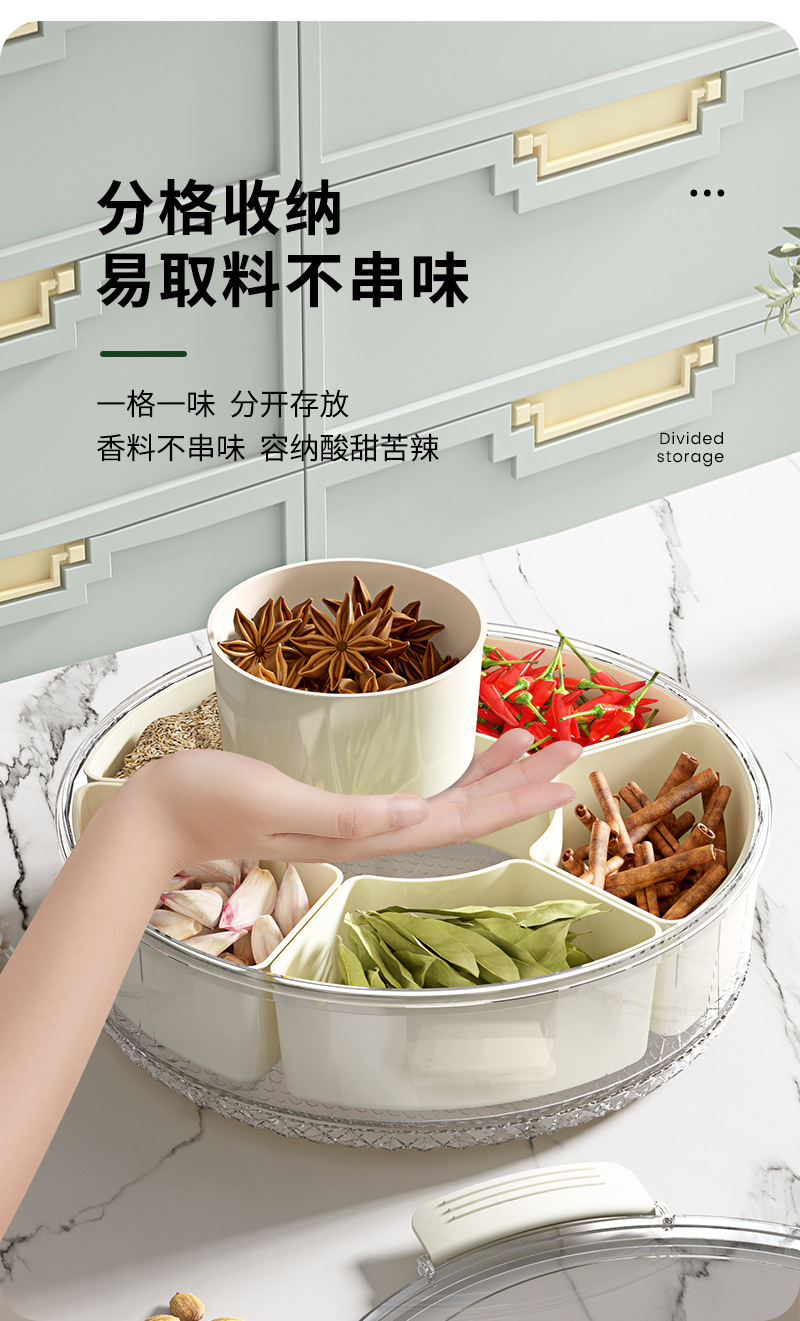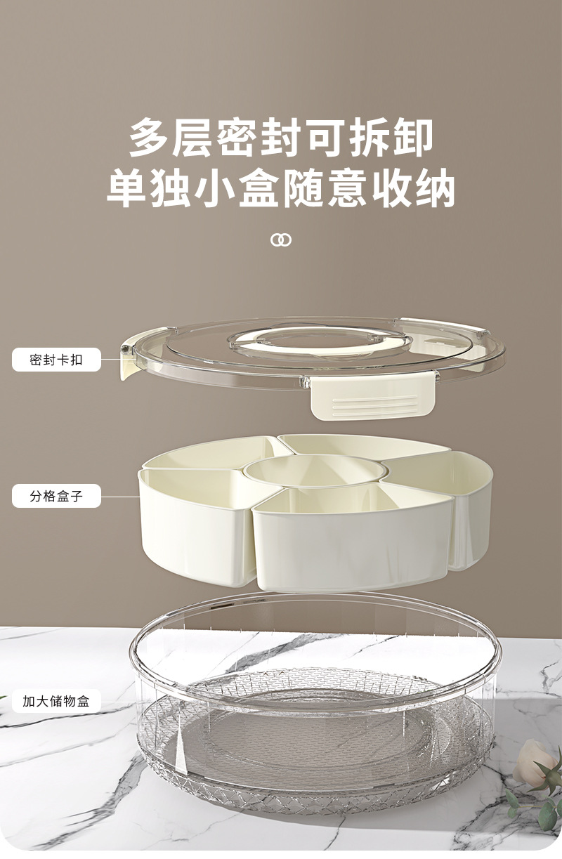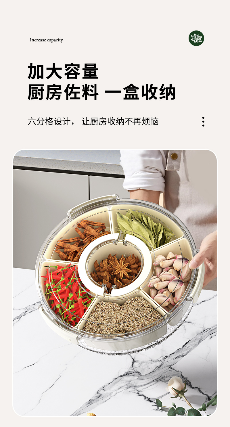 六分格带提手厨房密封香料收纳盒透明干果零食盘大容量冰箱保鲜盒
