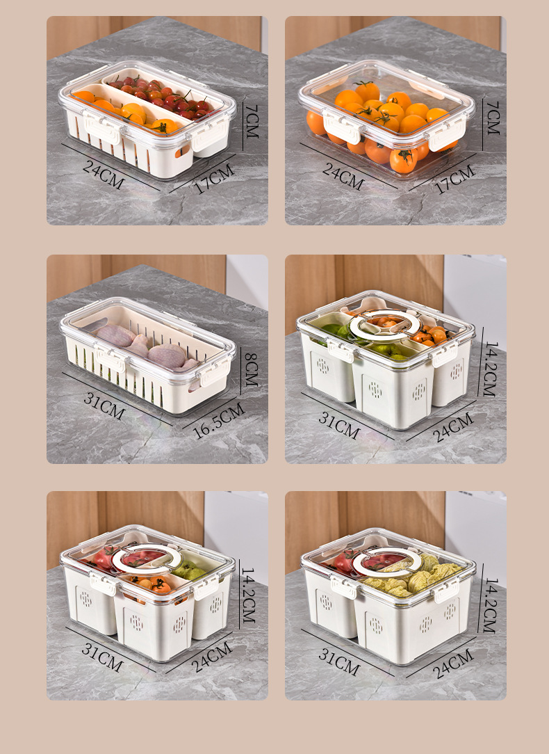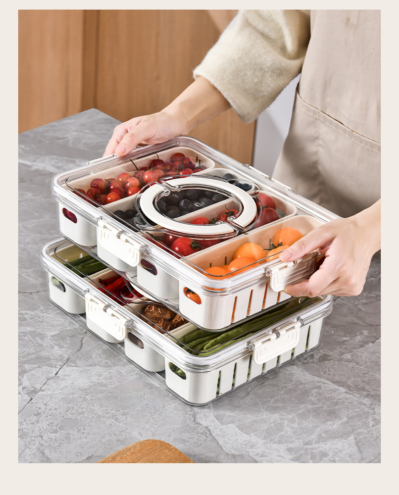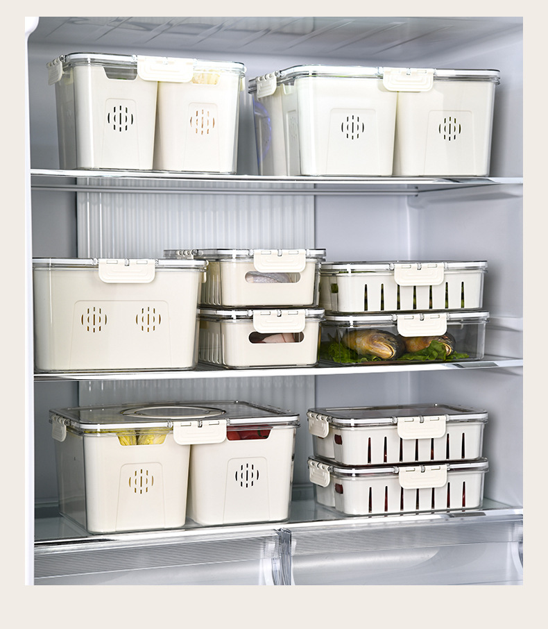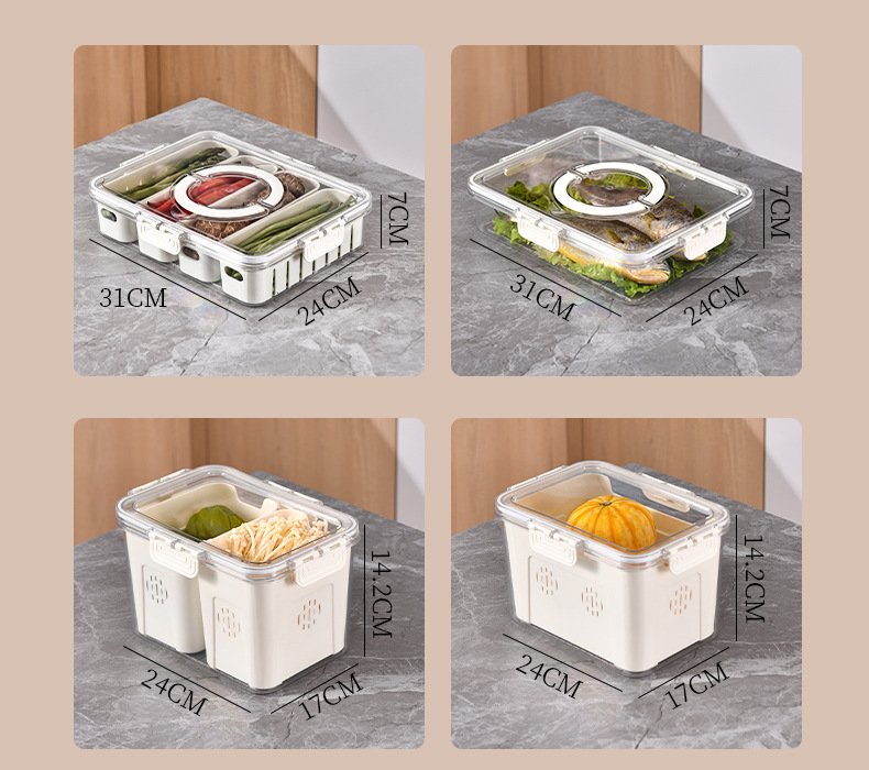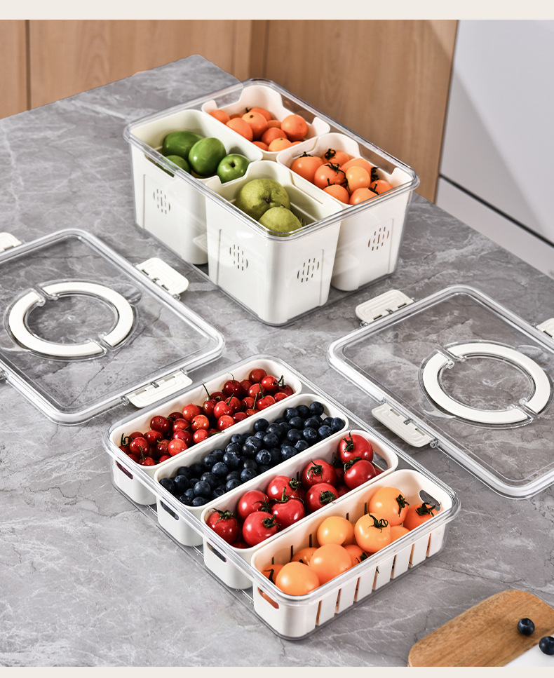 PET加厚保鲜收纳盒密封冰箱蔬果储物分装盒冷冻沥水带盖手提露营