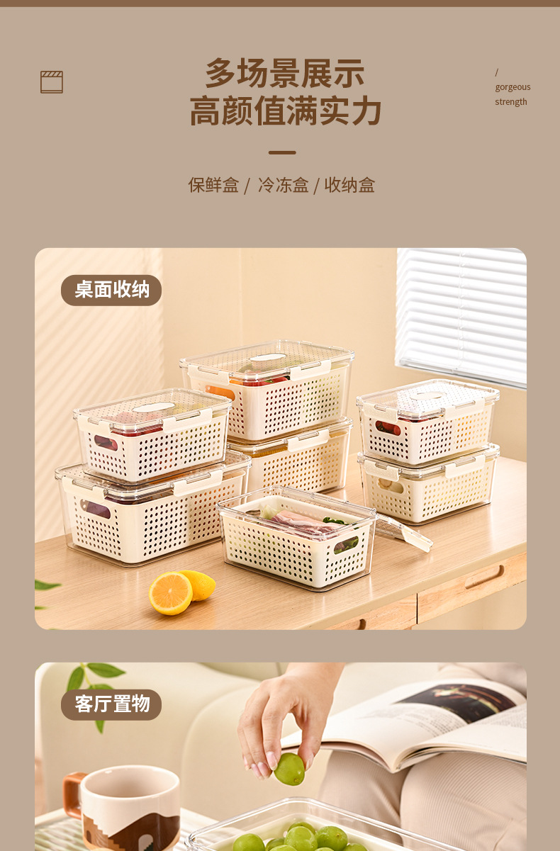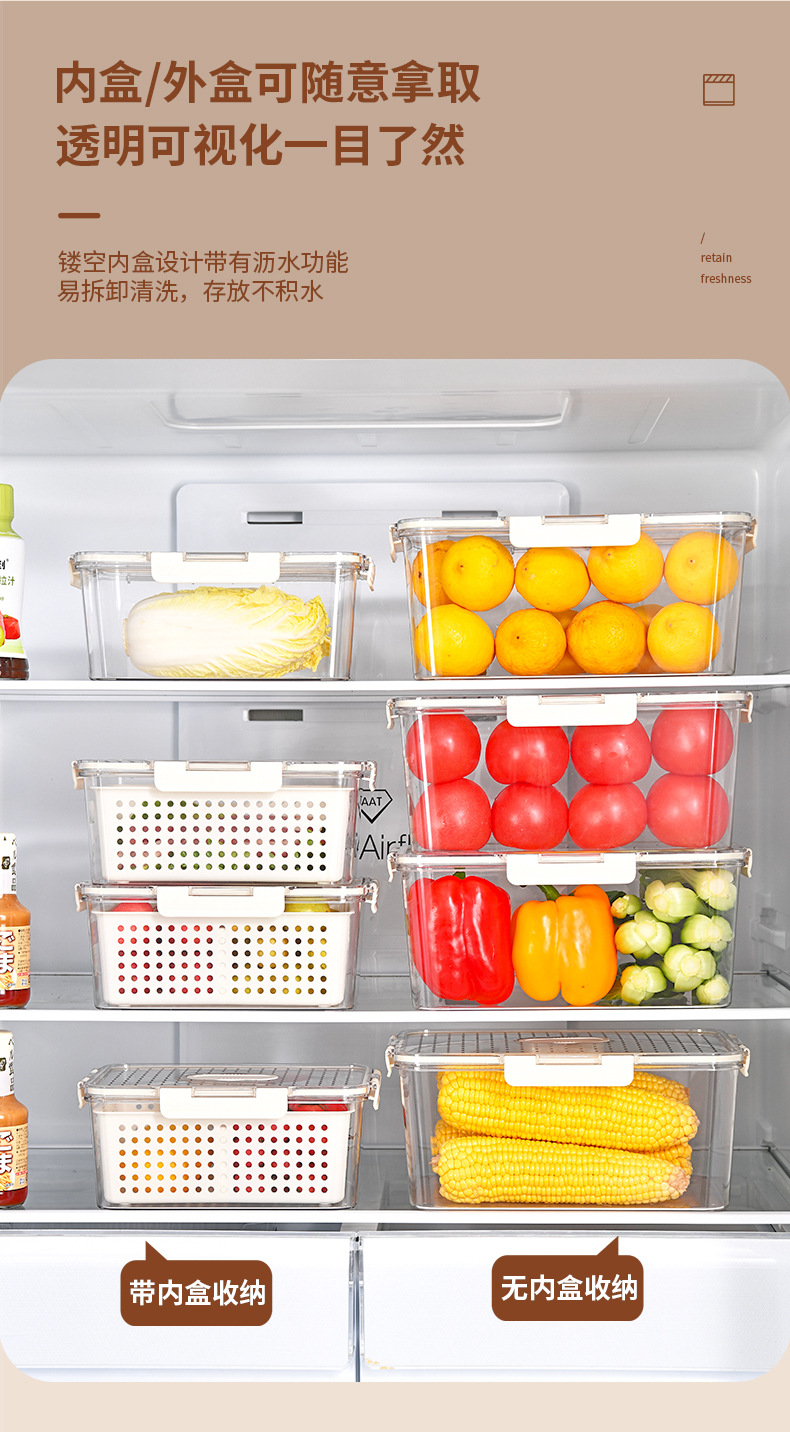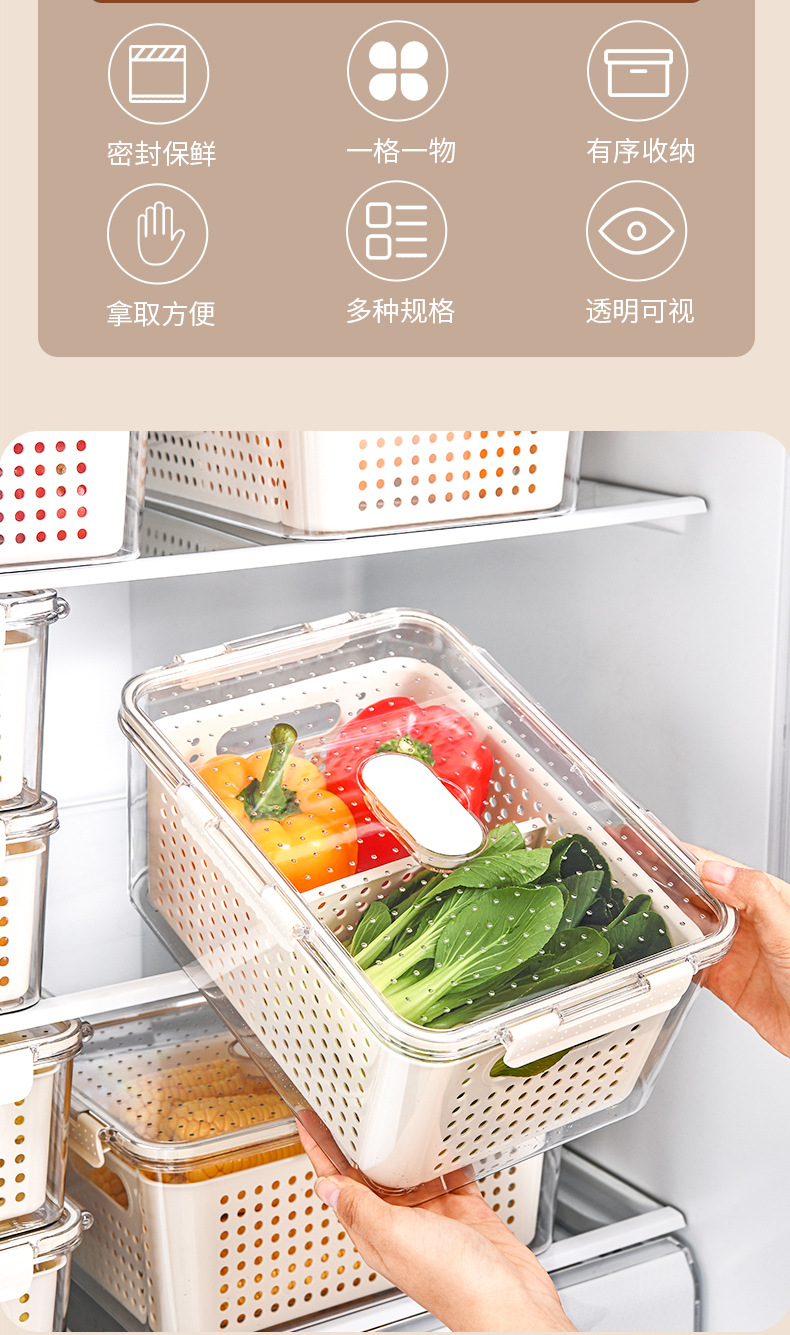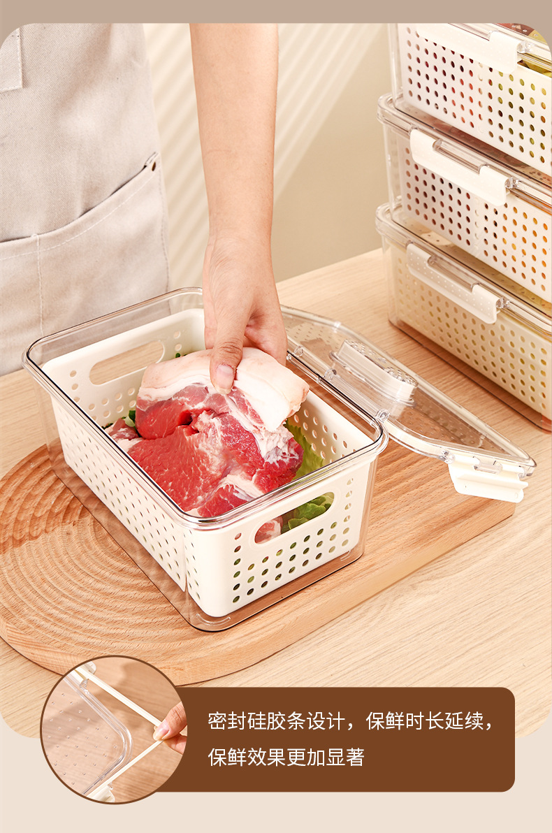 沥水透明长方形加厚塑料冰箱收纳盒可微波冷冻食品密封盒保鲜盒批