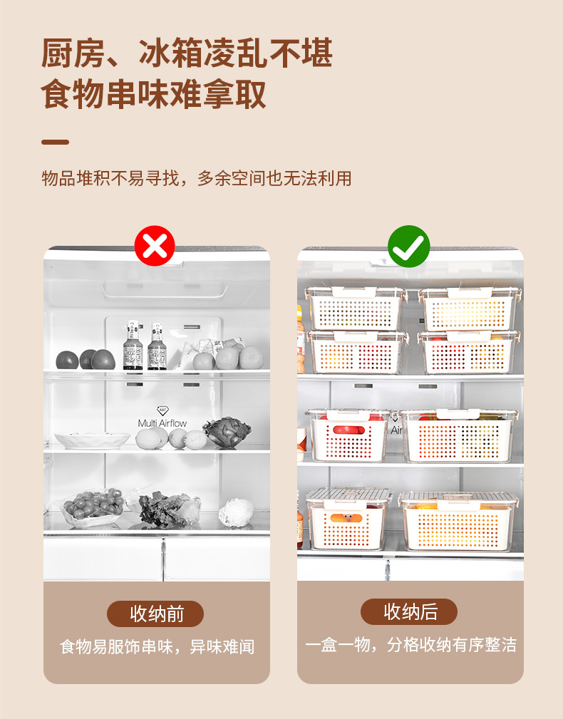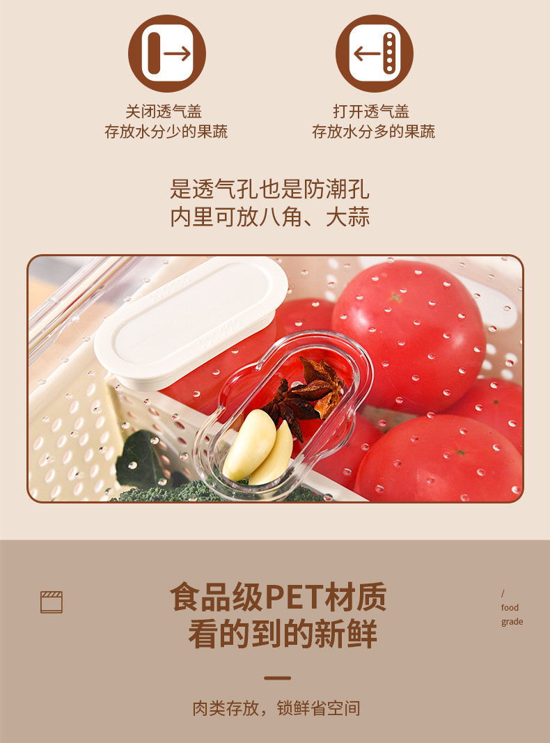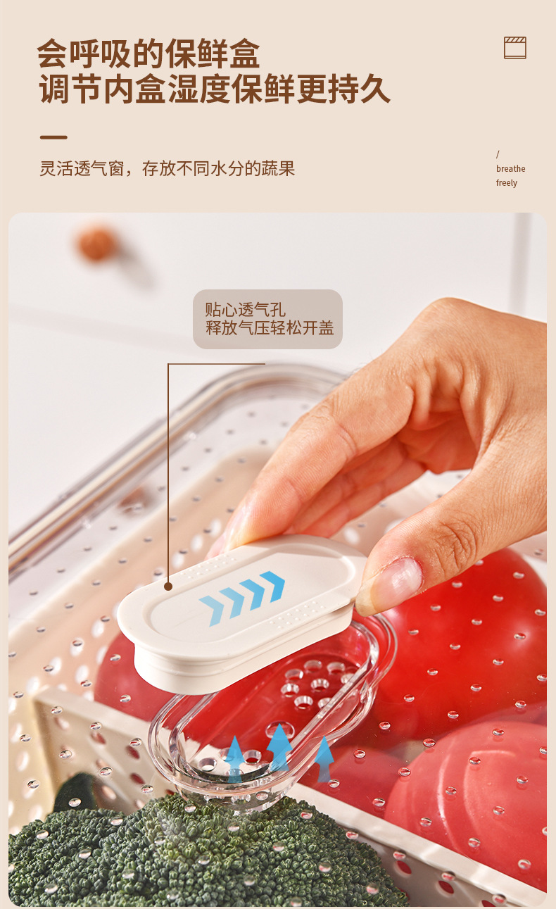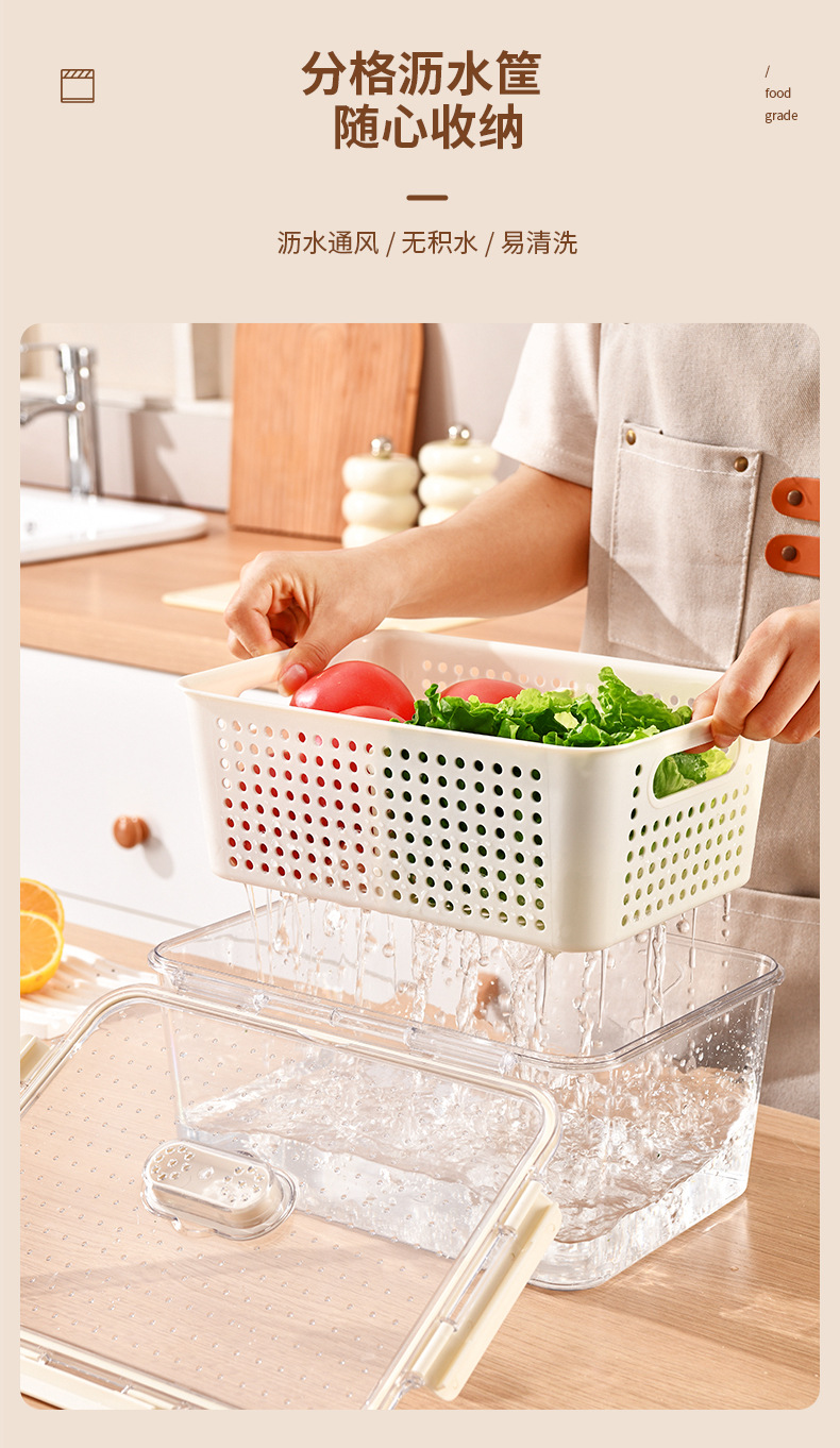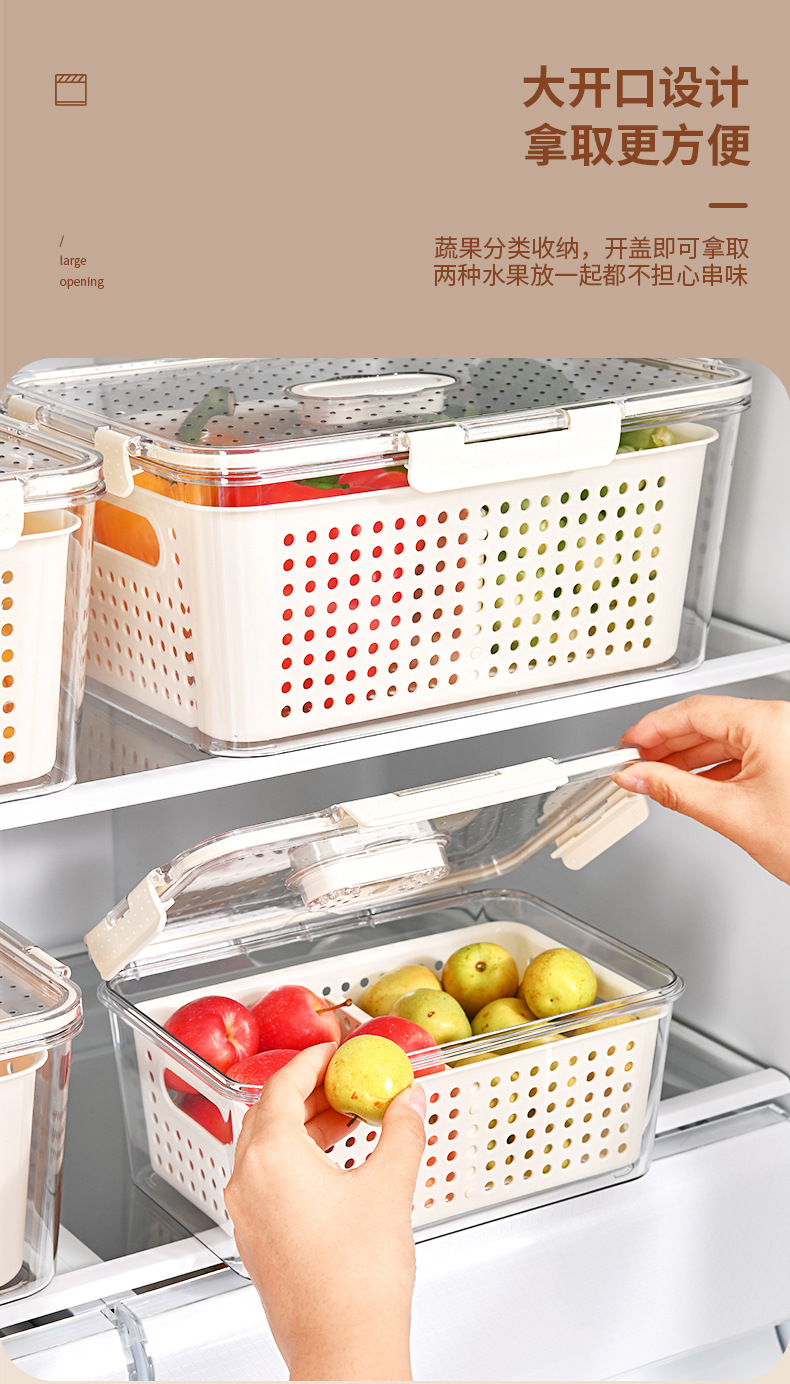 沥水透明长方形加厚塑料冰箱收纳盒可微波冷冻食品密封盒保鲜盒批
