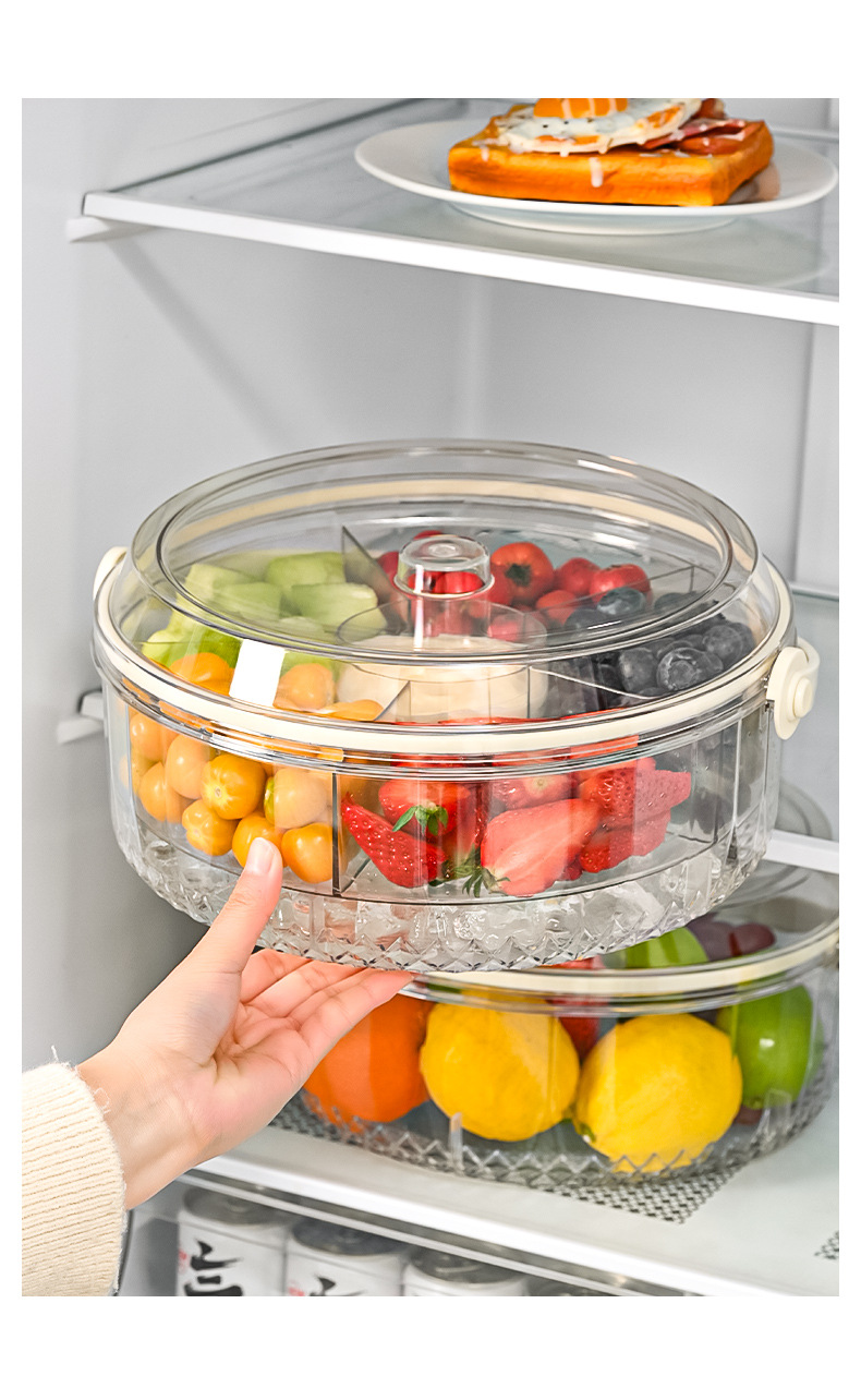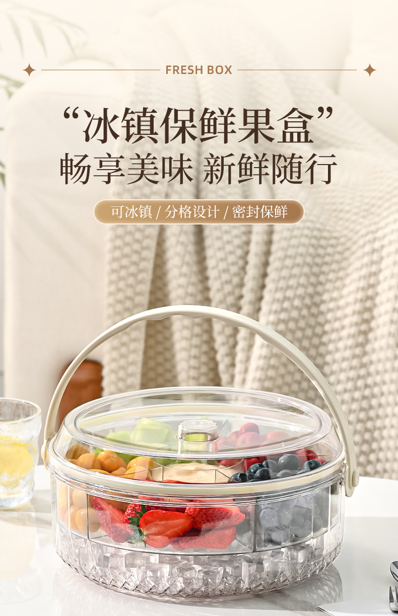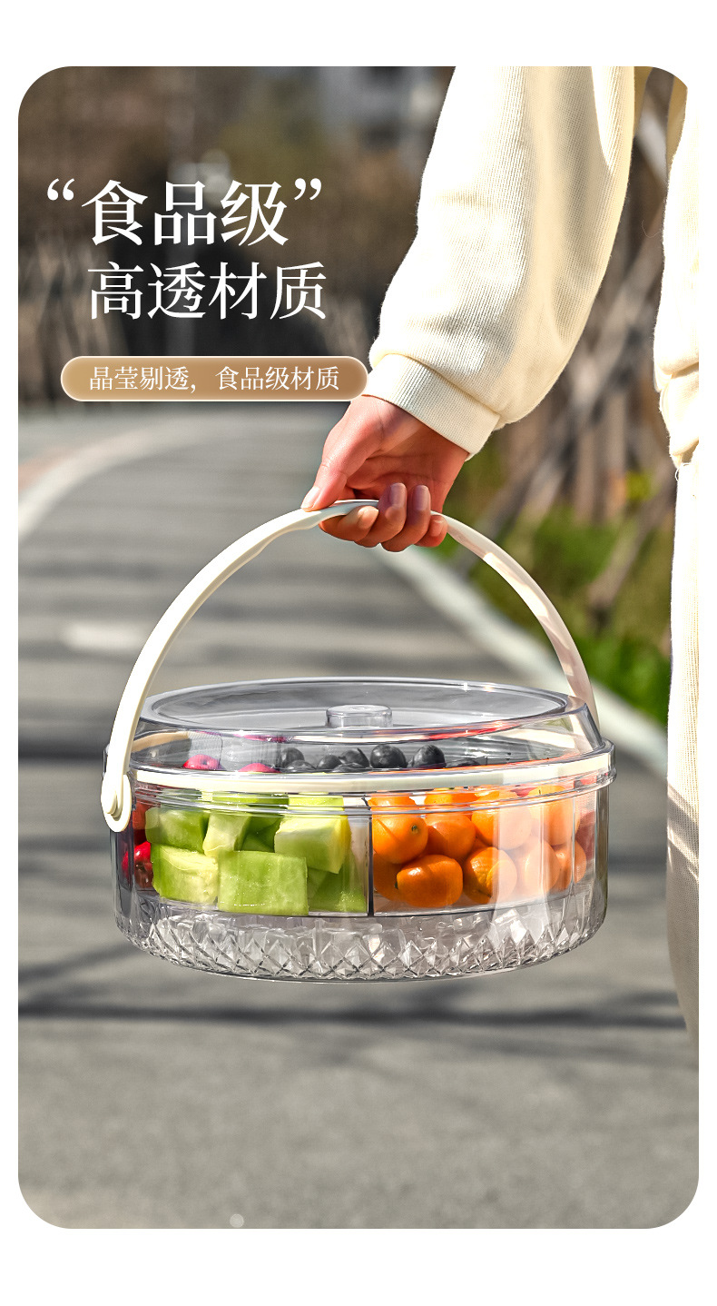 带提手五分格保鲜水果盘密封防潮干果盘便携式家用圆形带盖零食盒