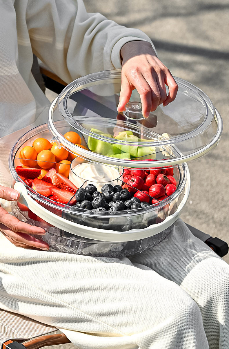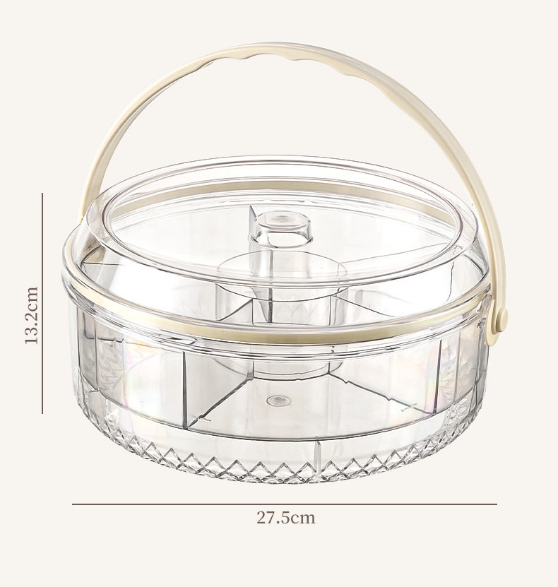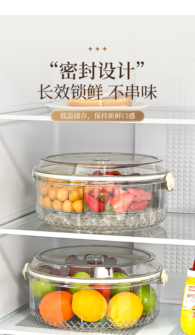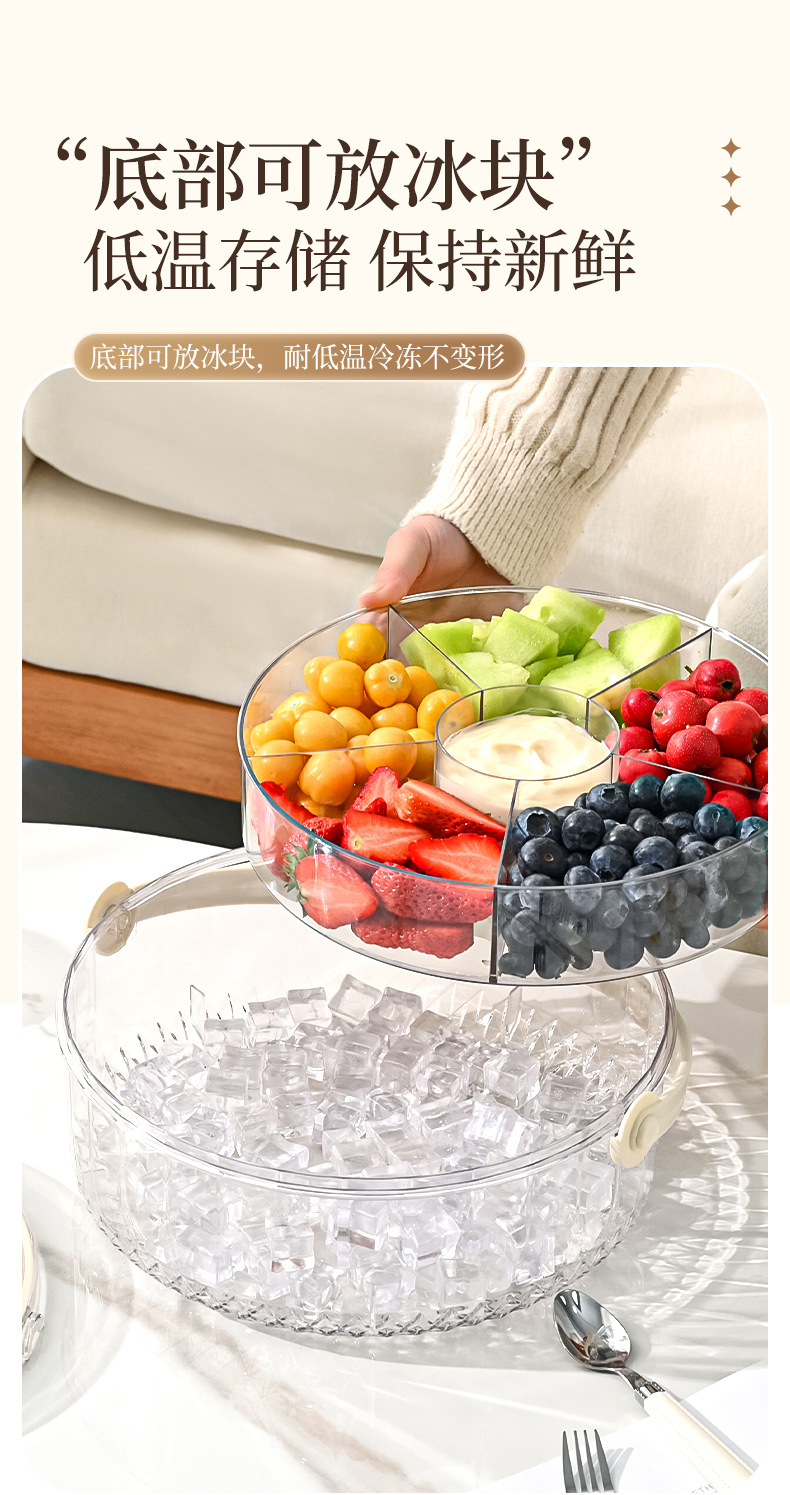带提手五分格保鲜水果盘密封防潮干果盘便携式家用圆形带盖零食盒