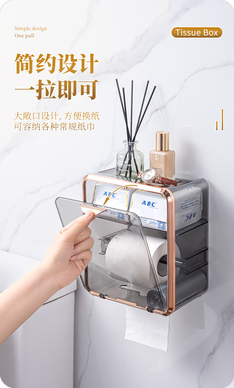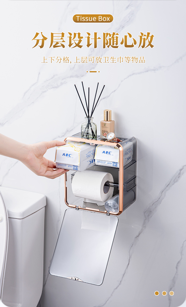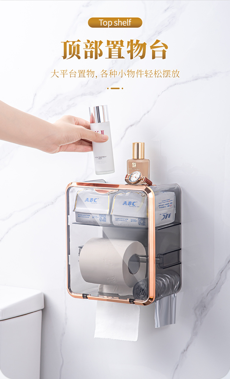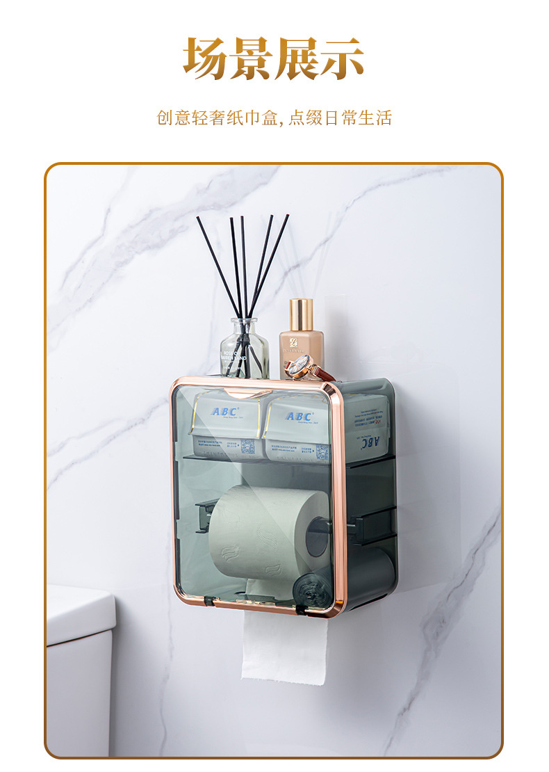 卫生间纸巾盒免打孔轻奢卷纸架收纳卷纸盒壁挂式抽纸盒厕所厕纸盒