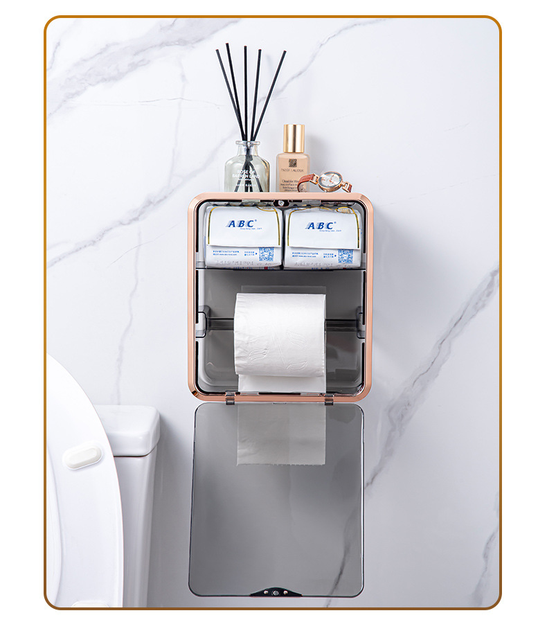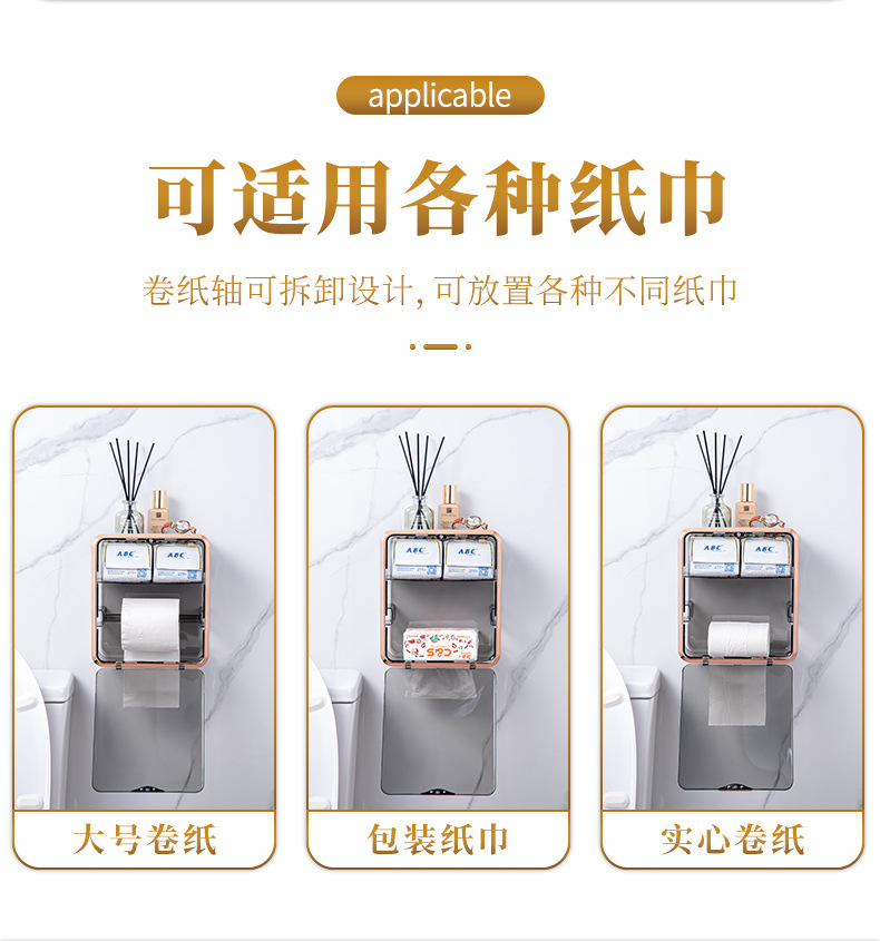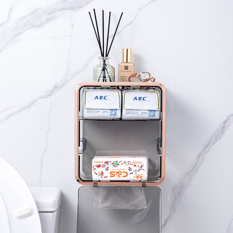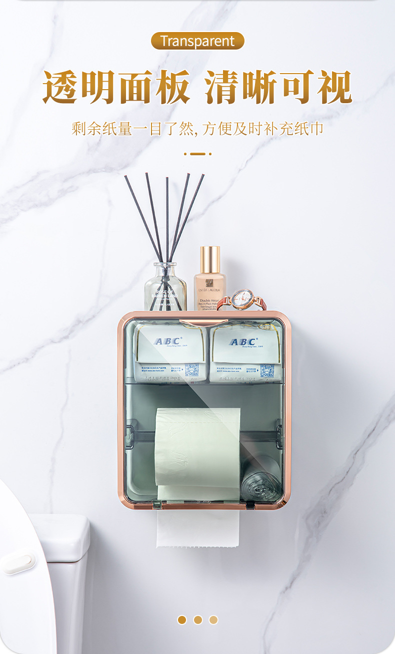 卫生间纸巾盒免打孔轻奢卷纸架收纳卷纸盒壁挂式抽纸盒厕所厕纸盒