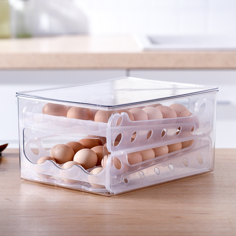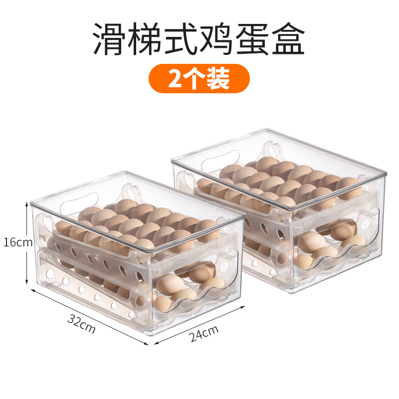 鸡蛋收纳盒塑料便携透明滑梯式多格鸡蛋盒厨房冰箱保鲜滚蛋鸡蛋盒