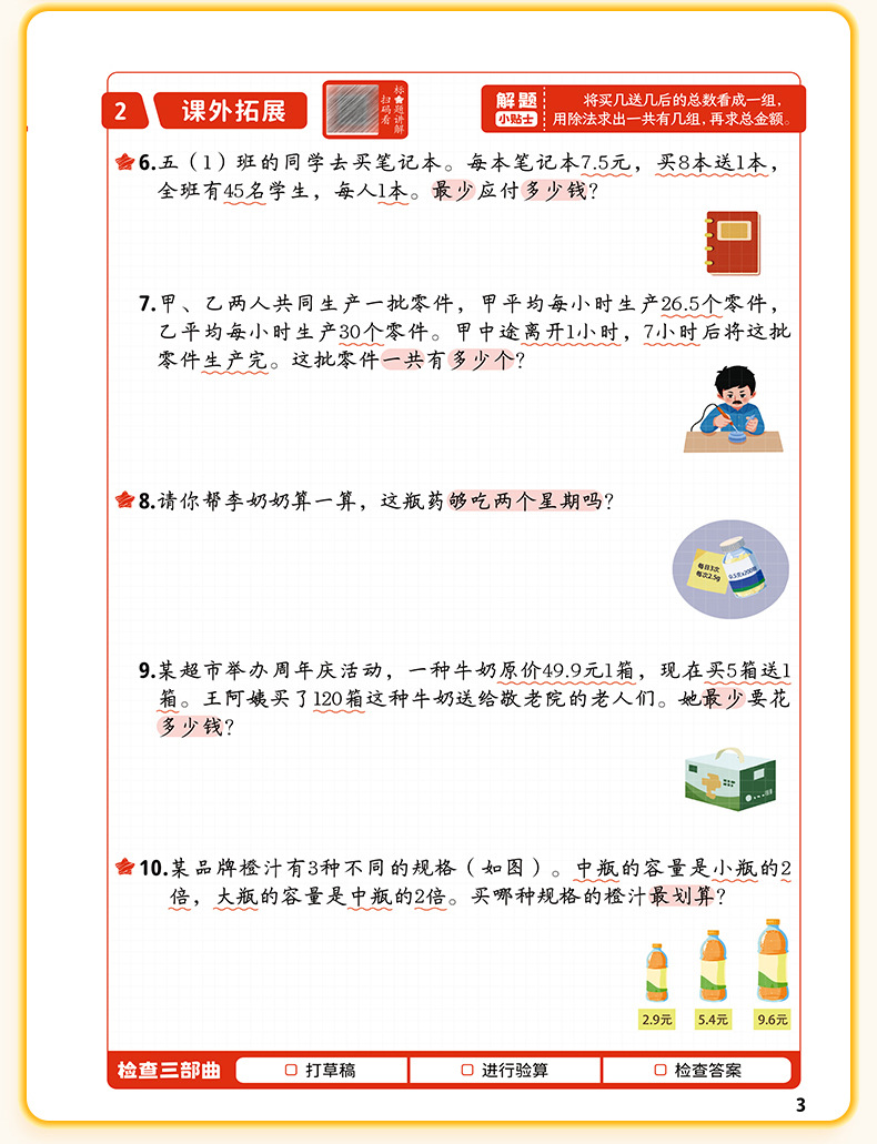 每天10道应用题强化训练数学一二三四五六年级上下册每日一练书籍