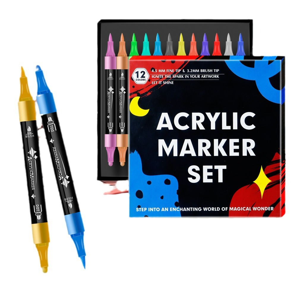 双头丙烯马克笔儿童绘画涂鸦笔软头硬头手账笔水性彩色颜料画笔