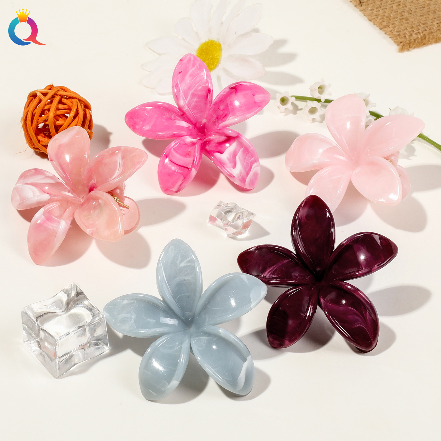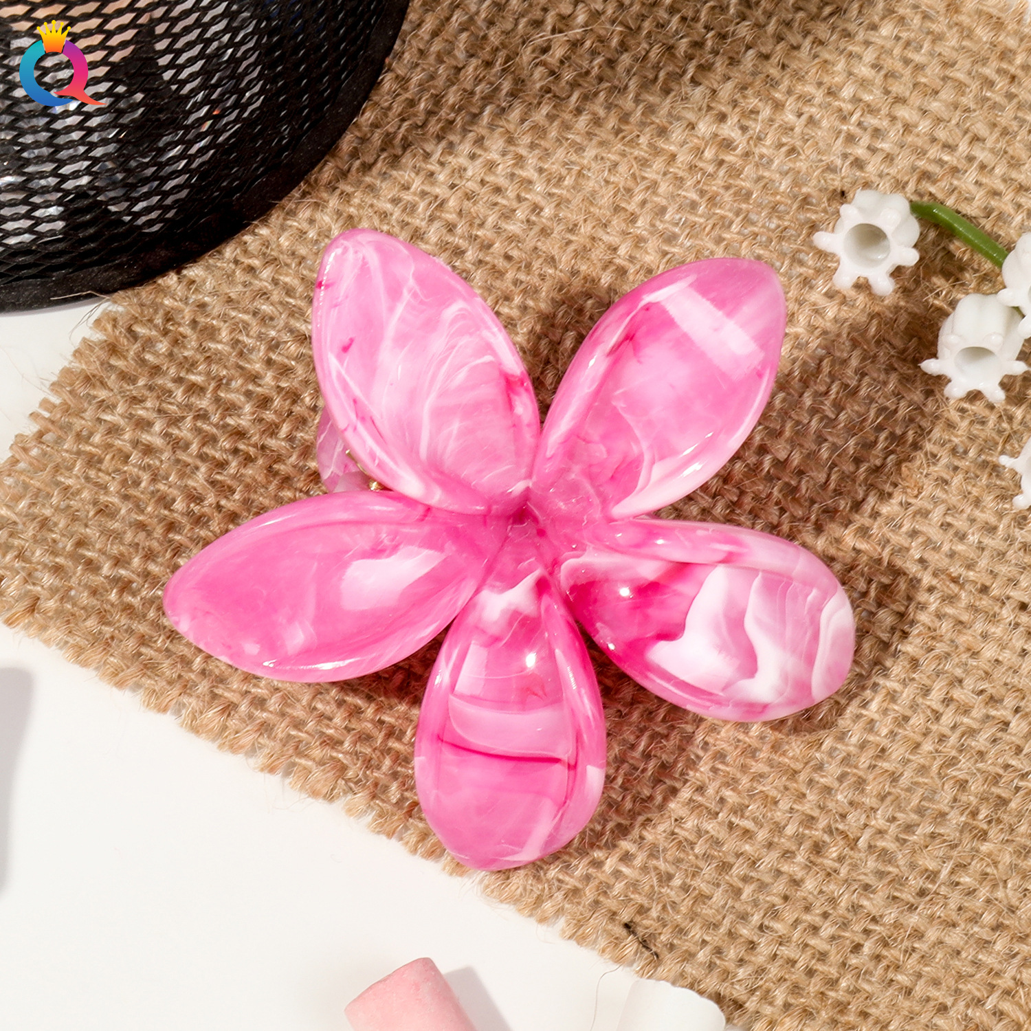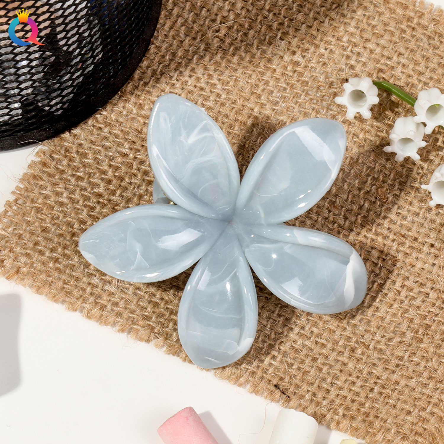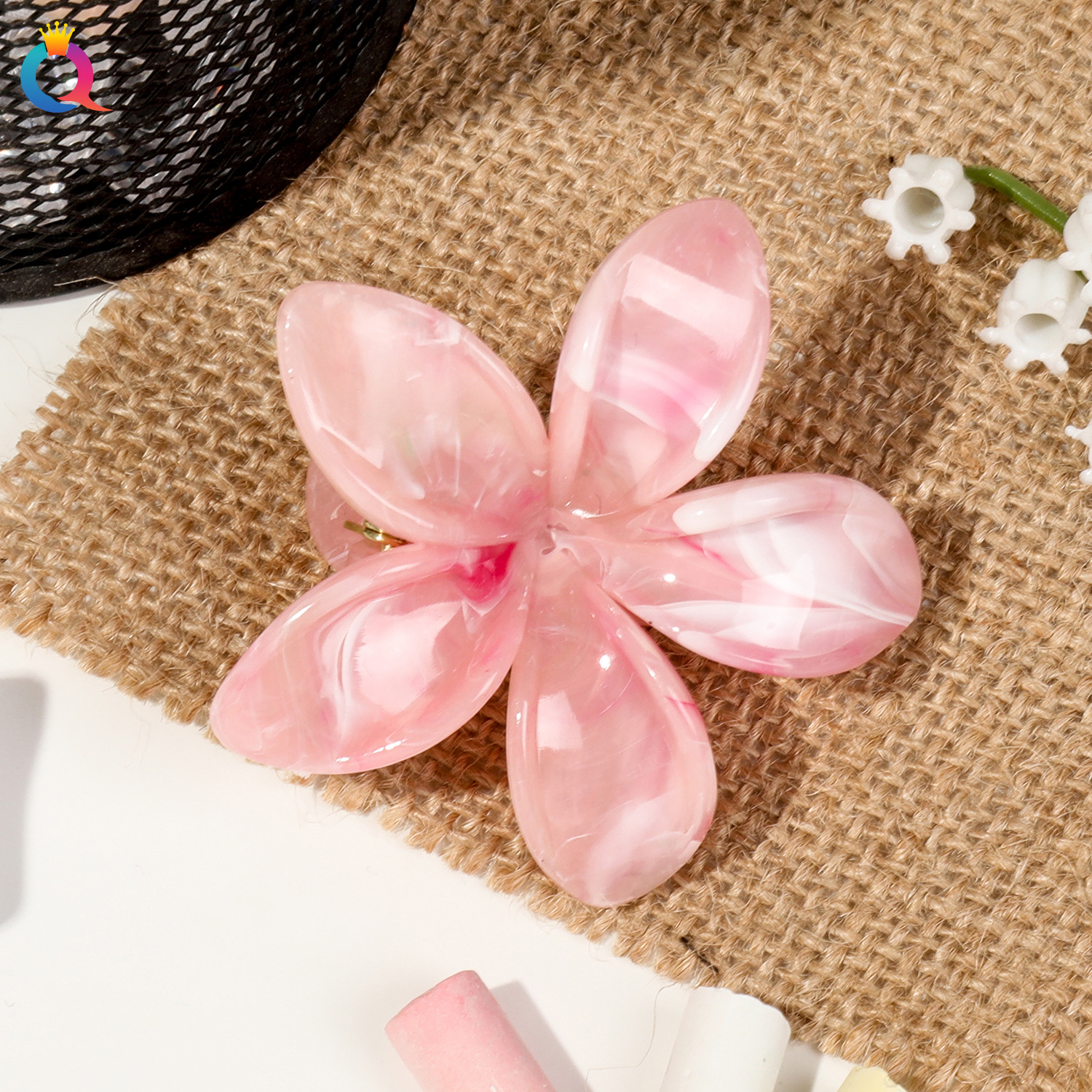 跨境大理石纹鸡蛋花发夹盘发花朵抓夹女鸭嘴夹发饰批发