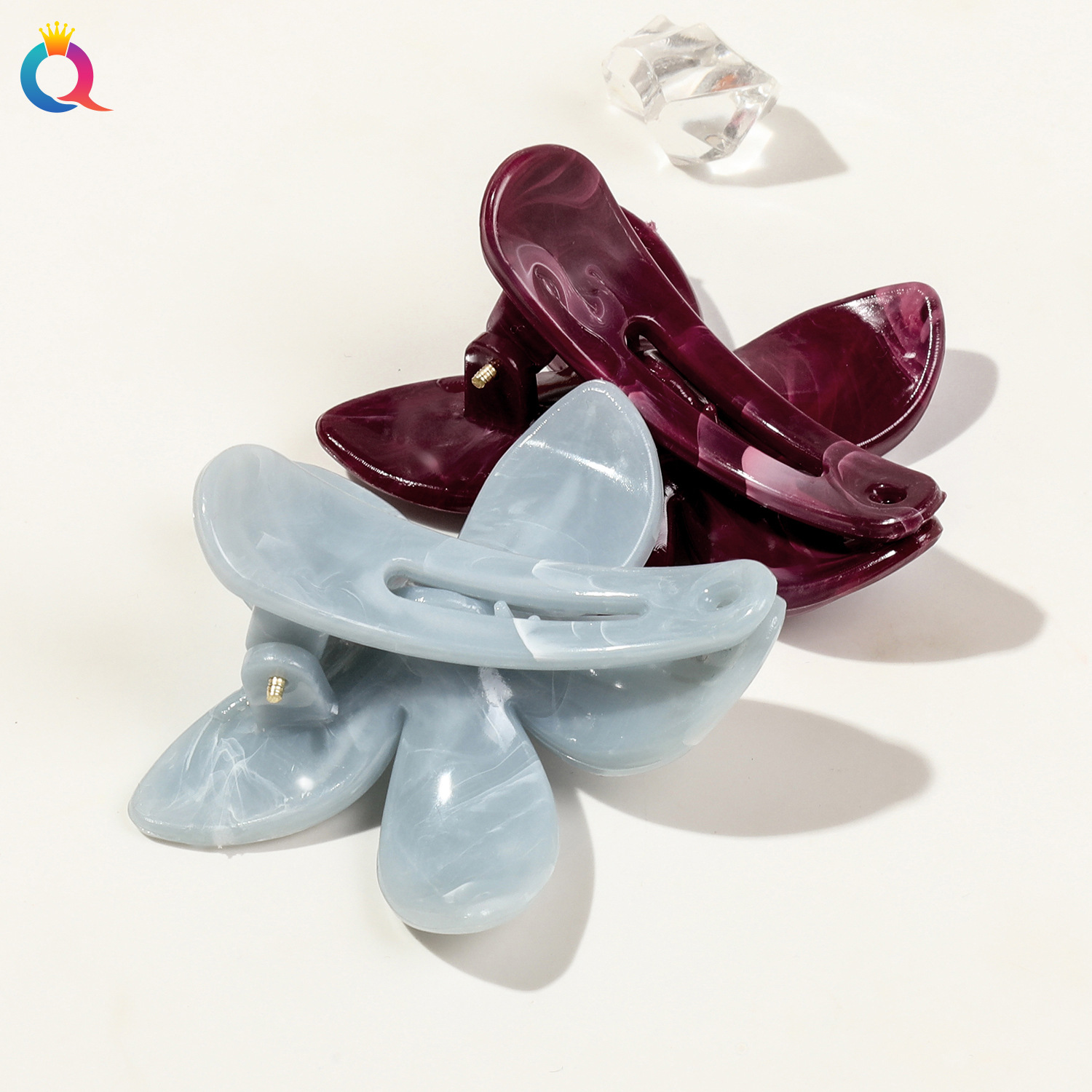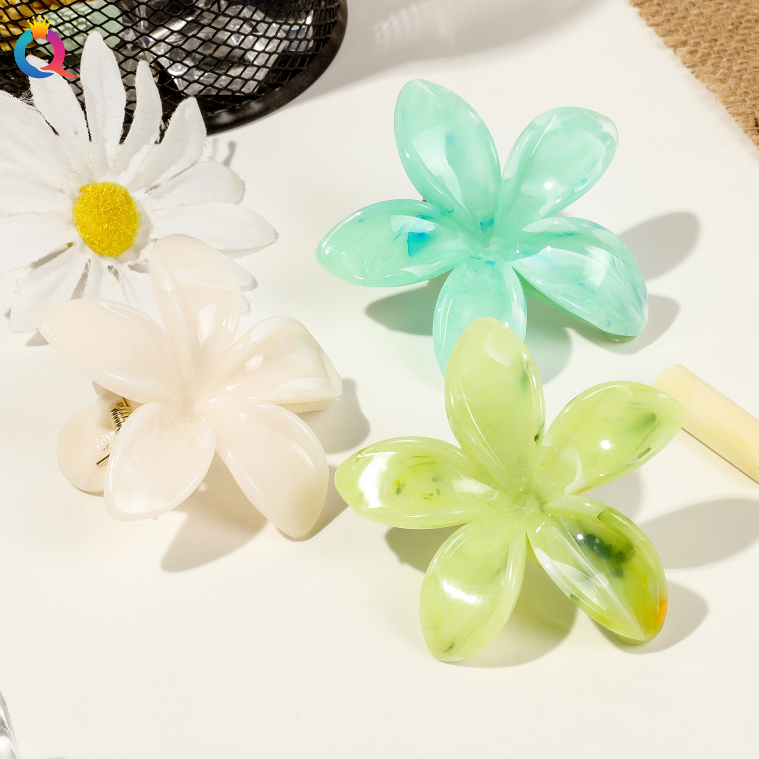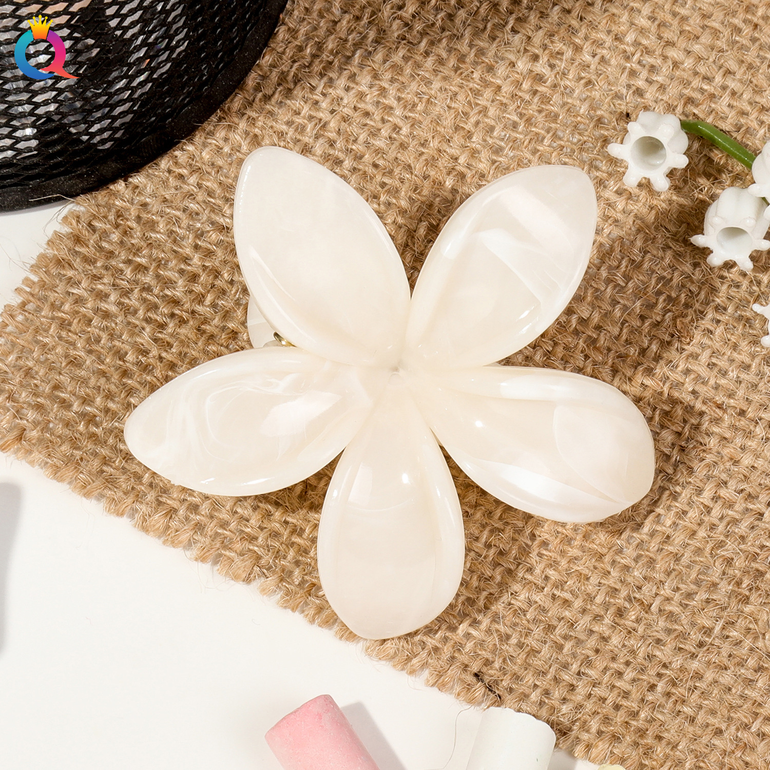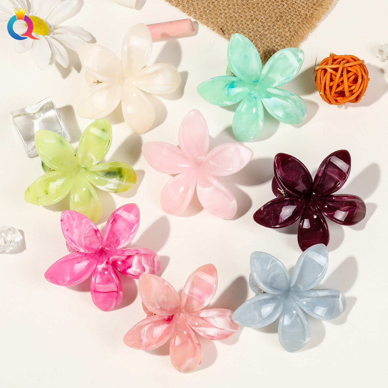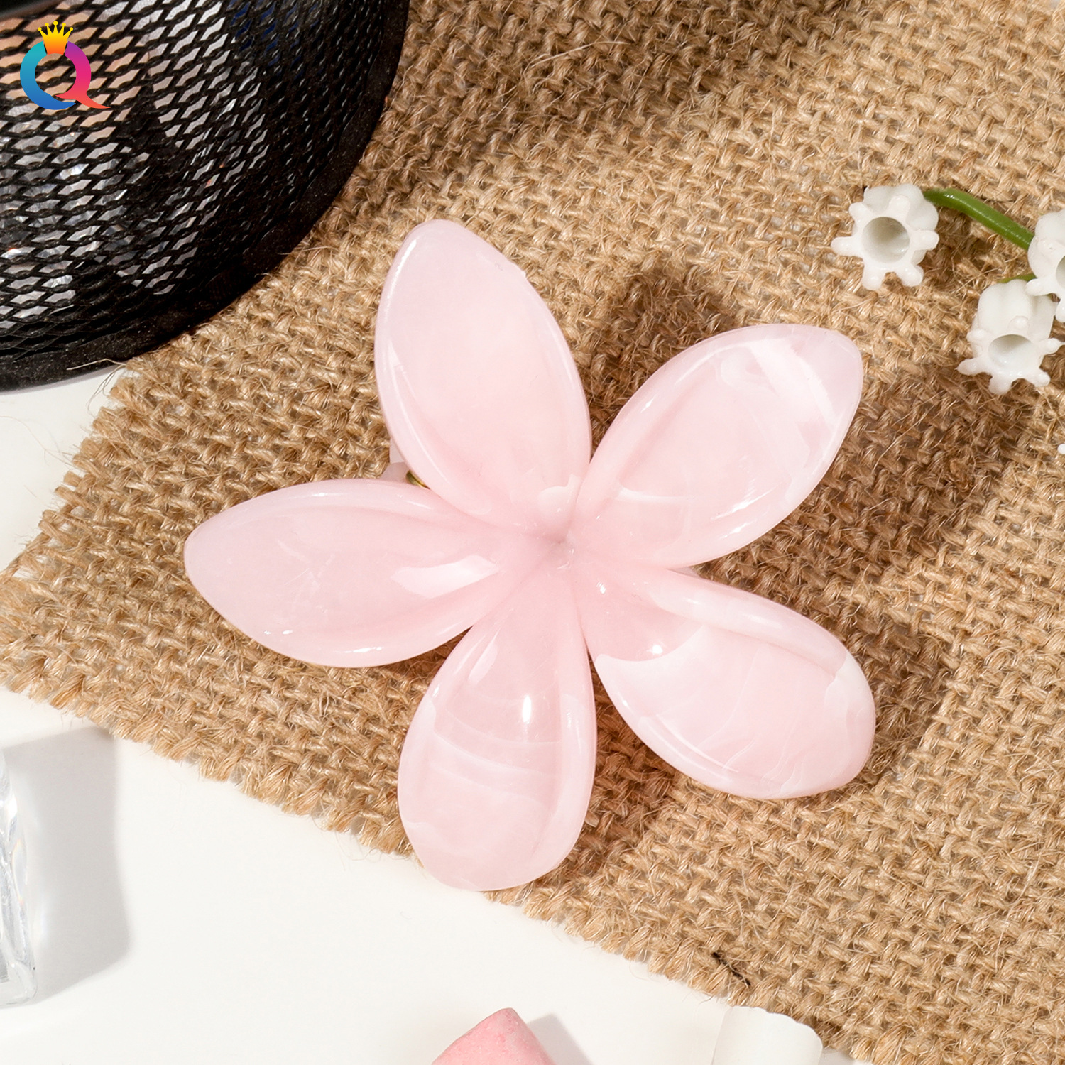 跨境大理石纹鸡蛋花发夹盘发花朵抓夹女鸭嘴夹发饰批发