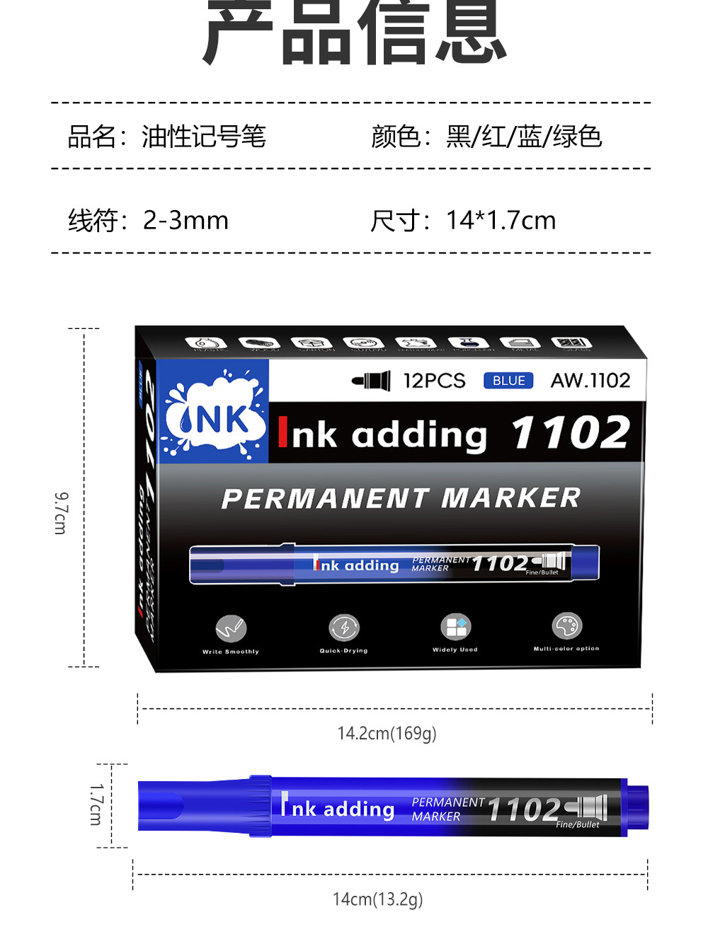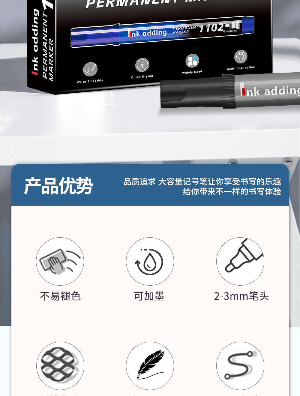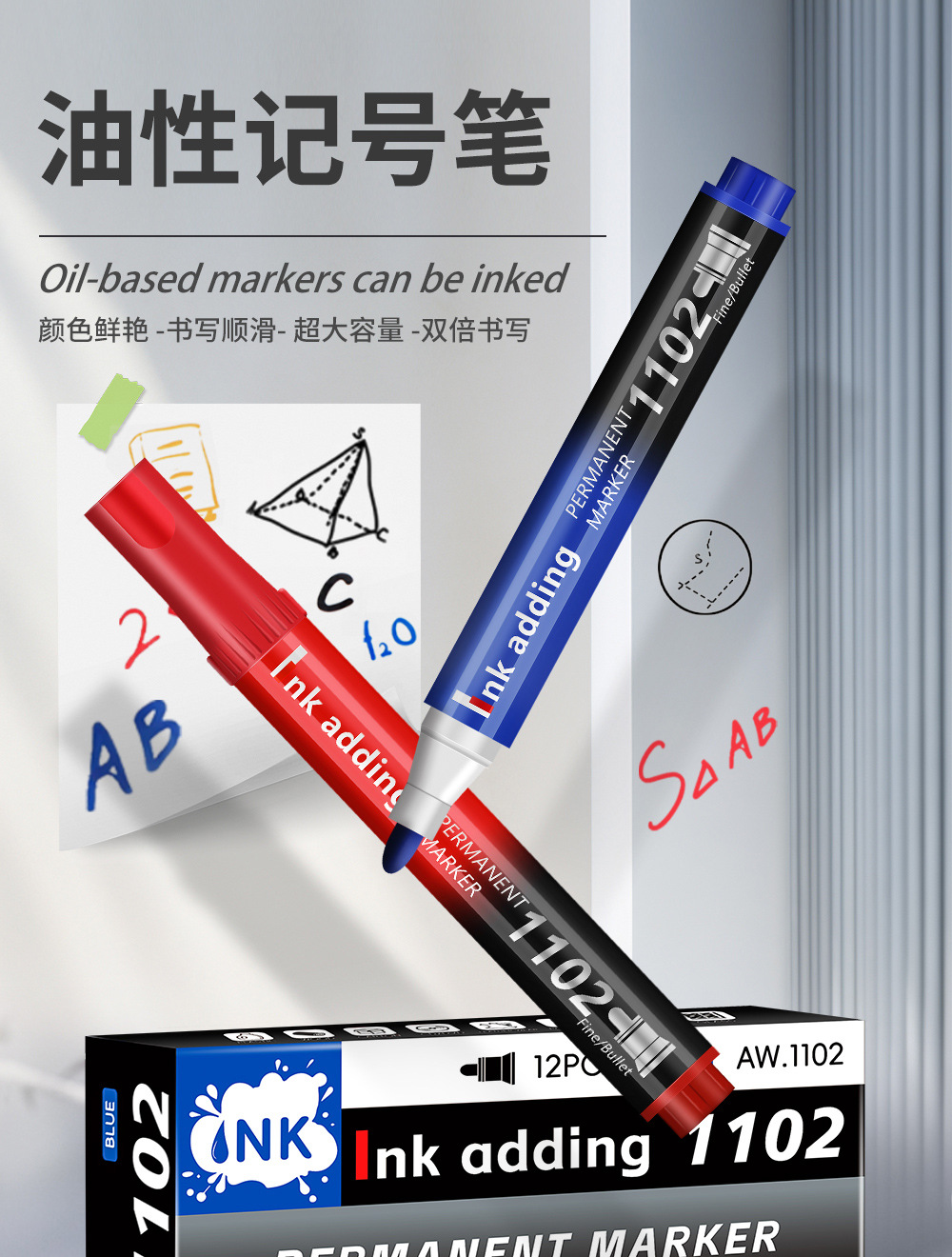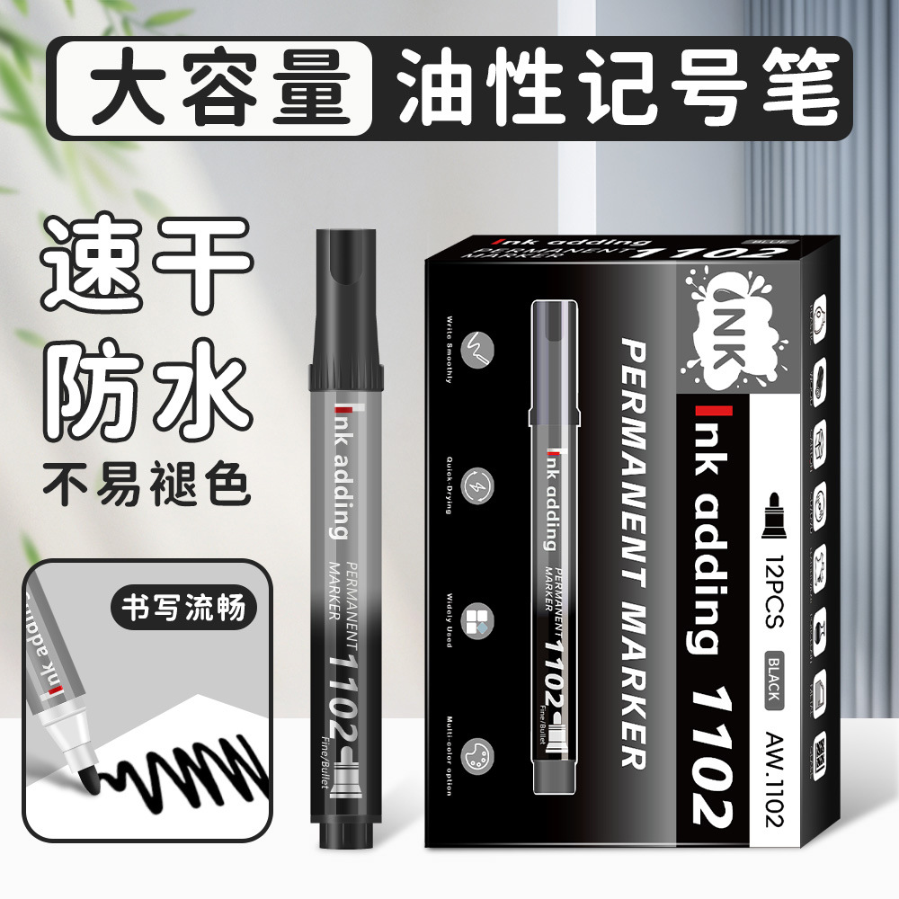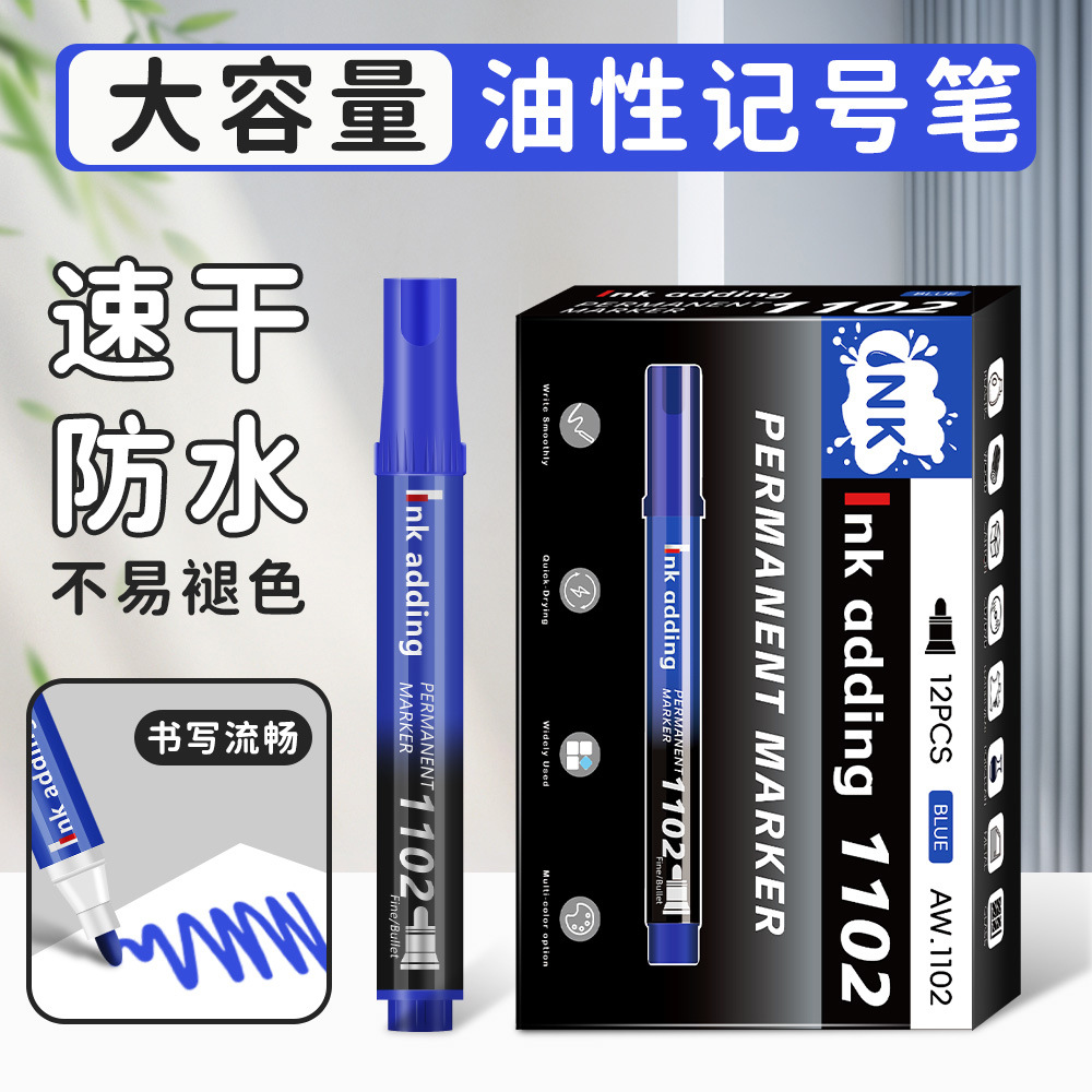跨境不可擦记号笔大容量油性防水速干笔快递涂鸦笔粗头记号笔批发