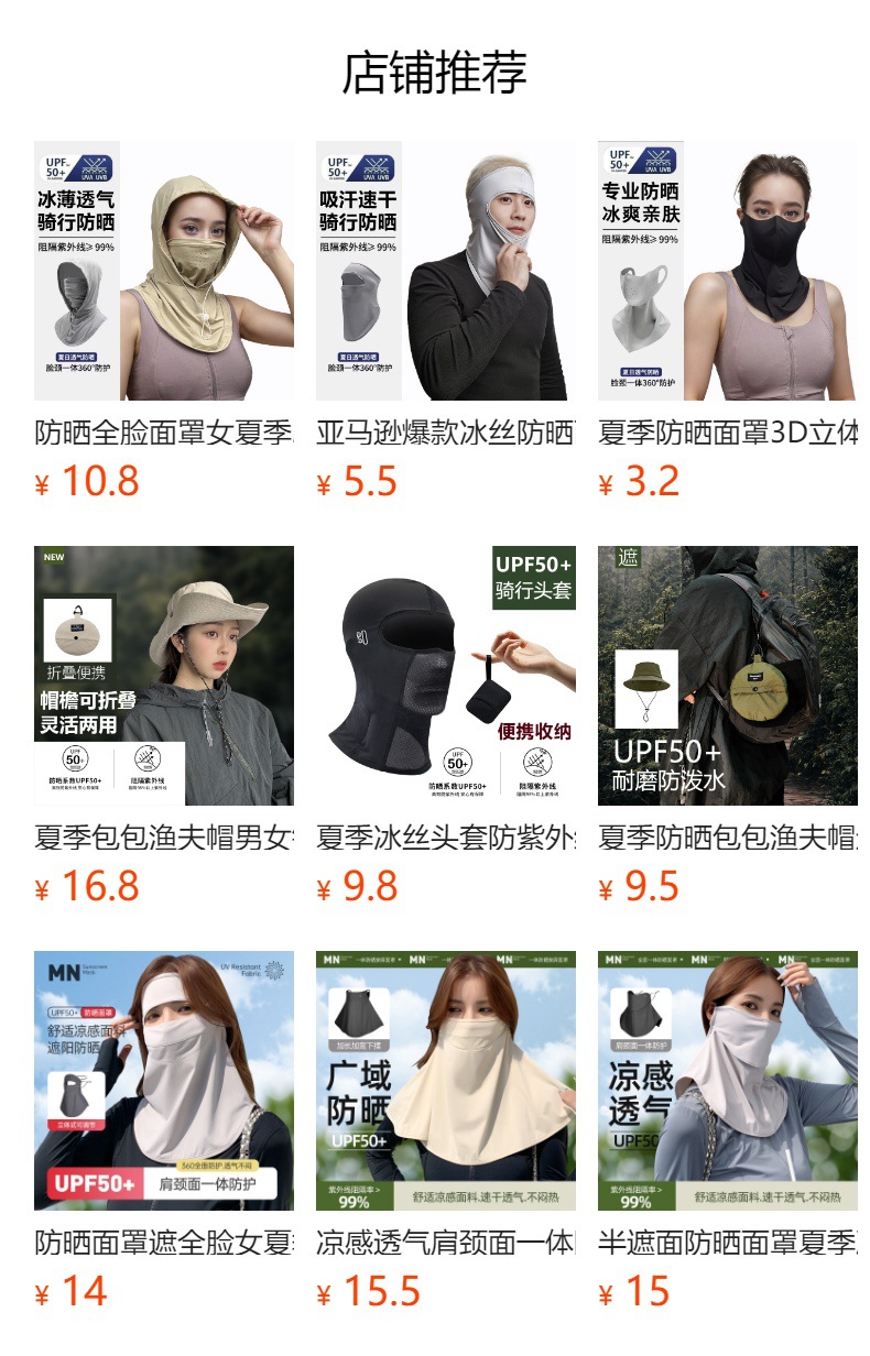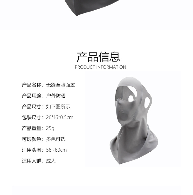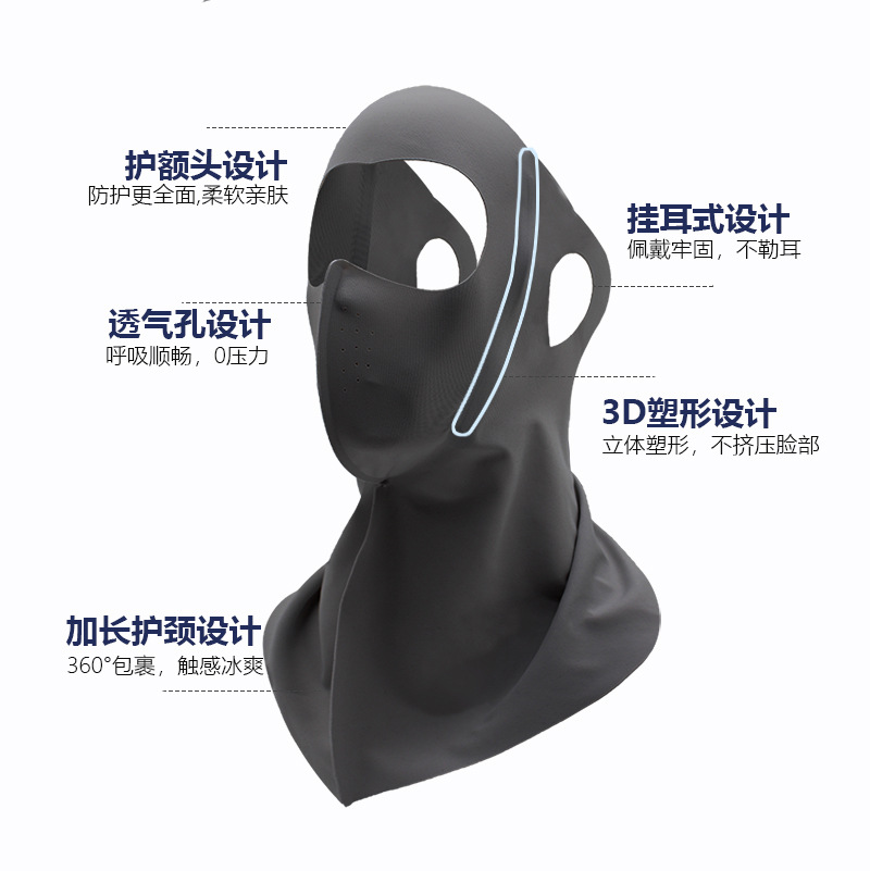夏季新款全脸防晒面纱口罩透气护颈额头一体无痕防晒防紫外线面罩