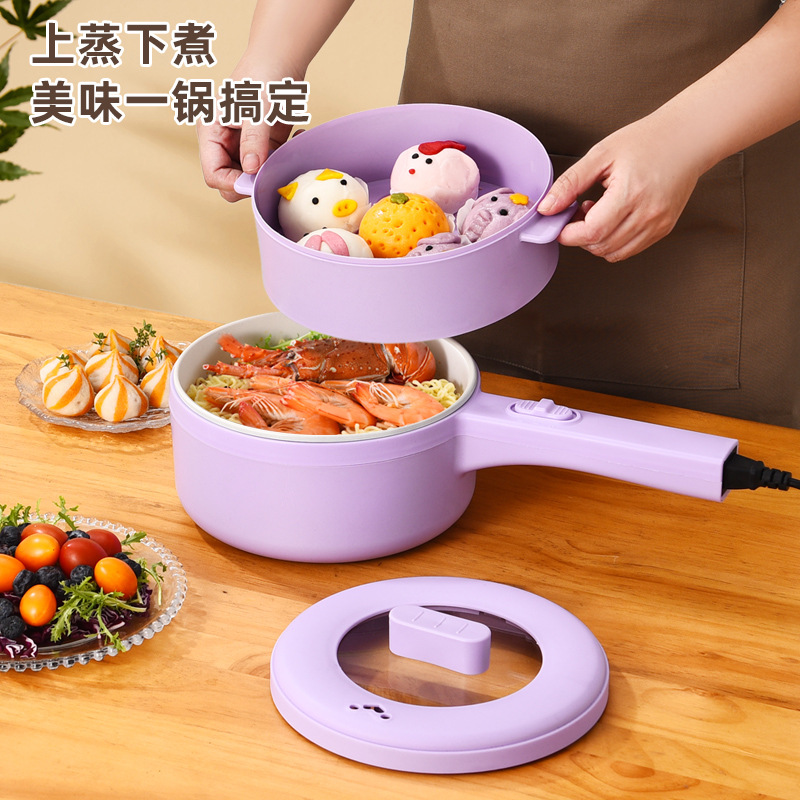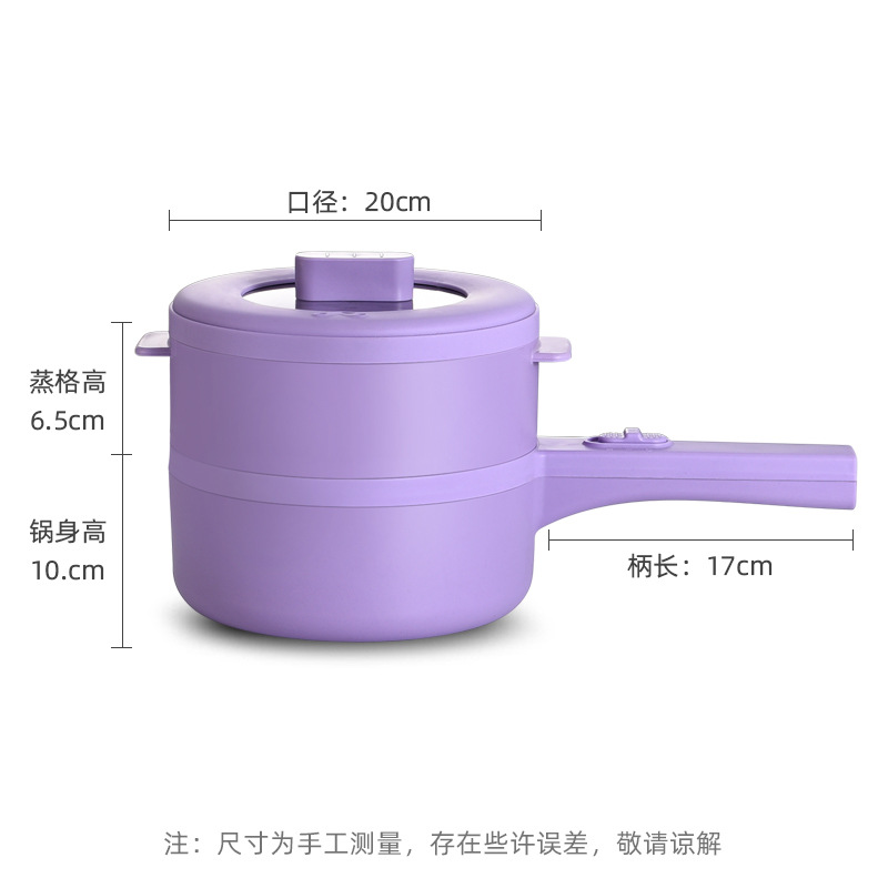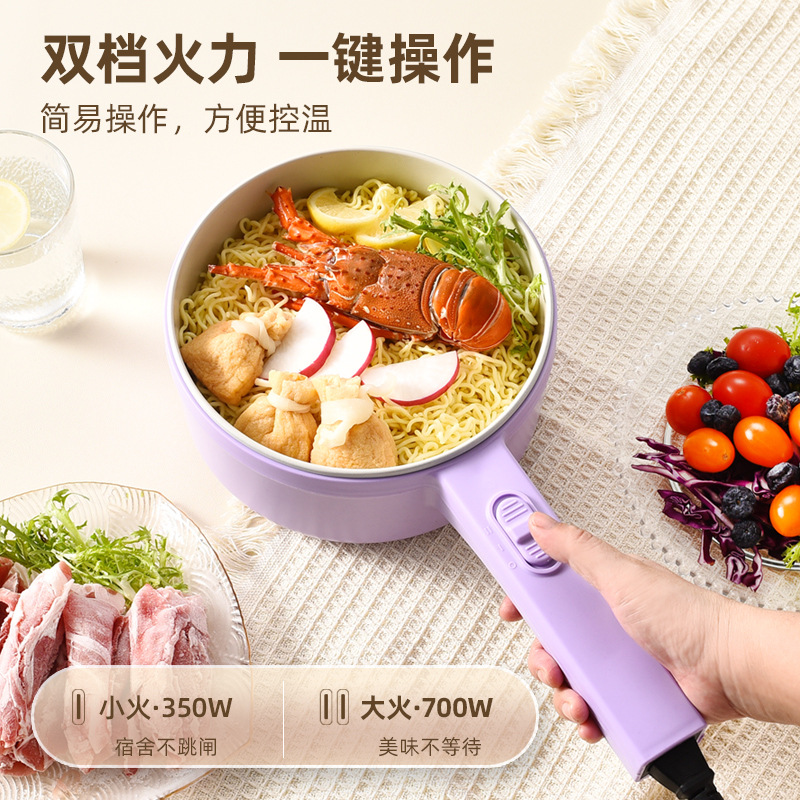 粤尔德直供 电热火锅宿舍1-2人煮面小电锅蒸煮多功能电煮锅