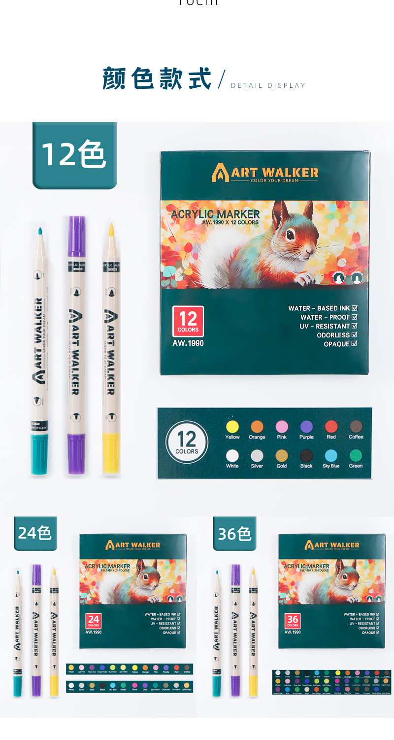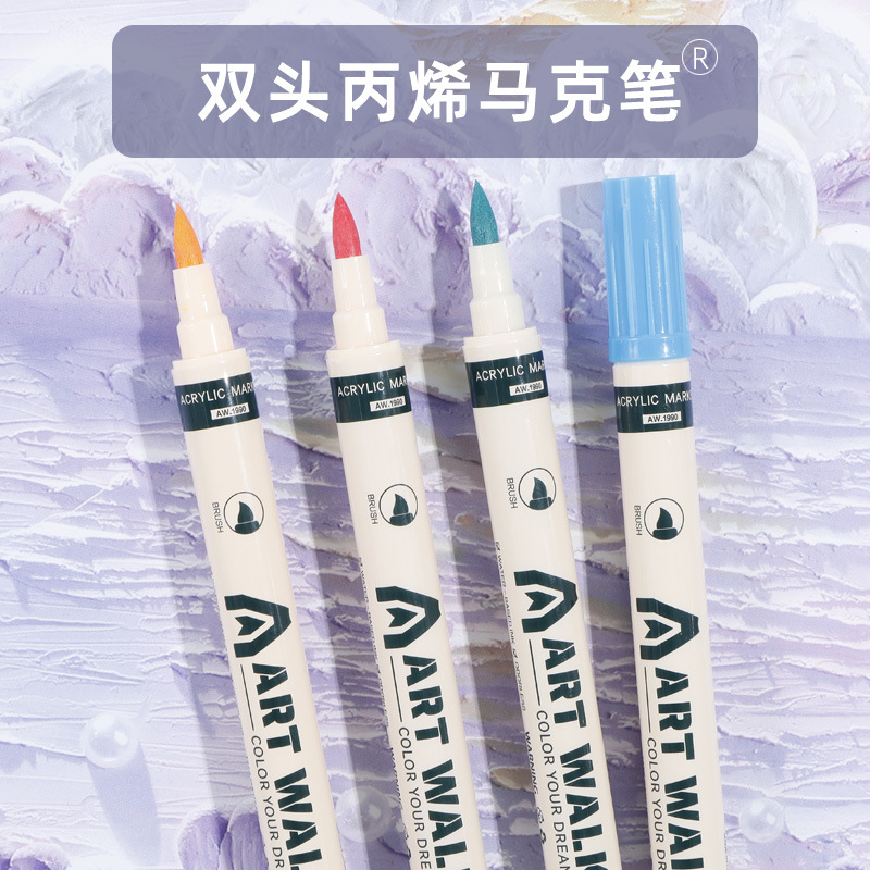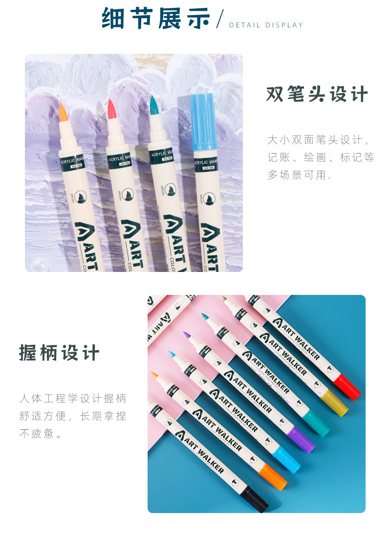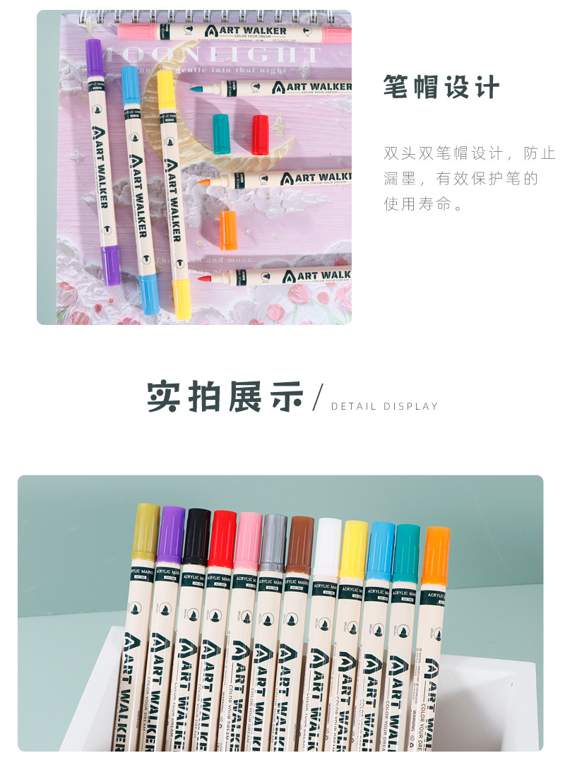 跨境软硬双头丙烯马克笔学生专用绘画笔套装防水速干涂鸦彩笔