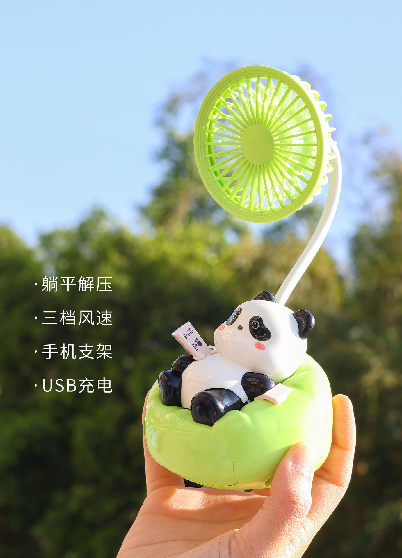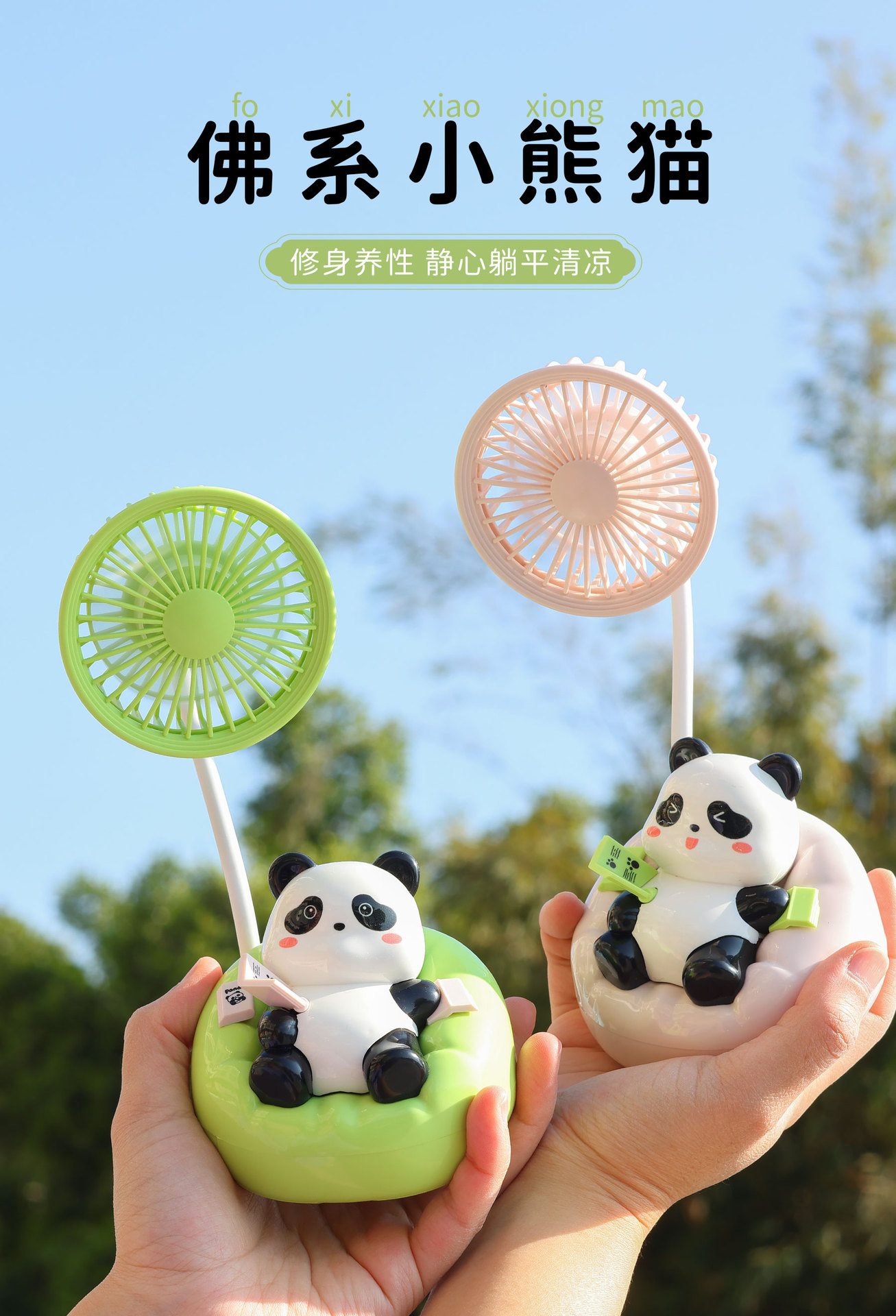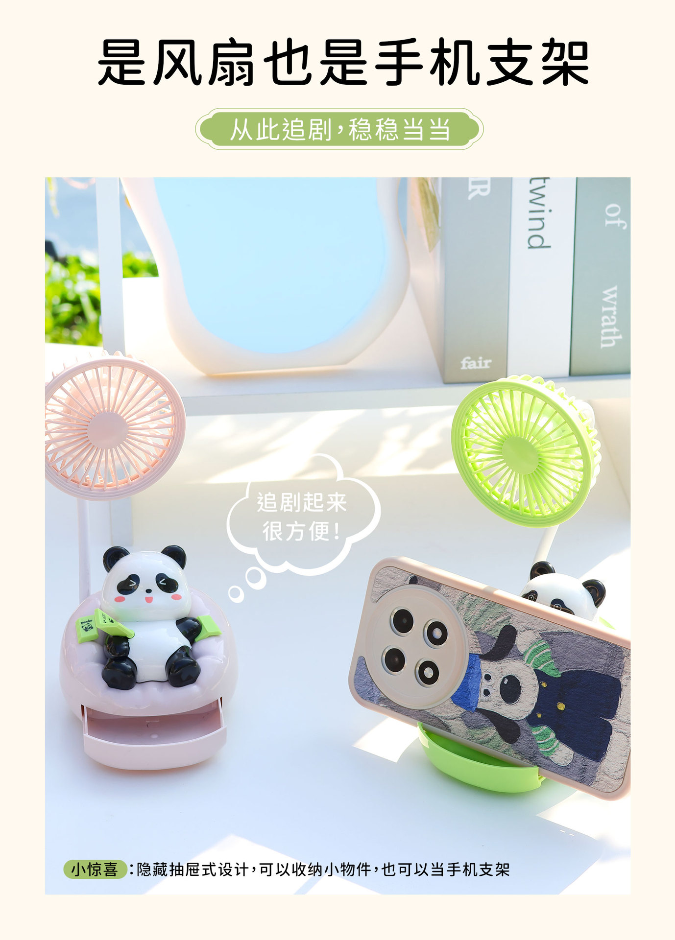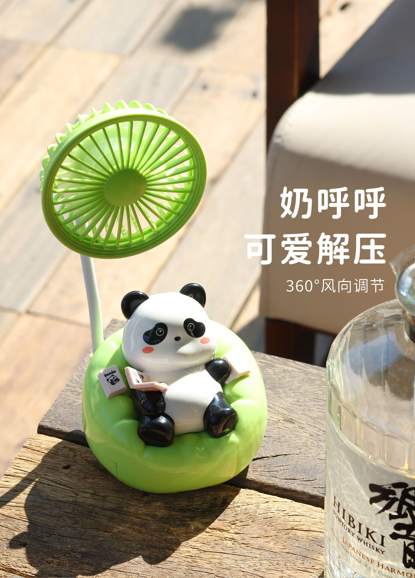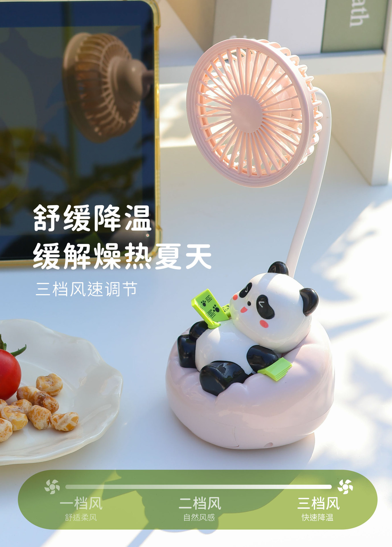 2025新款可爱熊猫风扇充电式三档大风力便携风扇学生上课桌面风扇