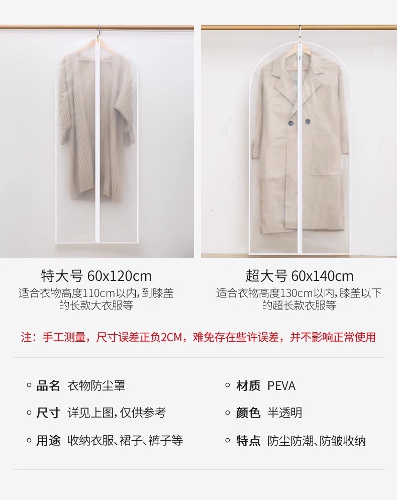 透明衣服防尘衣罩衣物防尘袋子全封闭家用大衣西服加厚衣服防尘罩