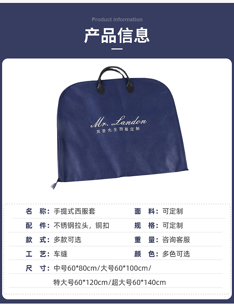 男西装收纳手提袋无纺布西装防尘罩西服手提式防尘袋无纺布拉链袋