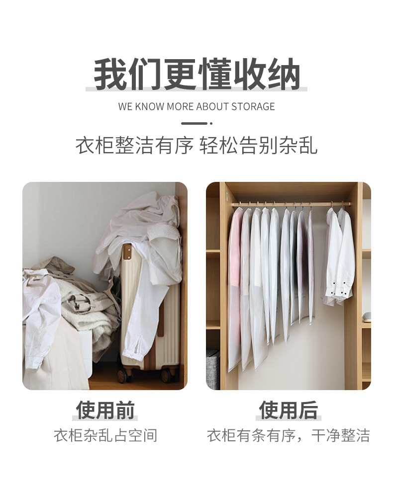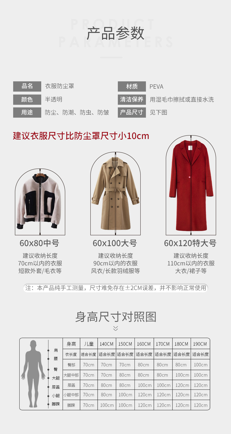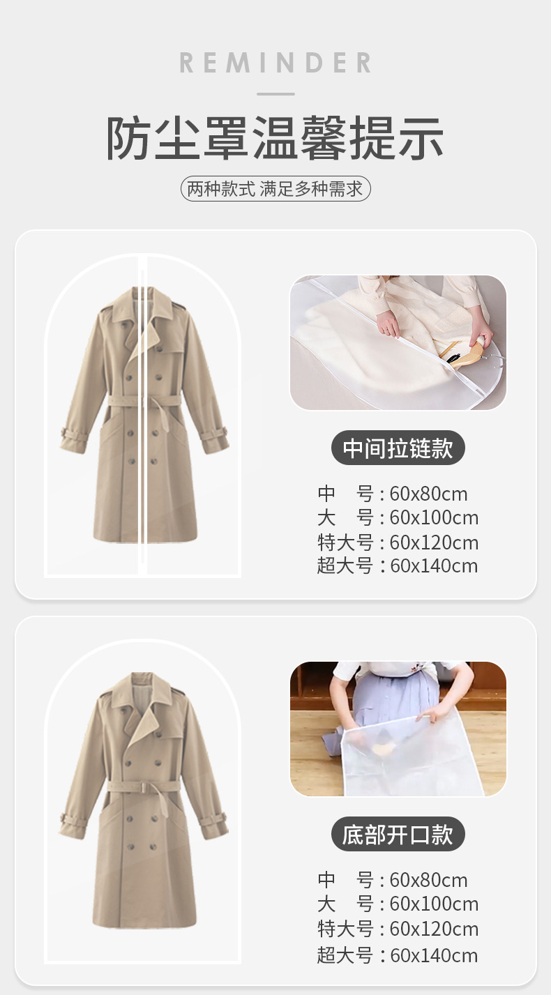 加厚衣服防尘罩透明PEVA大衣西服套家用衣物防尘挂衣袋可洗西装袋