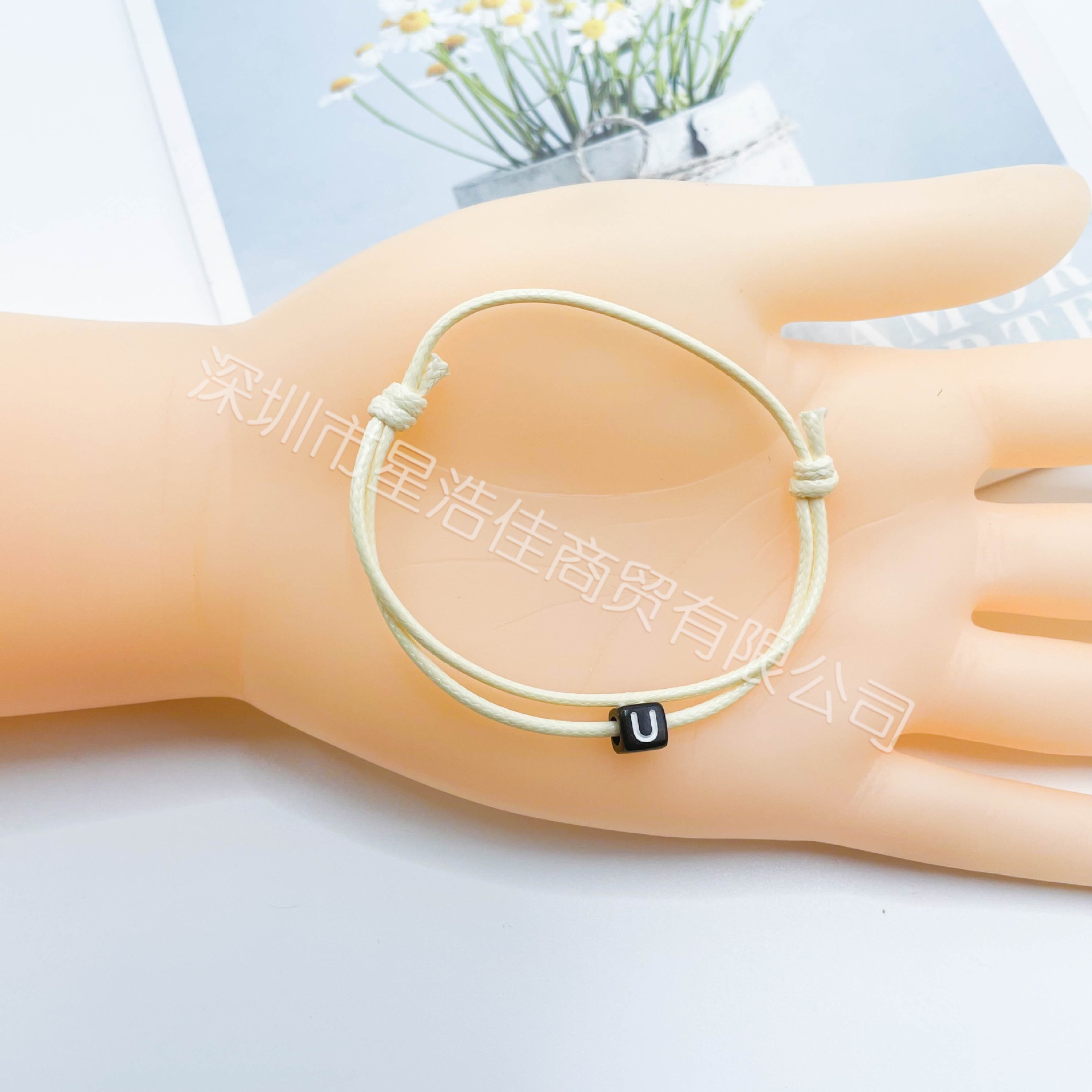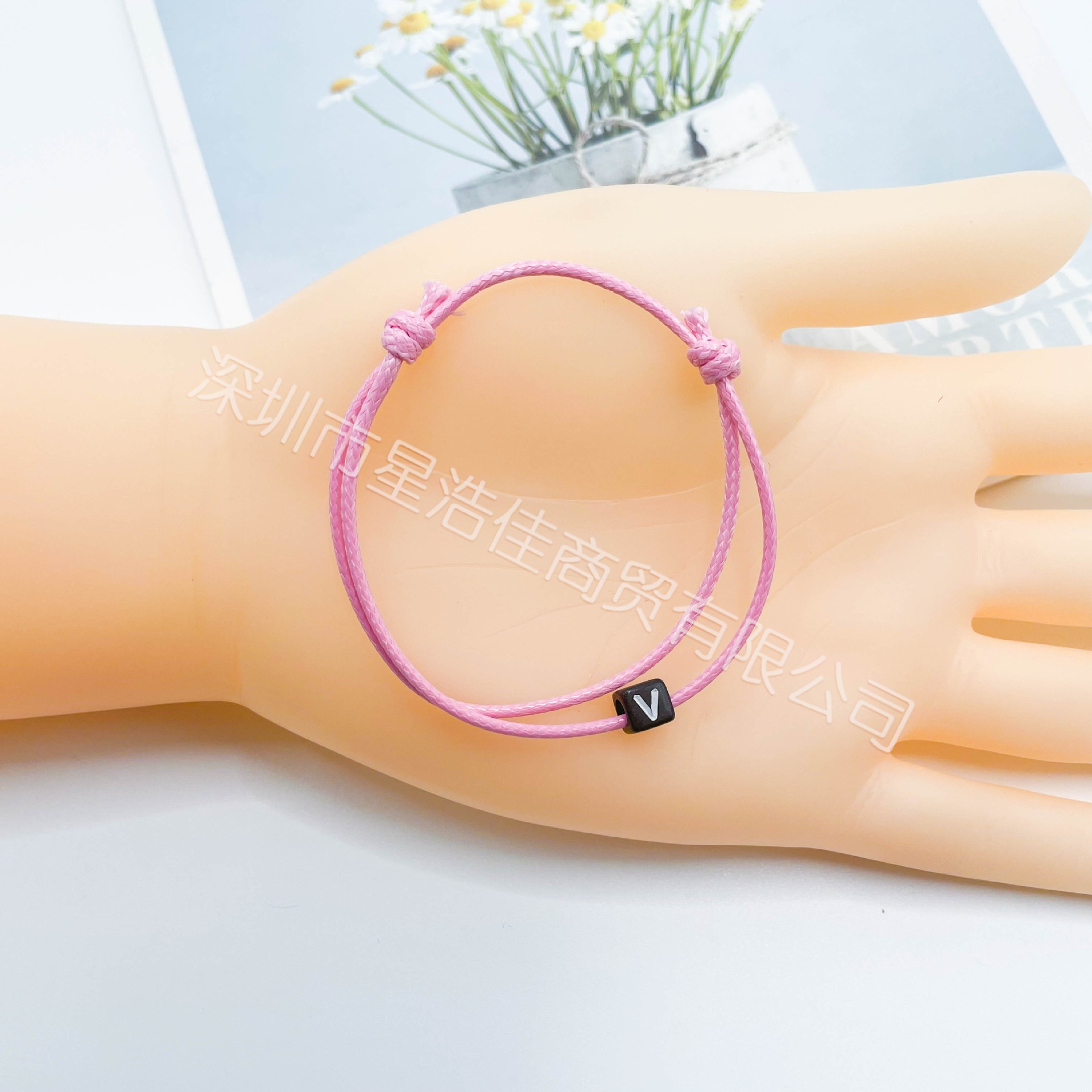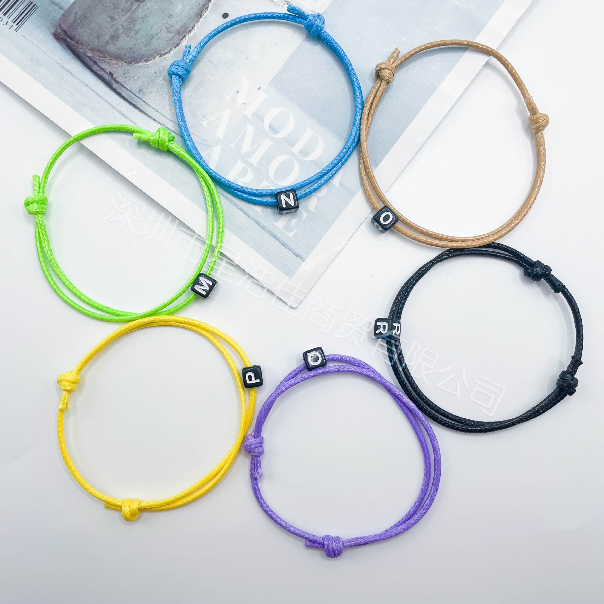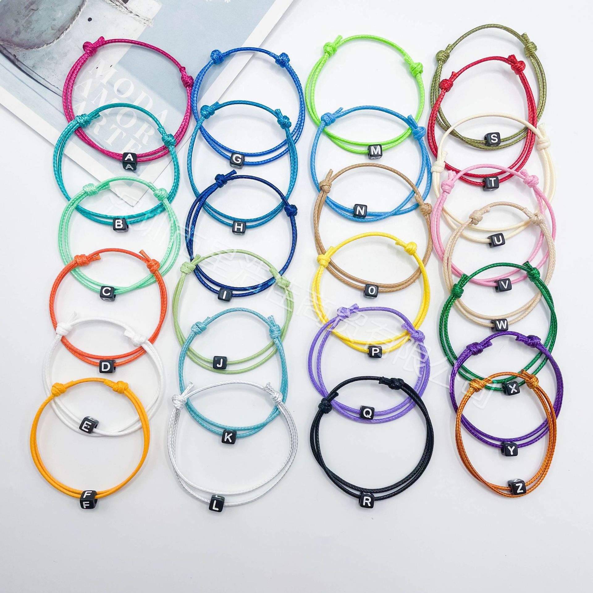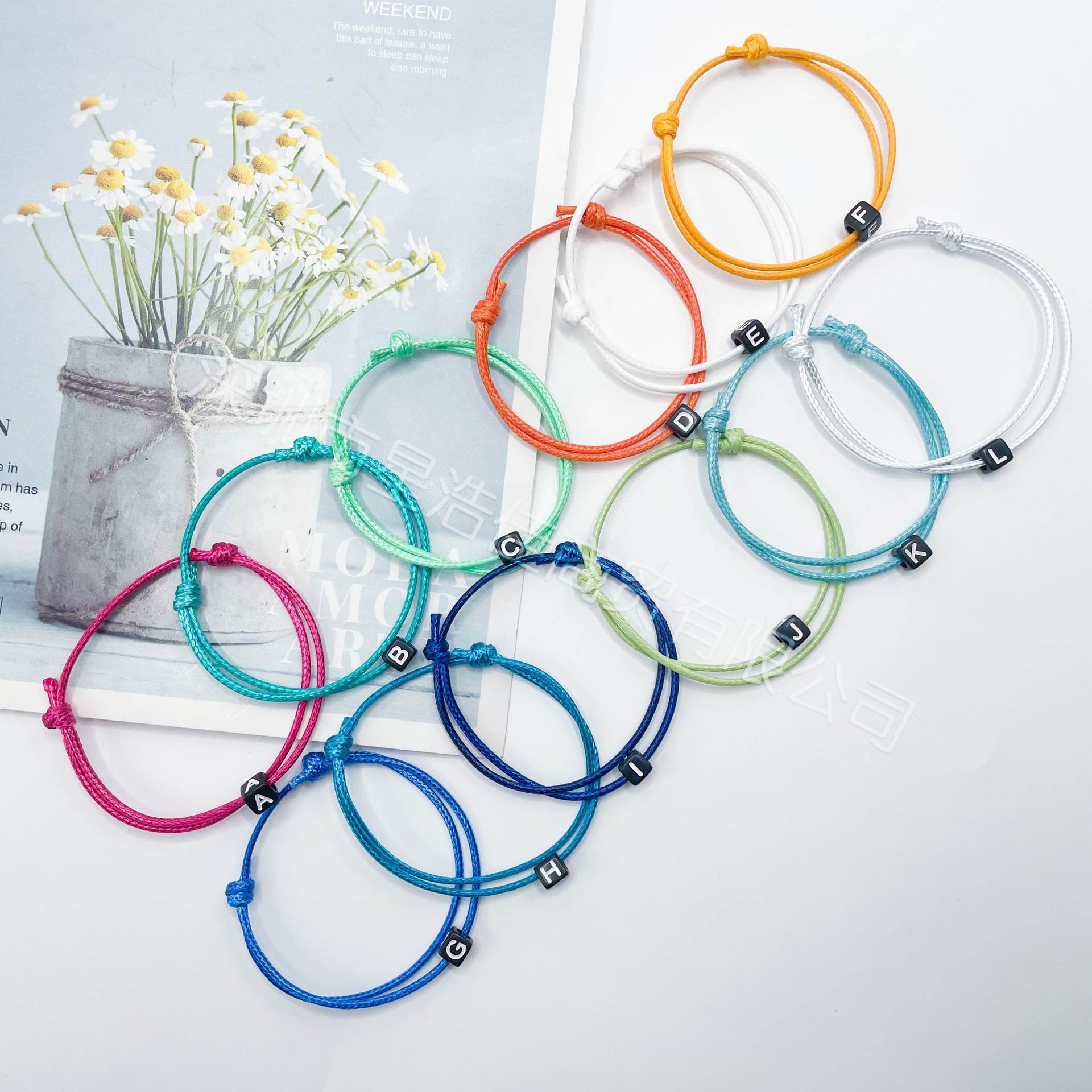 跨境欧美新款26个字母彩色手链简约百搭多色编织调节手绳工厂直供