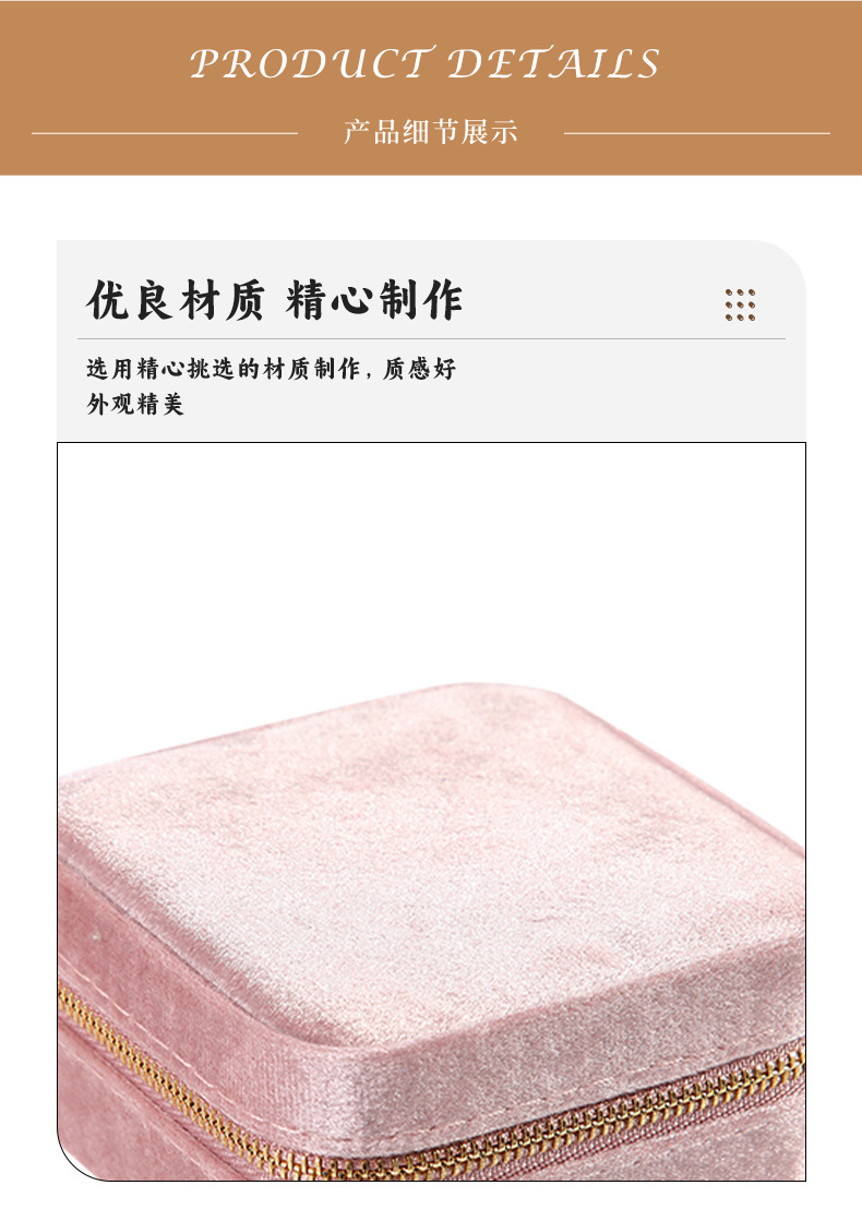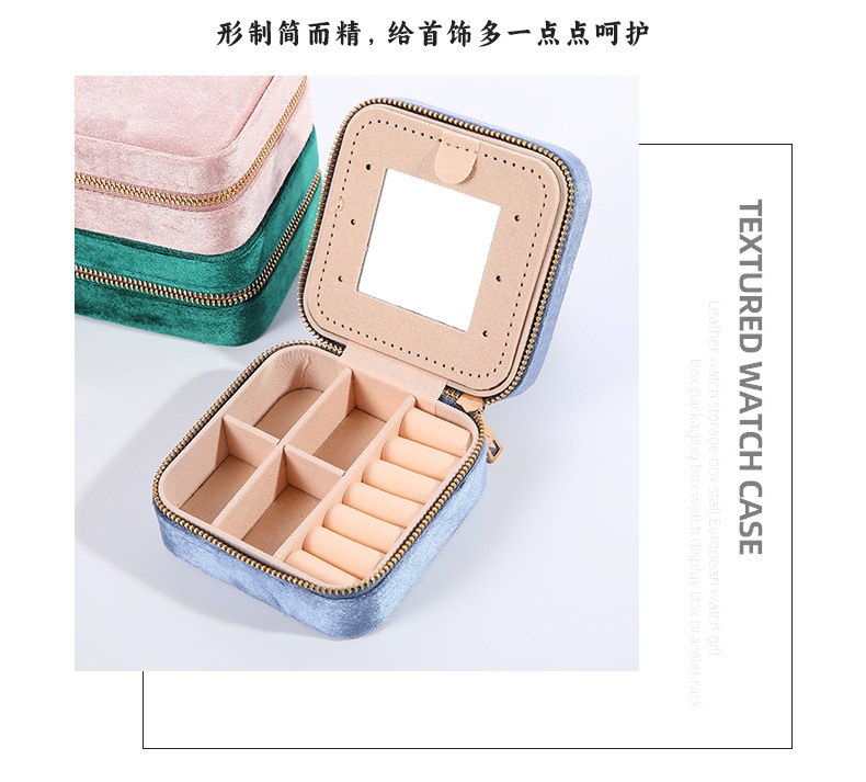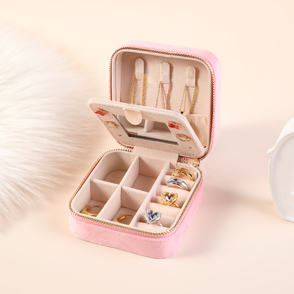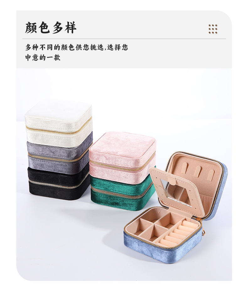 毛绒带镜子休闲便携首饰收纳盒精品项链戒指饰品收纳盒出门入包款