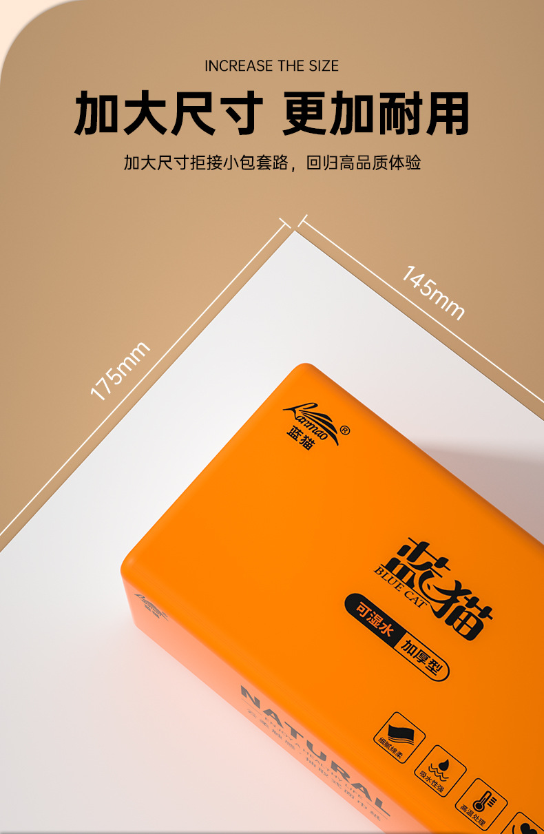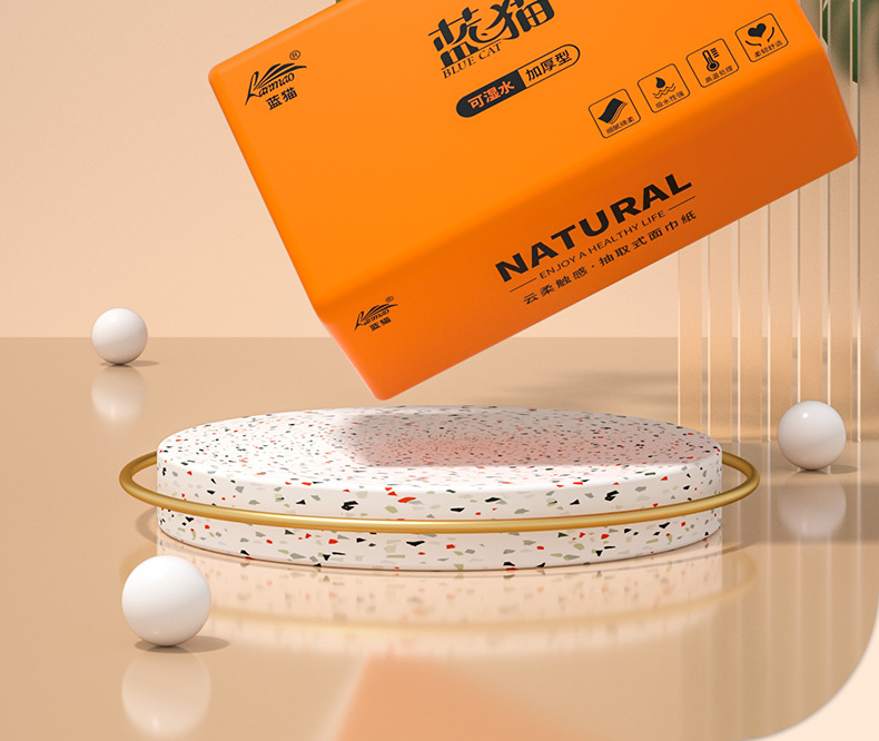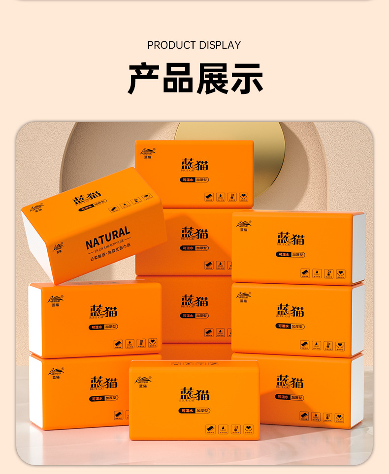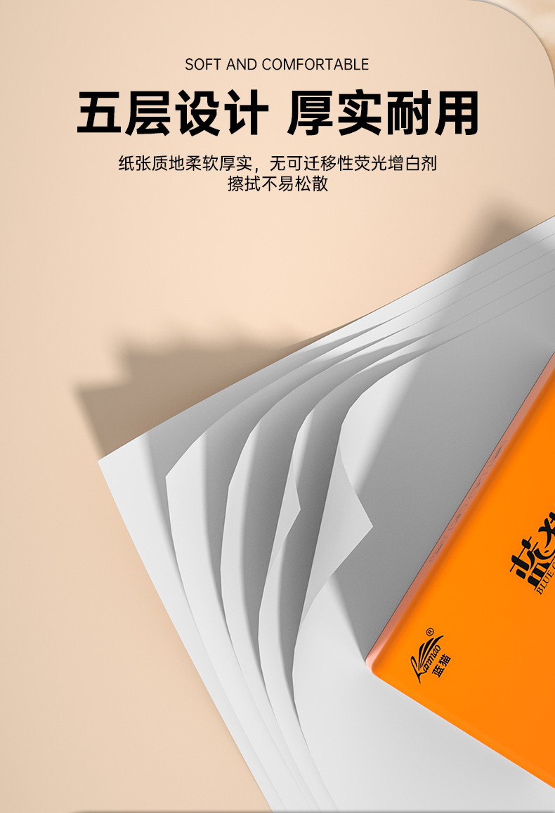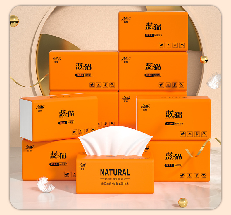 新客专享蓝猫抽纸4包270张加厚一提擦手纸家用面巾纸批发卫生纸